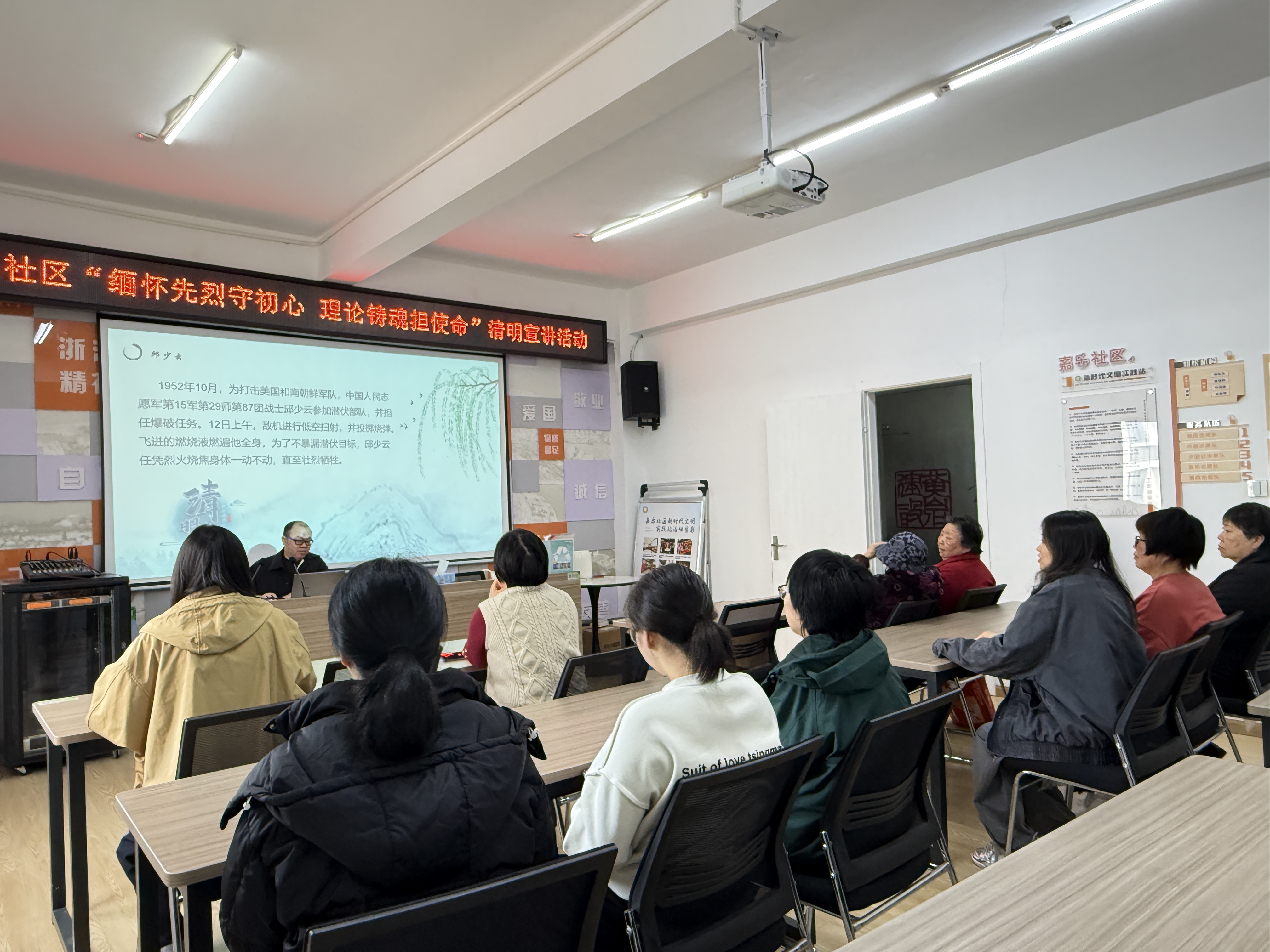 北城街道嘉乐社区组织开展 “缅怀先烈守初心·理论铸魂担使命” 主题宣讲活动 为传承红色基因,厚植家国情怀,引导居民群众、物业服务人员铭记英烈事迹、坚守初心使命,清明节前夕,北城街道嘉乐社区组织开展 “缅怀先烈守初心·理论铸魂担使命” 主题宣讲活动,以沉浸式红色教育筑牢思想根基。 活动现场,社区工作人员与辖区居民齐聚一堂,宣讲现场庄重而温馨。宣讲员结合清明节的文化内涵,先后讲述了邱少云、雷锋等革命先烈与道德模范的感人事迹。从邱少云在烈火中纹丝不动的壮烈牺牲,到雷锋全心全意为人民服务的点滴日常,鲜活的红色故事让在场人员深受触动,大家凝神倾听,不时陷入沉思,深切感悟革命先辈坚定的理想信念与无私的奉献精神。 宣讲过程中,社区还结合基层治理实际,引导大家将英烈精神转化为服务群众的实际行动,持续深化红色教育常态化建设,把红色基因融入社区党建、民生服务、基层治理等各项工作,引导社区工作者、物业服务人员以更饱满的热情、更务实的作风解决居民急难愁盼问题,让初心使命在为民服务中落地生根。此次清明宣讲活动,不仅让社区居民接受了一次深刻的红色精神洗礼,更凝聚了共建美好社区的奋进力量。 下一步,嘉乐社区将继续创新宣讲形式,深挖红色资源,让红色血脉在社区代代相传,以实干担当书写基层治理新篇章。