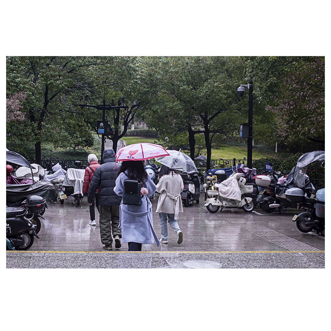 一场雨,让城市的喧嚣慢了下来,脚步声交织着雨声。