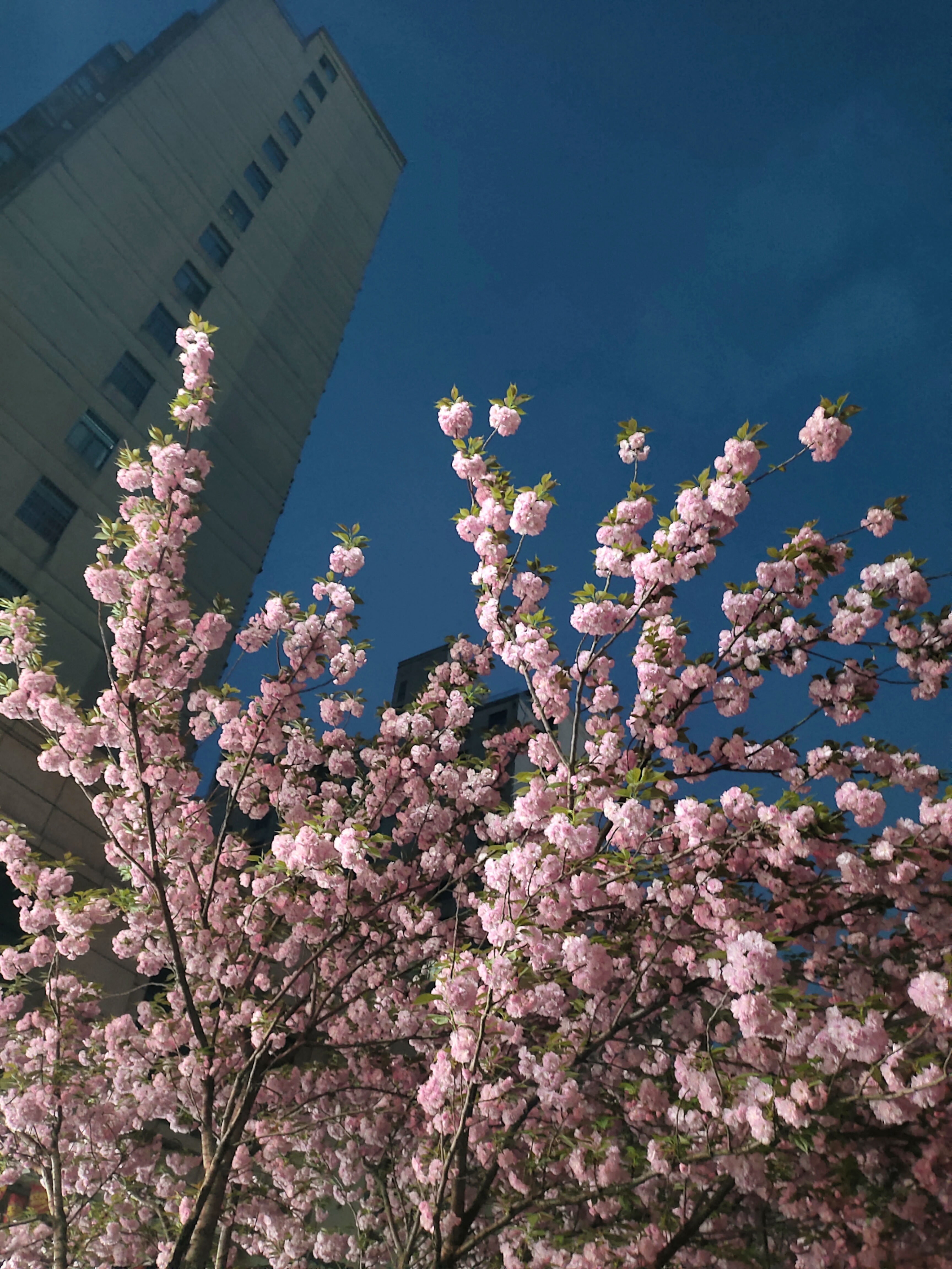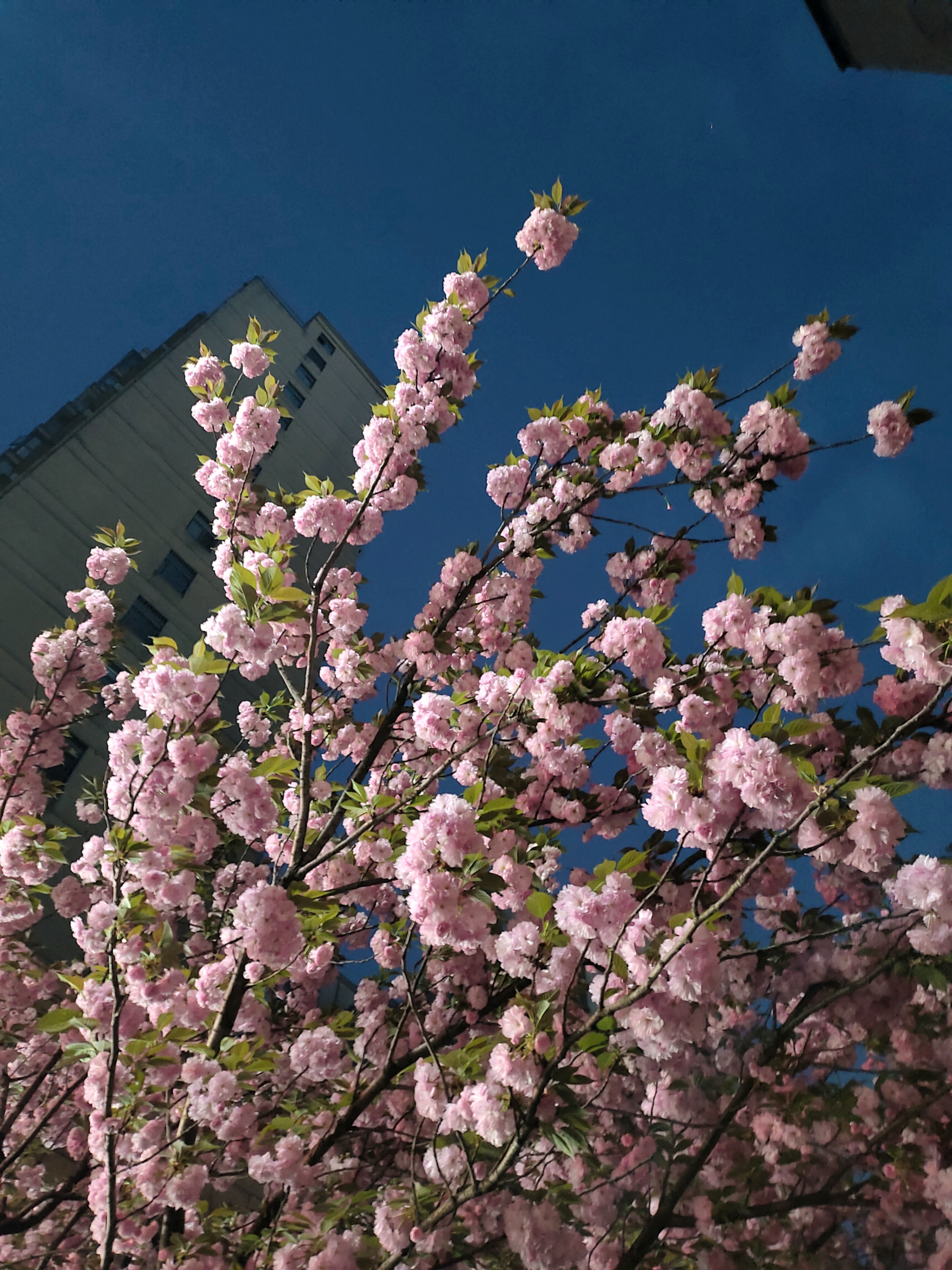 樱花蹭着高楼开,粉云飘在蓝天下~随手一拍,城市春日限定款get!