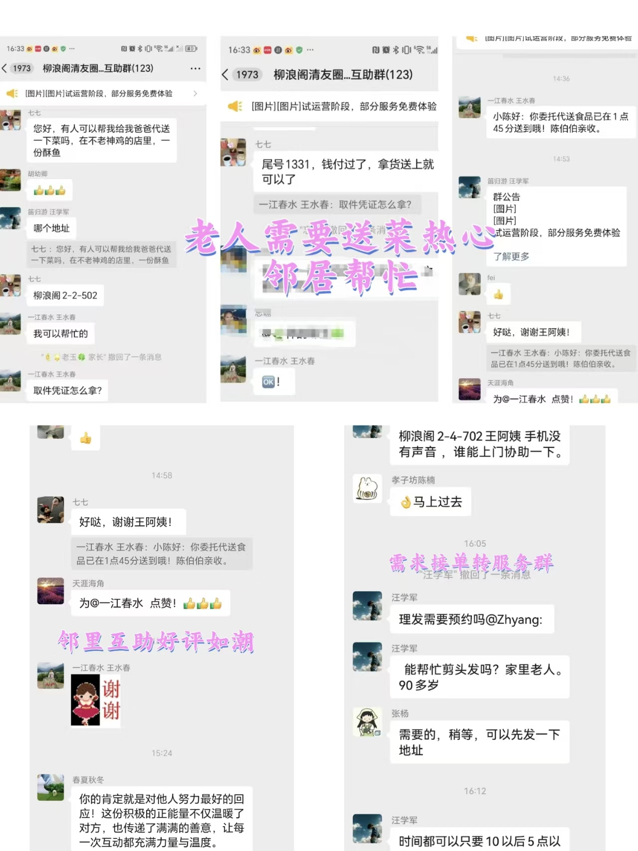 4月3日,清波门社区经过前期入户问卷调查、建立邻里互助群、招募志愿者等筹备,近日正式开启邻里互助试运行,居民通过需求群发送需求,互助群志愿者接单,完成订单,发送成果一系列完整流程后,实现了邻里“清友圈 圈住邻里情”的互助行动,今日统计,完成接单3单,预约单2单服务。#浙有好邻居#