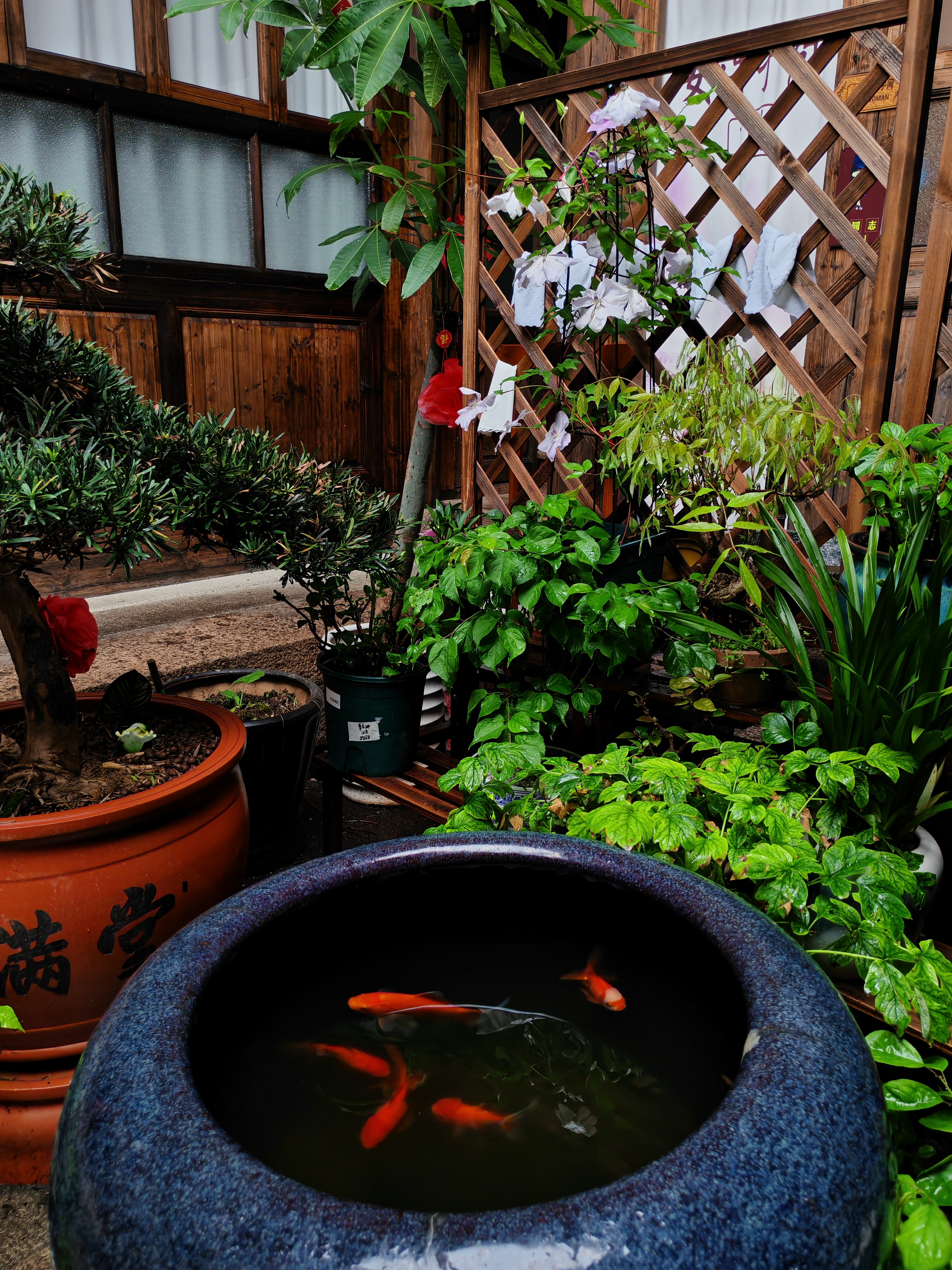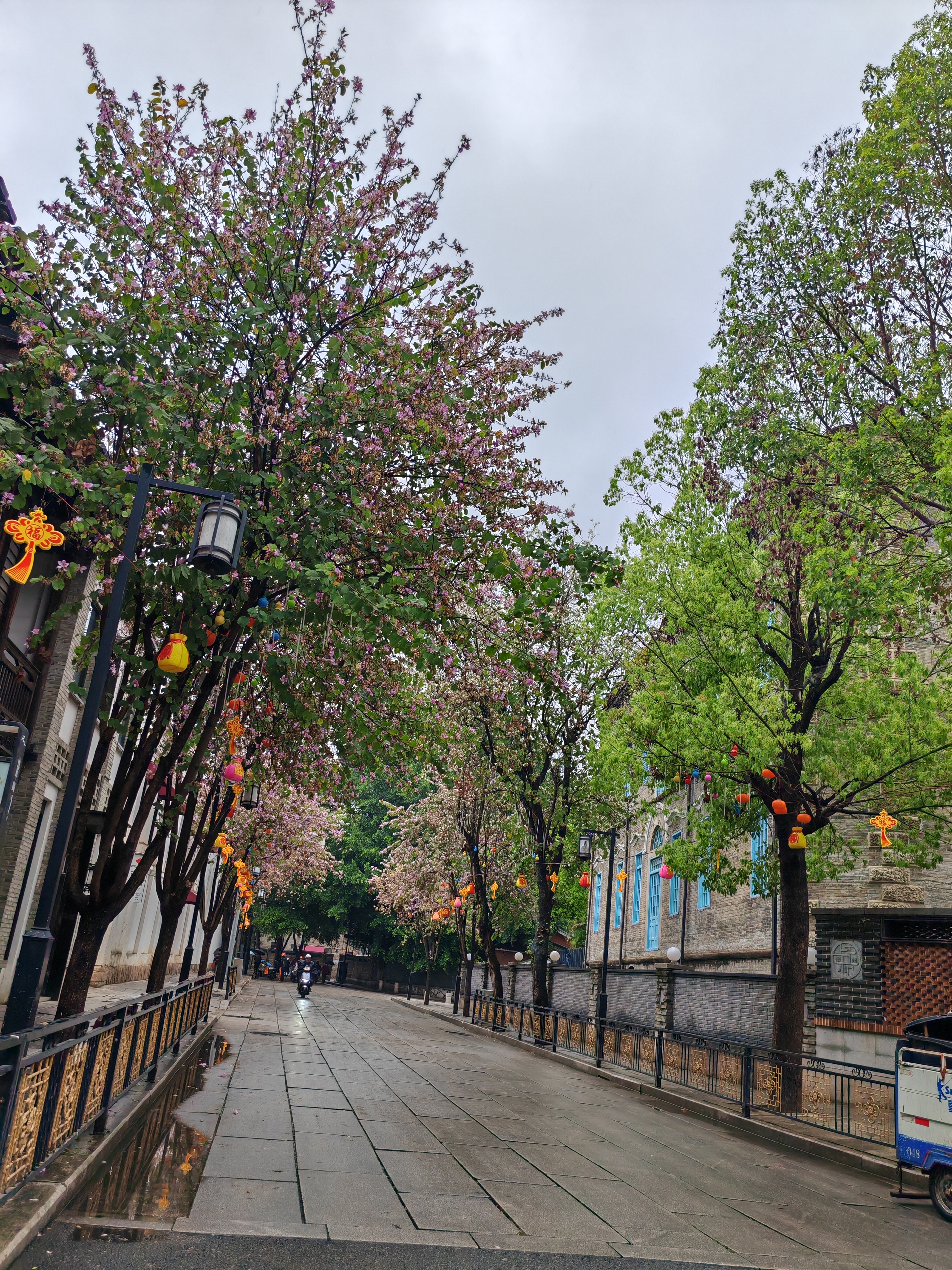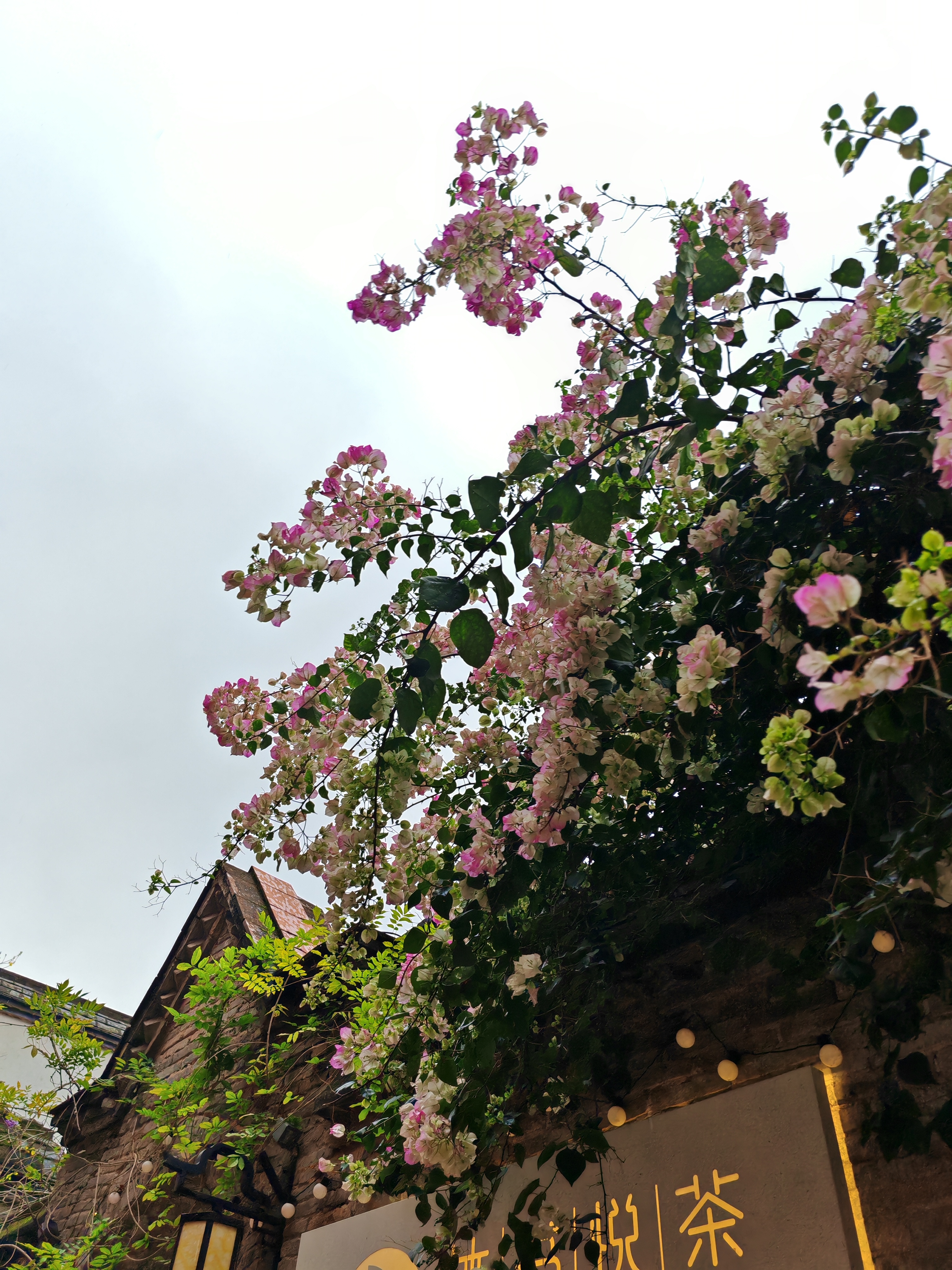雨天随手拍,红砖青瓦三角梅,雨后石板路泛光,老墙藤蔓悄悄爬~
