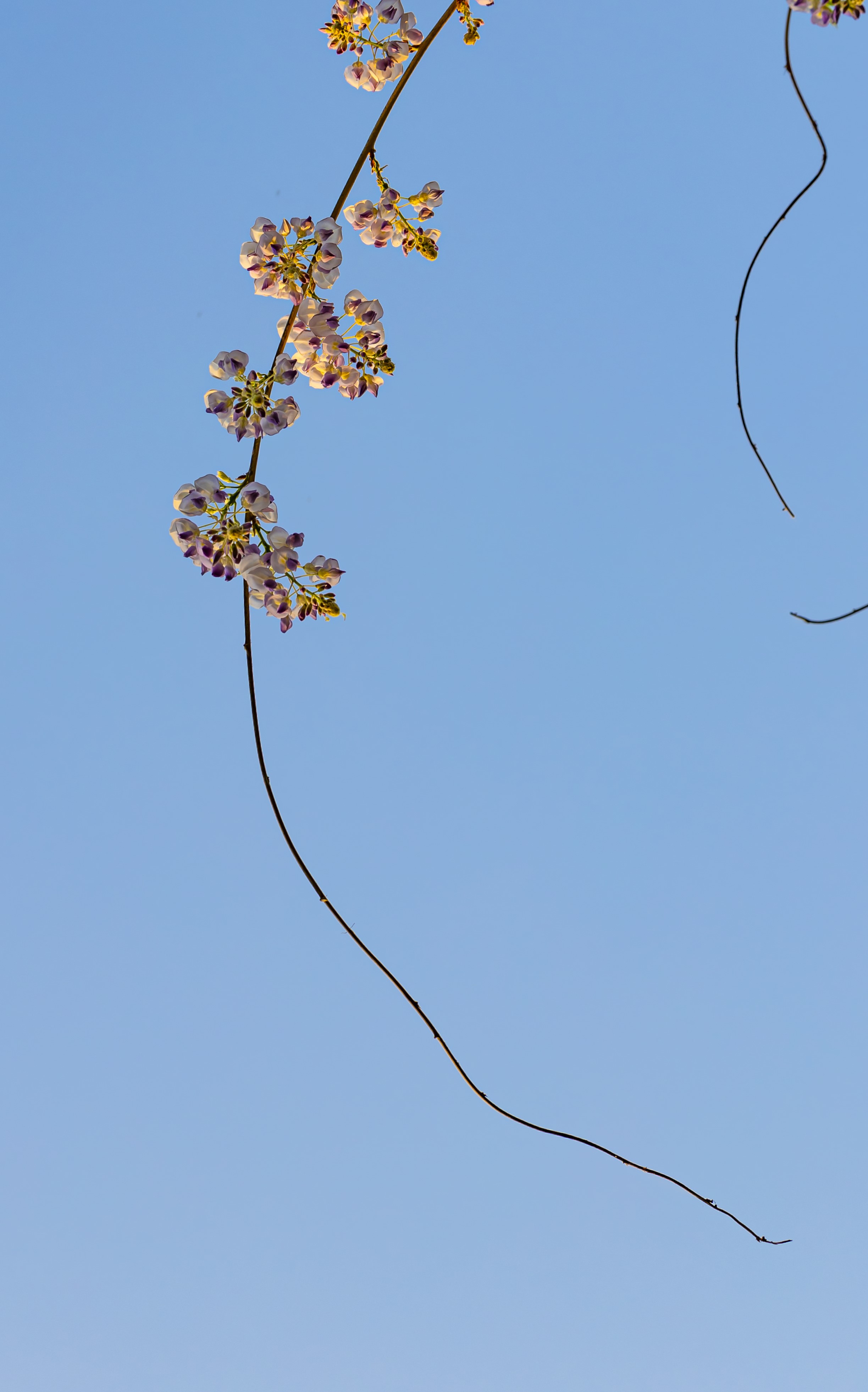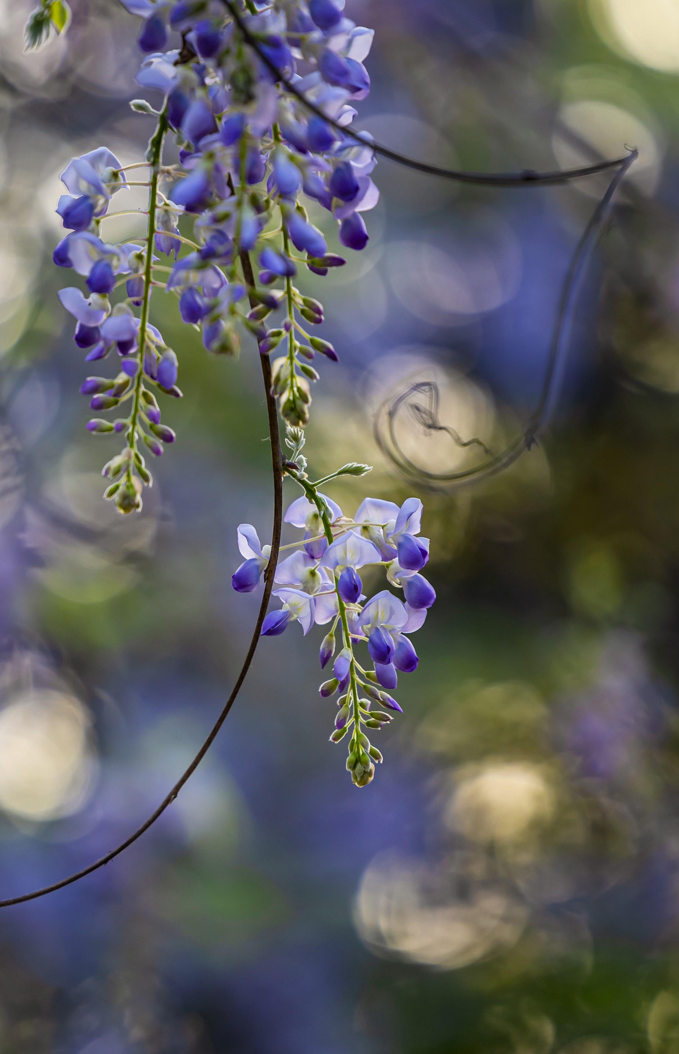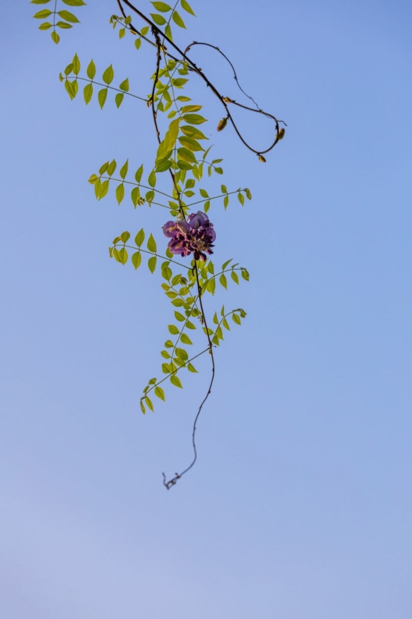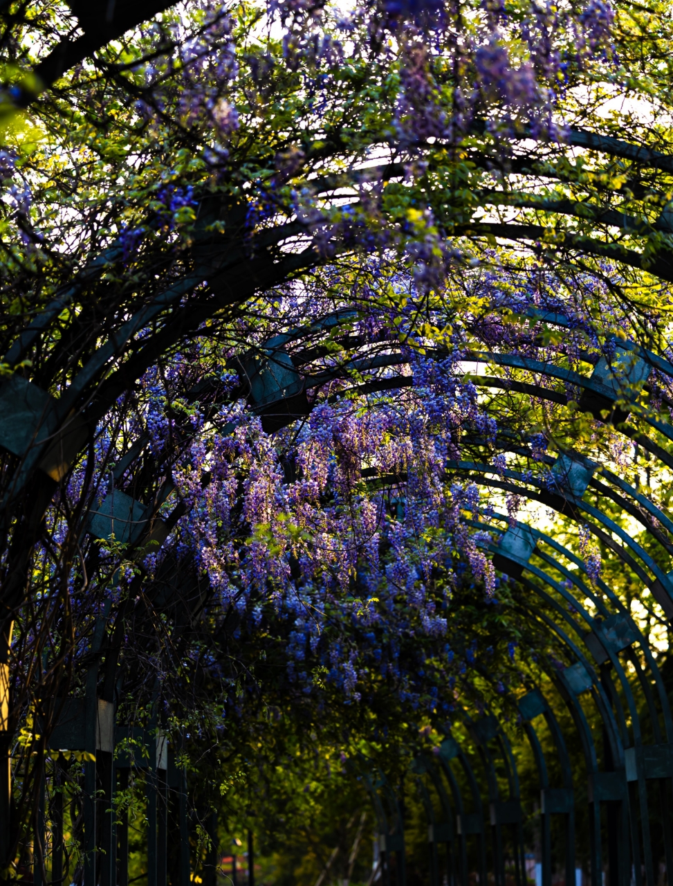 春深似海,紫藤垂瀑。光穿过藤蔓,在花序间洒下碎金;蓝天下,一帘幽梦悄然垂落。枝弯如诉,瓣薄若诗,风起时,整座花园都在呼吸。