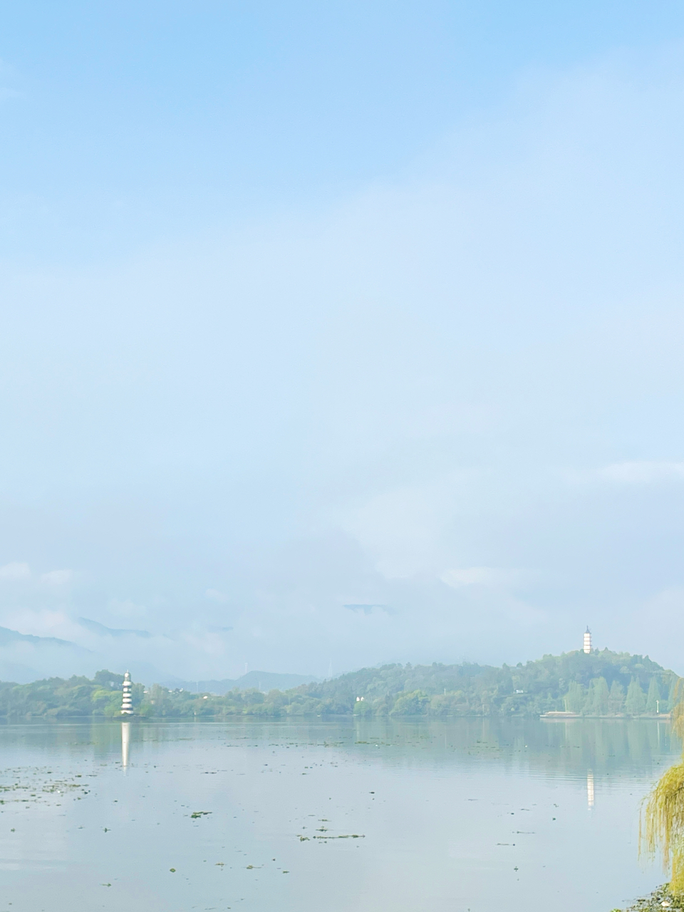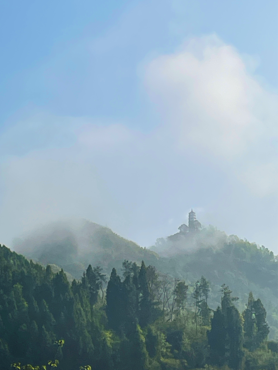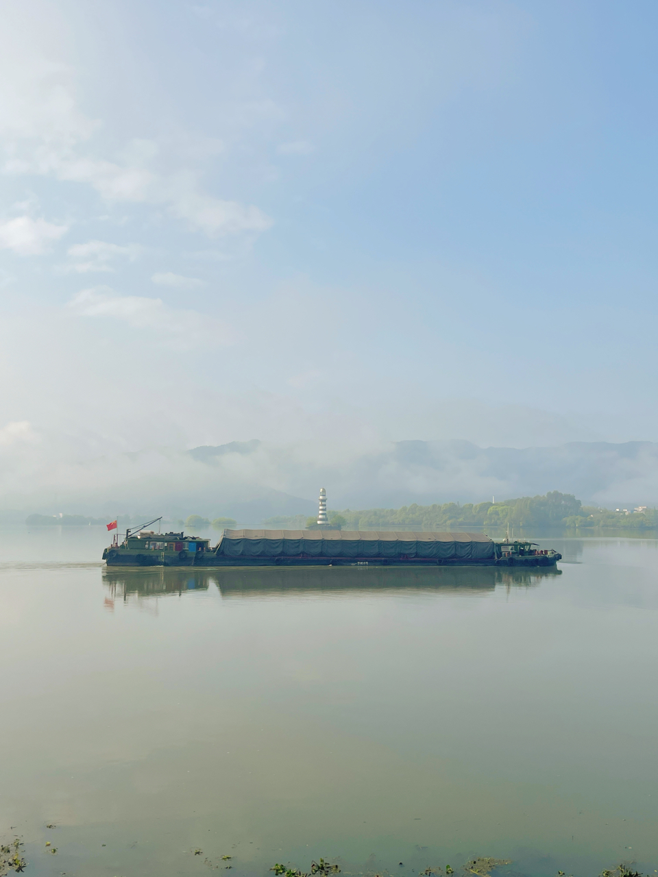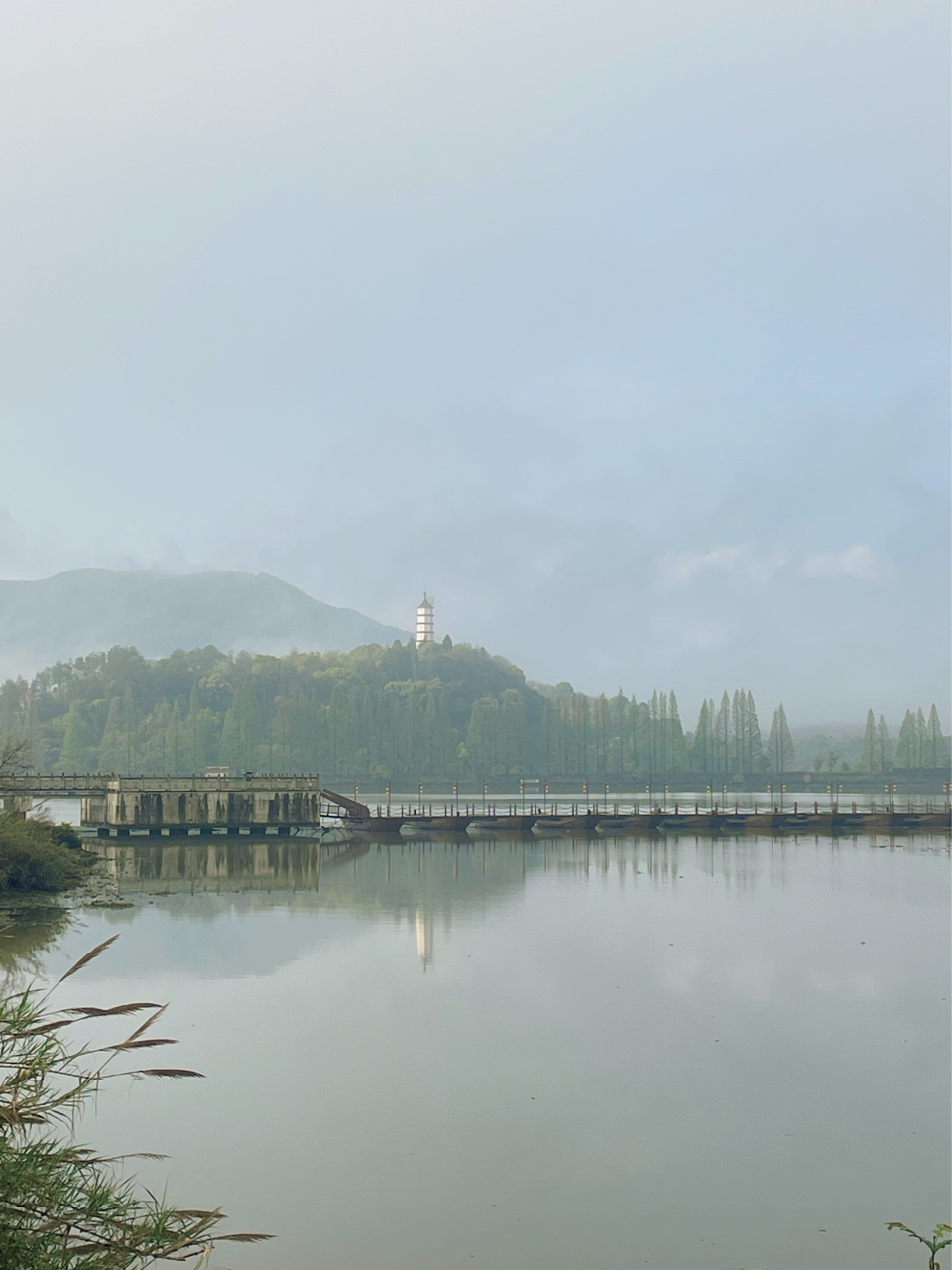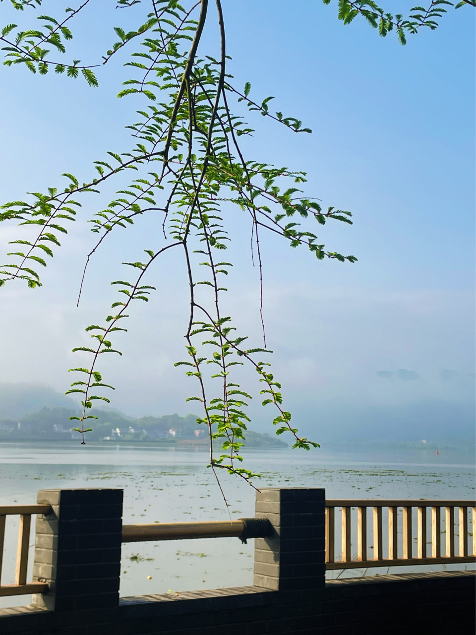 清明写意 晨雾蔓延笼新安, 塔影摇曳映江面, 嫩枝蘸水写清明, 江南春景醉人怀。