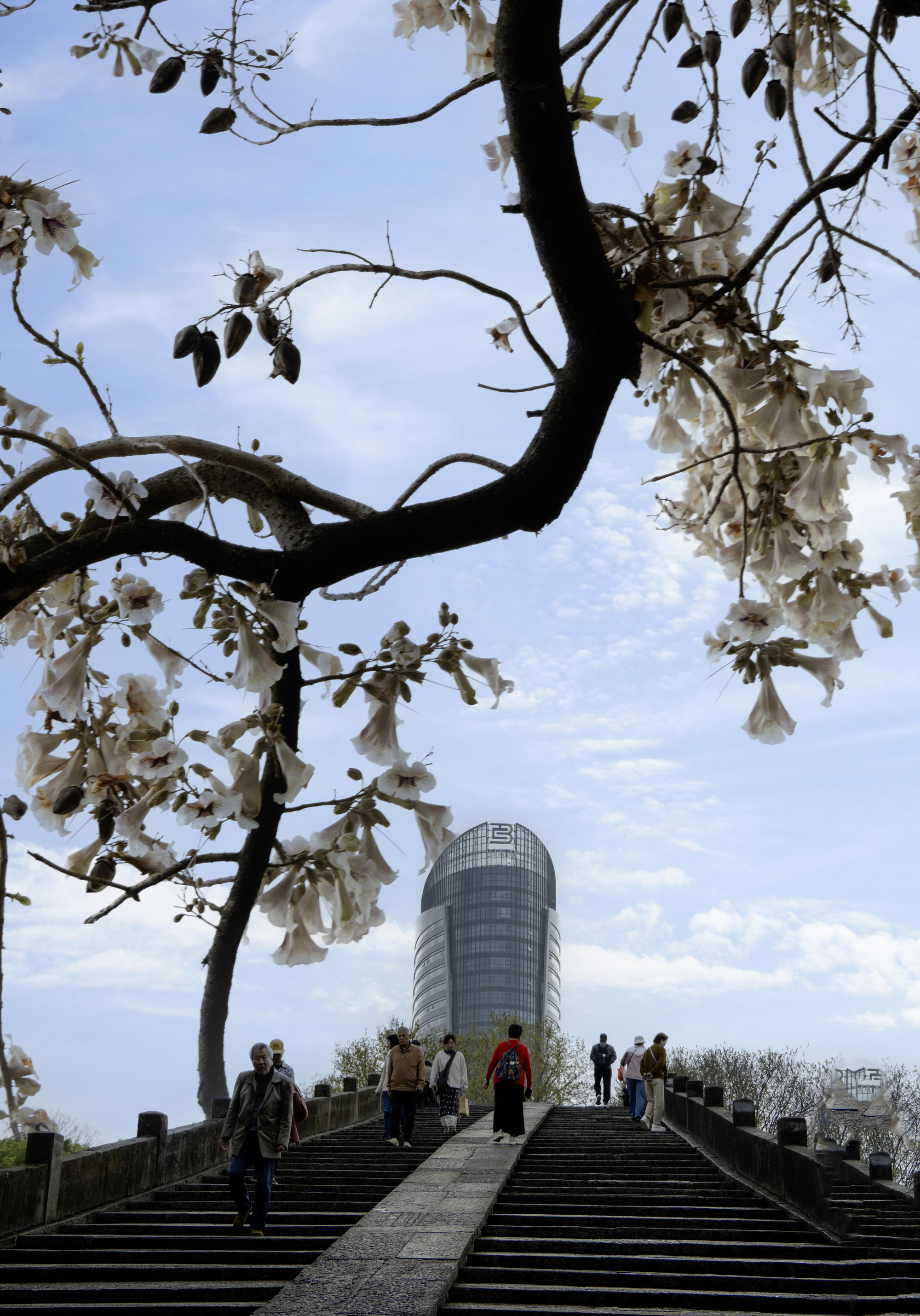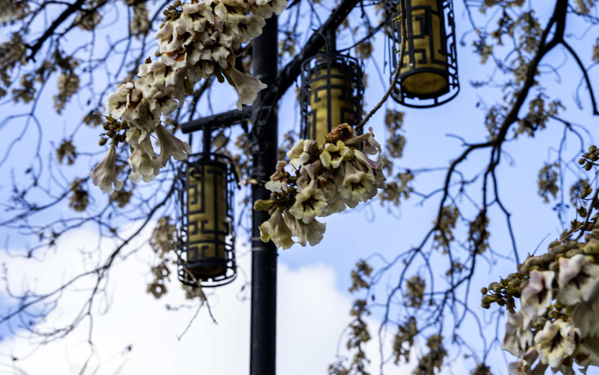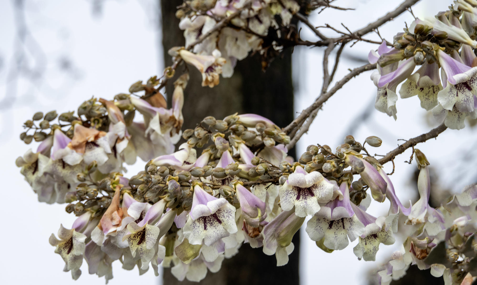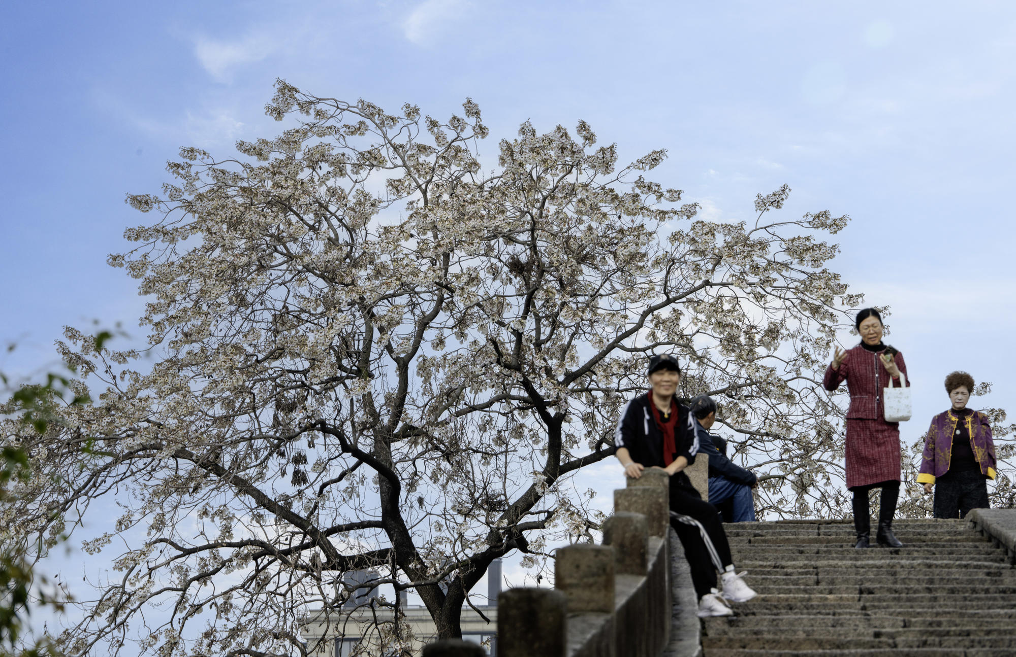 春天一到,家门口便悄然铺展成一幅流动的花卷。沿着运河广场缓步走上拱宸桥,那棵高大挺拔的泡桐树便迎面而来——满树素白,如云似雪,似把整个春日的清气都托举于枝头。总盼着澄澈蓝天作衬,可春日多雨,天光吝啬。偏有一日,云隙乍开,青蓝如洗,匆匆携相机奔赴而去——原来最动人的盛景,不在远方,就在推门即见的方寸之间。
