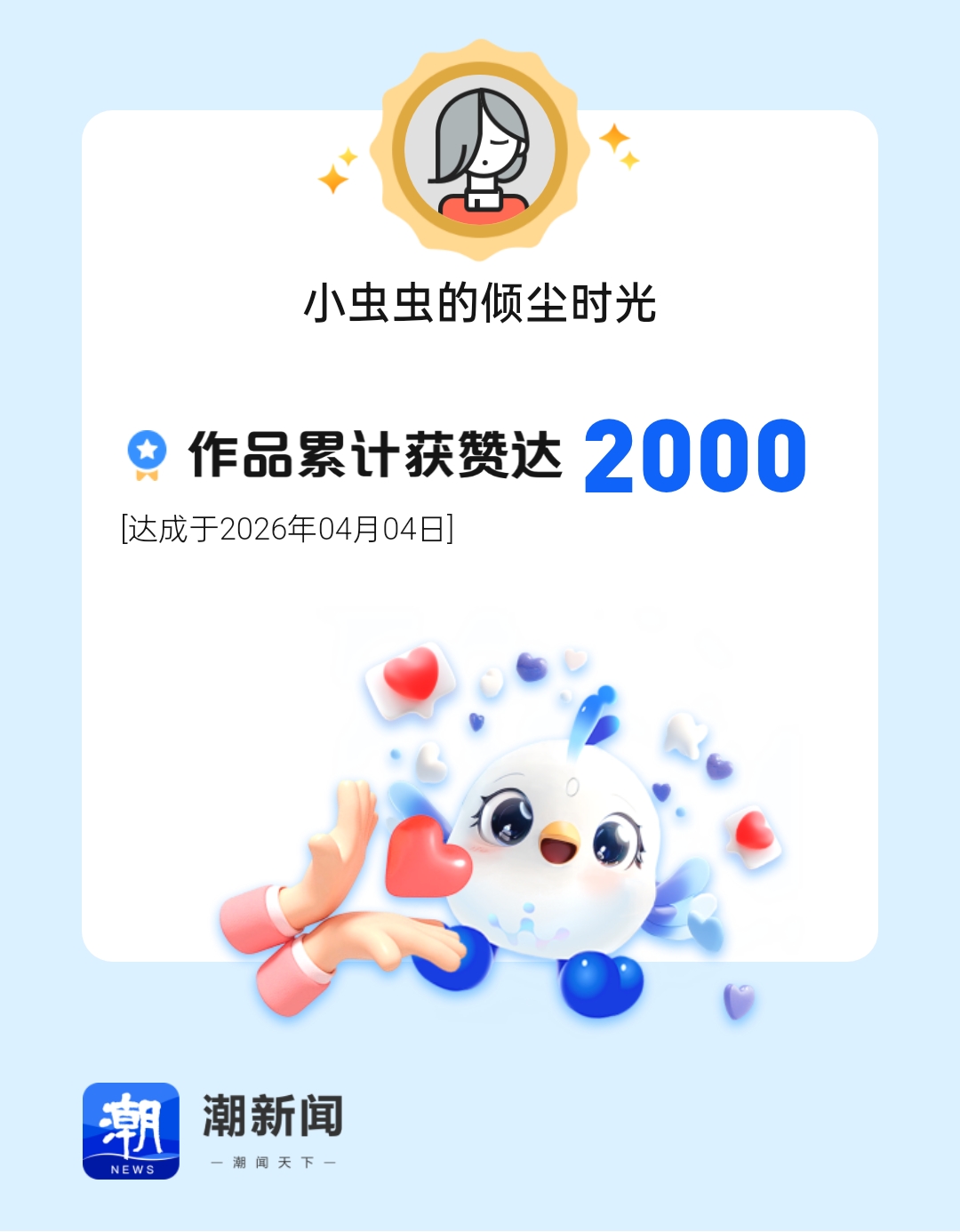 非常开心,朋友介绍来到读书岛,不仅把日常的阅读加以记录,还收获了这么多赞。不管你们出于礼貌还是真心留下的赞,都表示感谢。 人间四月天,也是世界读书日,阅读,让我们辽阔无垠。一起同行。 我在潮新闻发表的所有作品累积获得了2000个赞!