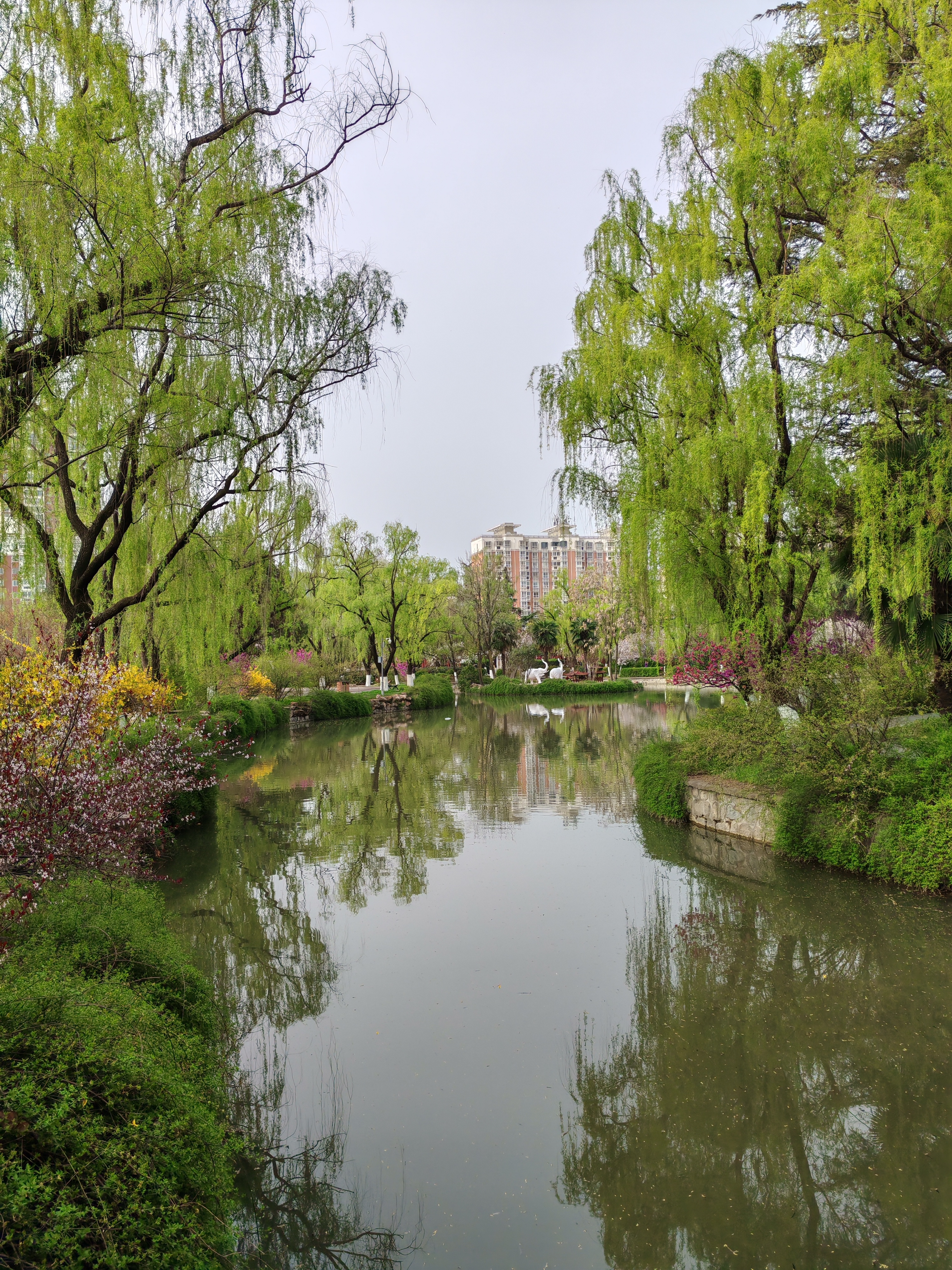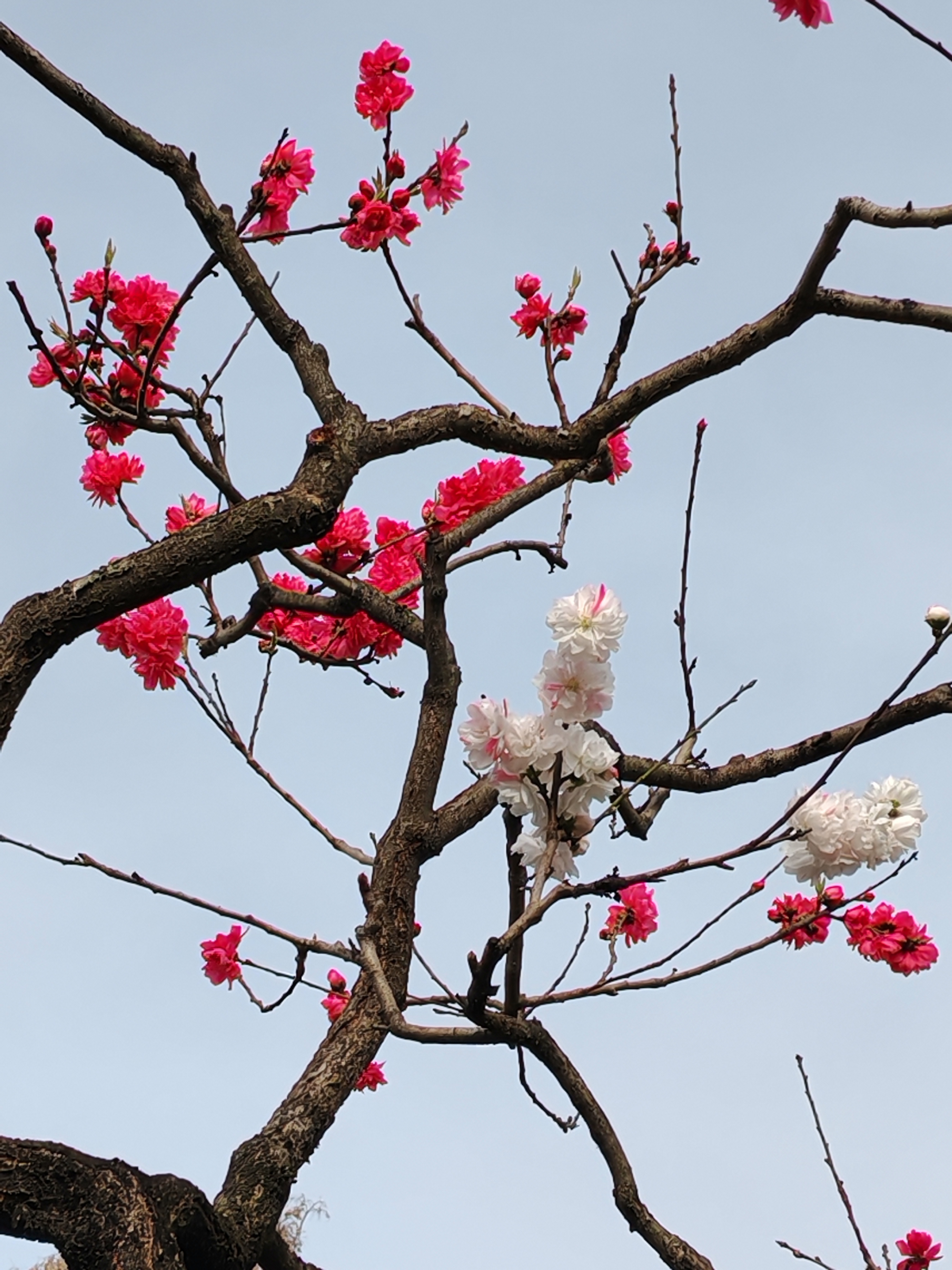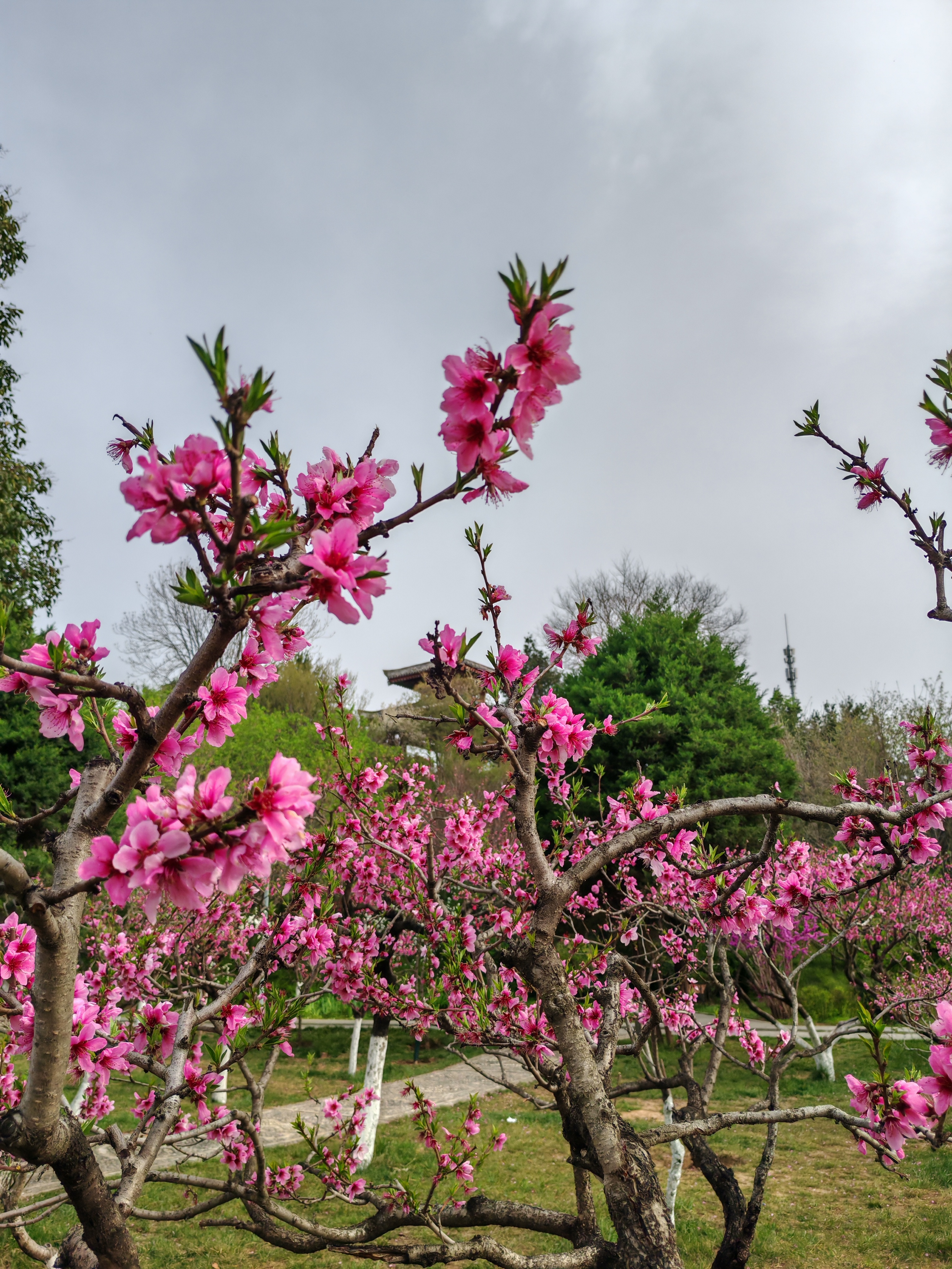览春 三声漫染西山远, 五彩遍涂万木青。 风物正宜宽放眼, 桃花更比去年红。