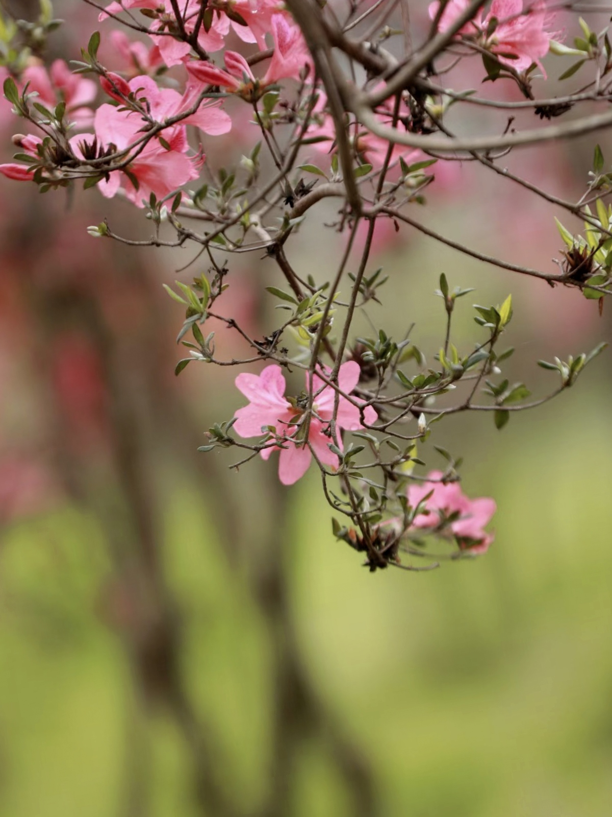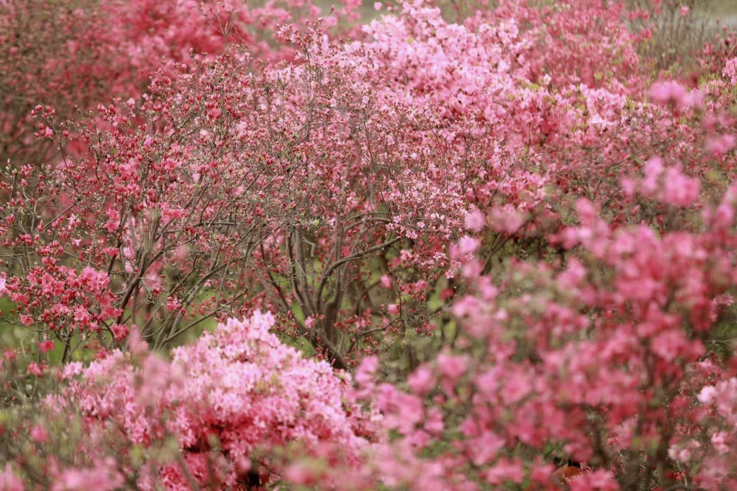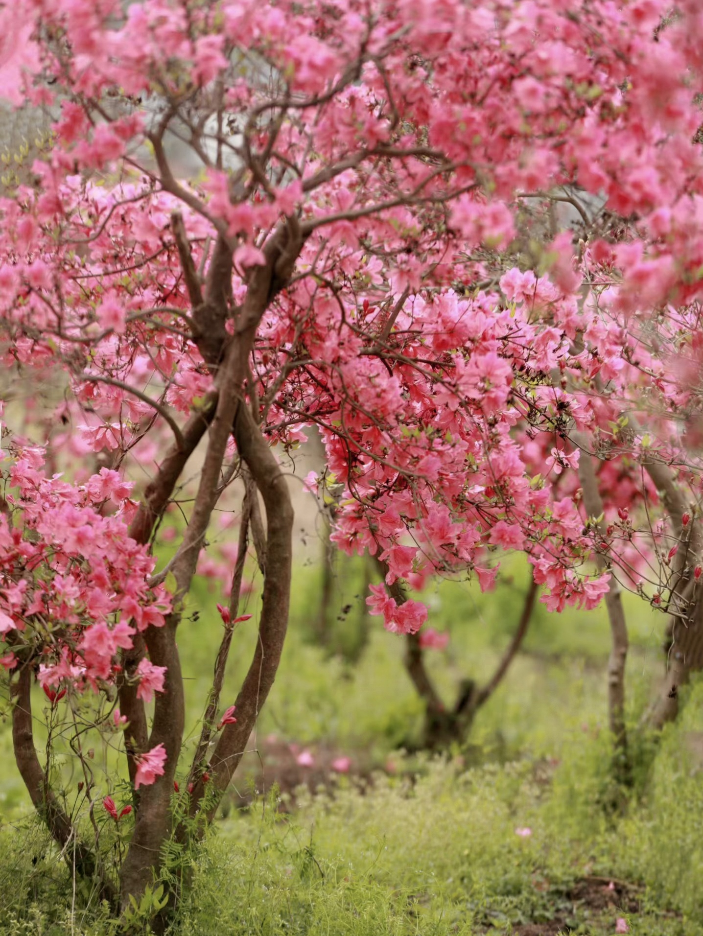 粉嘟嘟的杜鹃花海,枝条弯弯垂到草地上,随手一拍就是春日限定壁纸。