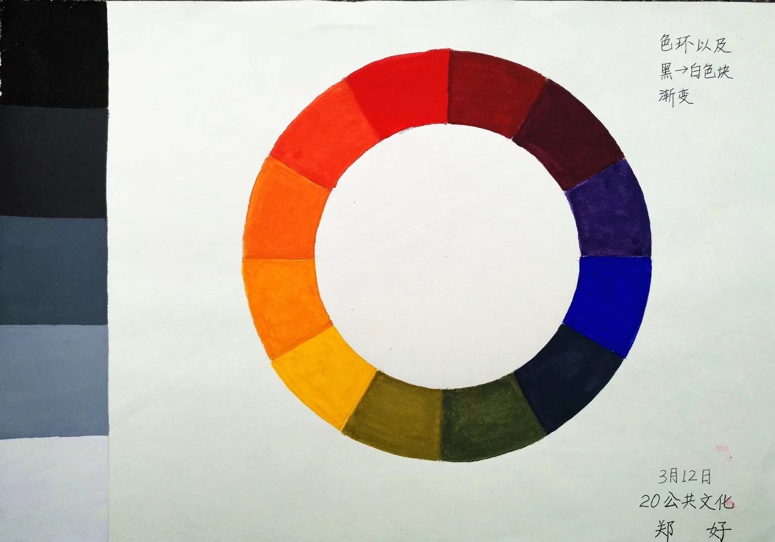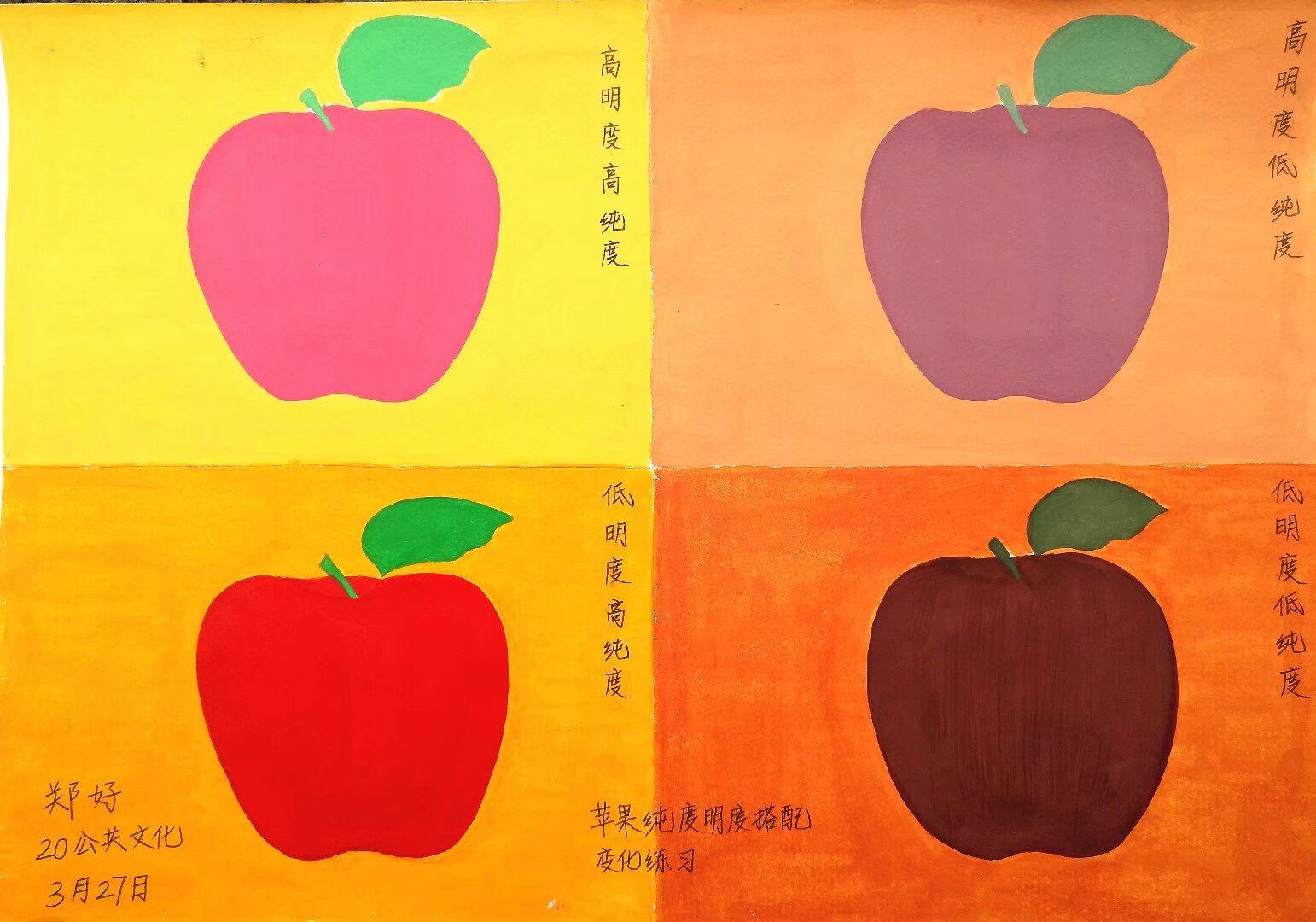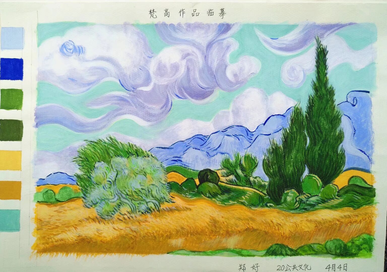 晒晒我的宝藏技能:以色彩为笔,在水粉里,从零基础到奔赴热爱✨(绘画篇4) 如果说画画是一场漫长的修行,那我的修行,是从一支支水粉颜料、一个个基础色块开始的。在大专的色彩课上,我从最基础的色环练起,一笔一画,在水与色的交融里,慢慢解锁了色彩的魔法,也把这份热爱,练成了属于自己的宝藏技能。 最开始,是色环上12种颜色的有序排列,是黑到白的渐变、冷暖色调的区分,是纯度与明度的反复调试。我在一个个方块里,练习三原色的渐变、互补色的搭配,在红蓝交织的立体方块、暖粉环绕的视觉错觉里,一点点读懂色彩的逻辑:原来冷暖、明暗、纯度,是构建画面的基石;原来每一笔调色,都是对色彩感知的打磨。那些看似枯燥的基础练习,是我走进色彩世界的第一扇门,让我学会用眼睛观察,用双手调和,在水与粉的晕染里,找到色彩的平衡与美感。 从基础的苹果明度纯度练习,到莫兰迪静物的温柔临摹,再到梵高《麦田与柏树》的热烈复刻,每一步都是成长的印记。我学着用莫兰迪的低饱和色调,画出静物的静谧与高级;用梵高的浓烈笔触,复刻麦田的金黄、柏树的苍劲、天空的奔涌。在临摹名家作品的过程中,我不仅是在复刻画面,更是在学习大师的色彩逻辑、笔触风格,在一次次调色、一遍遍铺色里,慢慢形成自己对色彩的理解与表达。 有人说,水粉难在控水,难在调色,难在每一笔的恰到好处。而我始终觉得,所谓的“宝藏技能”,从来都不是天赋异禀,而是日复一日的坚持:是对着色环反复调色的耐心,是为了一个色块反复修改的执着,是在水与色的交融里,慢慢沉淀的热爱。这些画,不仅是我专业学习的成果,更是我青春里最认真的注脚,是我从零基础,一步步走向热爱的证明。 这支画笔,这些颜料,早已不只是绘画的工具,更是我与世界对话的方式,是安放情绪的角落。开心时,用热烈的色彩把快乐铺满纸面;烦躁时,用莫兰迪的温柔让心慢慢沉静。它是我藏在生活里的“超能力”,是我独一无二的闪光印记,是无论走多远,都能让我回归本真的热爱。 原来最好的成长,就是从基础做起,把热爱做到极致;最珍贵的宝藏,就是用色彩,把平凡日子,画成满纸星光。我的宝藏技能,是用水粉,在色彩里奔赴热爱。你的呢?愿我们都能在自己的热爱里闪闪发光,让每一份坚持,都成为照亮自己的光。