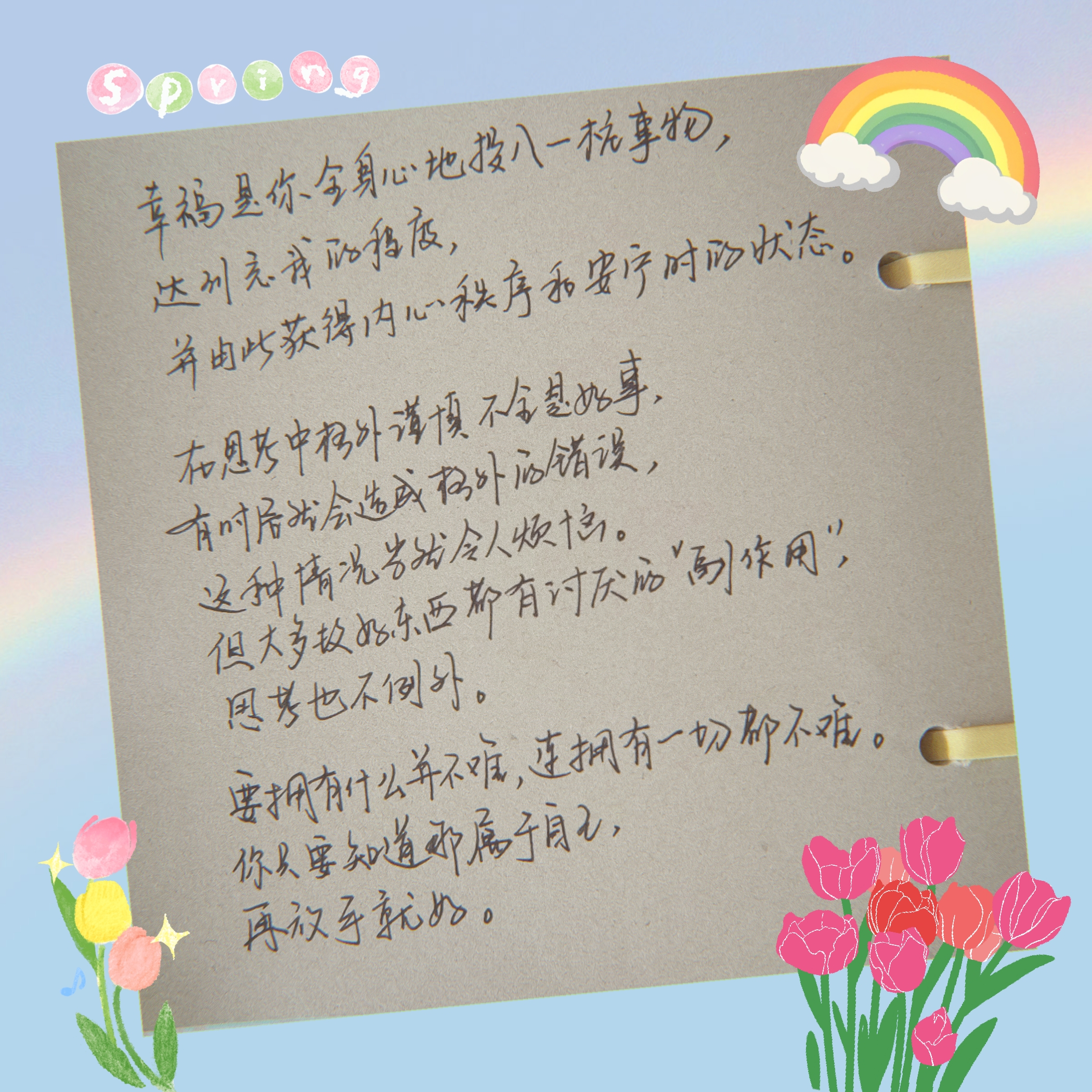 ✰幸福是你全身心地投入一桩事物, 达到忘我的程度, 并由此获得内心秩序和安宁时的状态。 ✰要拥有什么并不难,连拥有一切都不难。 你只要知道那属于自己, 再放手就好。
