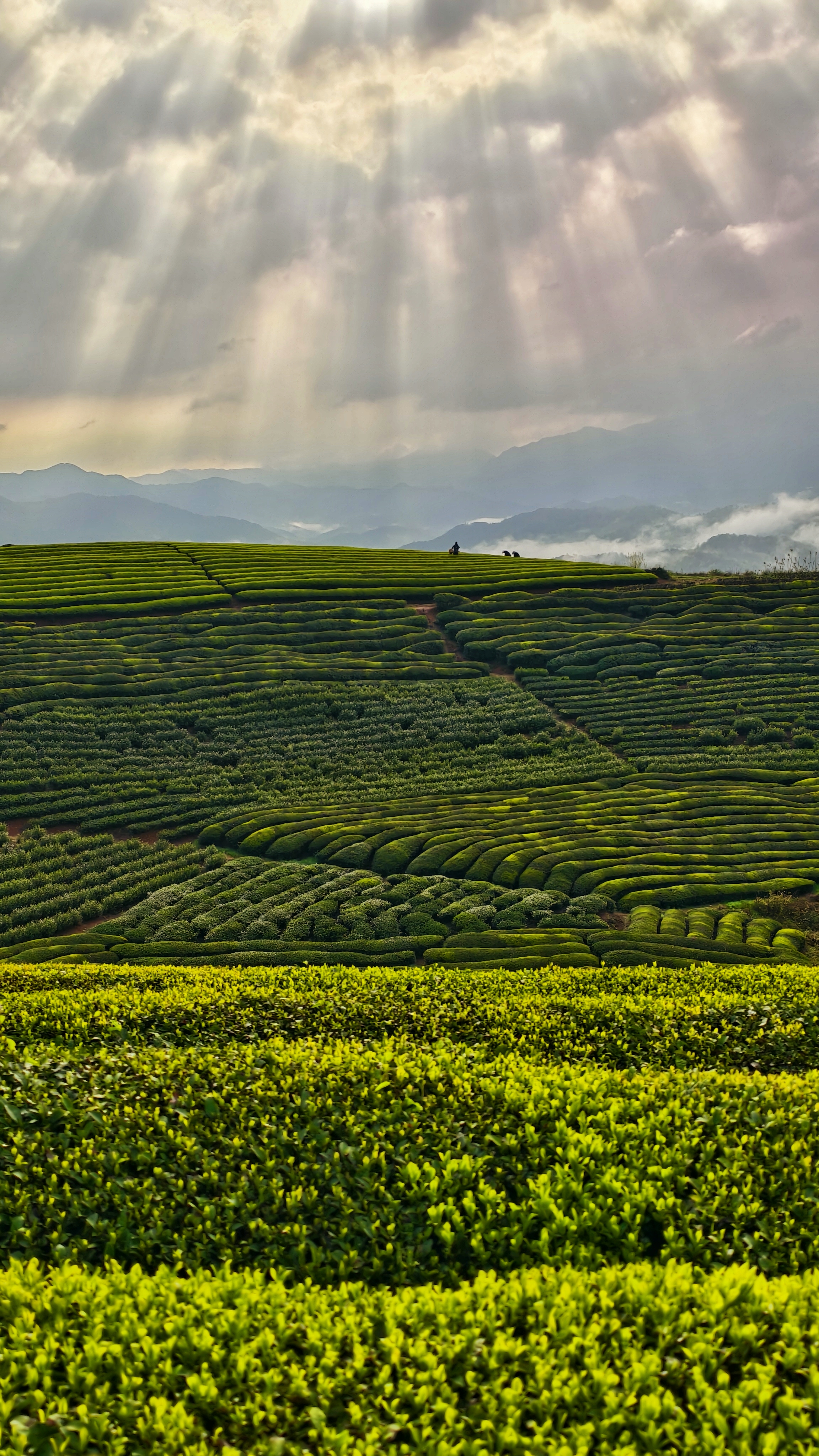 《光耀茶园》 说明:天光洒落茶山,绿浪翻涌生金,一束束光,照亮茶乡致富路。