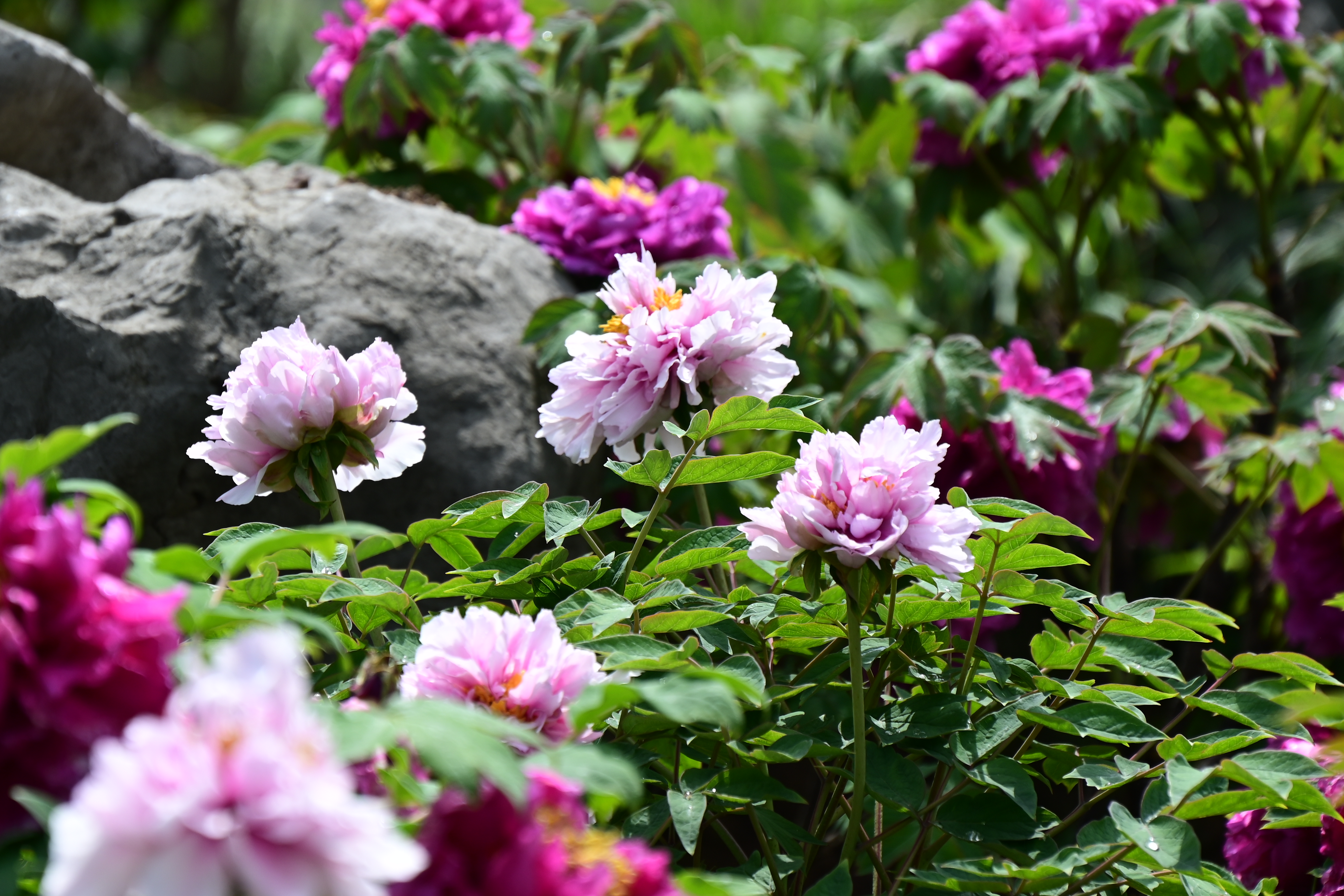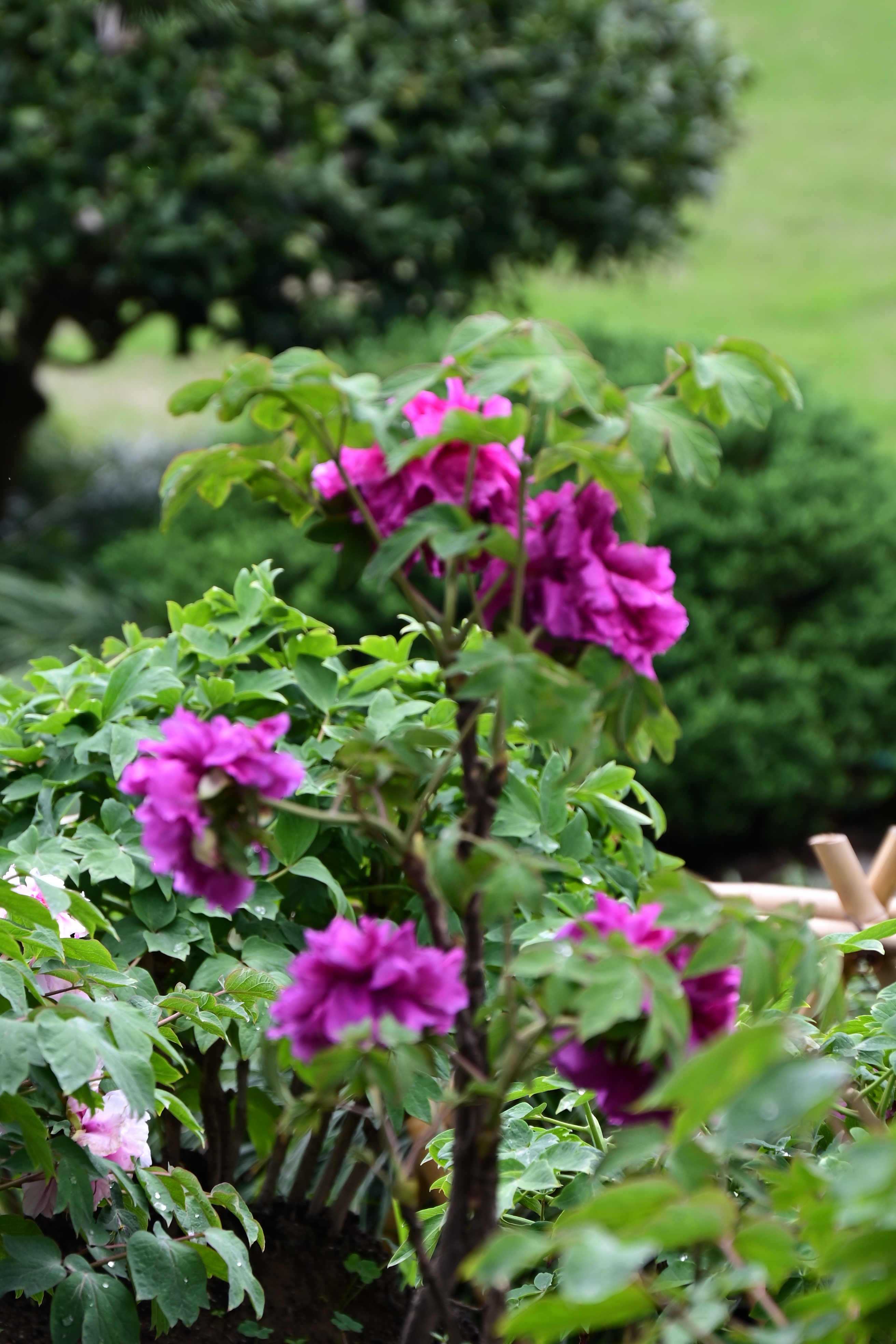 这组照片,完全捕捉到了牡丹那种雍容华贵、娇艳欲滴的神韵!配合最后一张“牡丹园”的石刻,一看就知道是在杭州花港观鱼的牡丹园。 “清明假期”和现在的时节(4月初),这正是杭州牡丹的盛花期,游客赶上了最好的时候。 花港观鱼的“国色天香”,镜头下的这些牡丹,正是花港观鱼最引以为傲的景观之一。 地理位置:花港观鱼公园位于西湖西南角,其中的牡丹园位于公园的西北部,紧邻西里湖,环境清幽。 景观特色:这里的牡丹园占地约7000多平方米,依山傍水。它不是那种整齐划一的种植,而是利用地形起伏,将牡丹与山石、树木(如红枫)巧妙搭配,营造出一种“万绿丛中一点红”的古典园林意境。 品种丰富:园内汇集了来自洛阳、菏泽以及日本等地的名贵品种,有数百个品种,数千株牡丹。这组照片抓拍到的粉色和紫红色花朵,很可能是经典的“赵粉”或“魏紫”等名品,花瓣层层叠叠,花蕊金黄,确实“娇艳欲滴”。 牡丹与芍药的“花期接力”:虽然大家常把“牡丹”和“芍药”并称“花中二艳”,但现在看到的确实是牡丹。 木本与草本:牡丹是木本植物,有木质化的枝干,冬天地上部分不会完全枯死;而芍药是草本,冬天地上部分会枯萎。 花期差异:俗话说“谷雨三朝看牡丹,立夏三朝看芍药”。现在的4月初(清明前后)正是牡丹的主场,而芍药的花期通常要晚半个月到一个月左右。所以你现在在花港观鱼看到满园盛开的主角,毫无疑问就是牡丹。 赏花小贴士:既然在现场享受这份惬意,不妨多留意一下周围的环境。花港观鱼的牡丹园设计非常精巧,除了平视花朵,来这里也可以尝试找找角度,把远处的西湖山水或者近处的太湖石作为背景,能拍出更有层次感的“国风大片”。 现在的天气(4月初)早晚温差可能还比较大,赏花时注意保暖。祝游客在杭州的踏青之旅愉快,尽情享受这“唯有牡丹真国色”的美好时光!