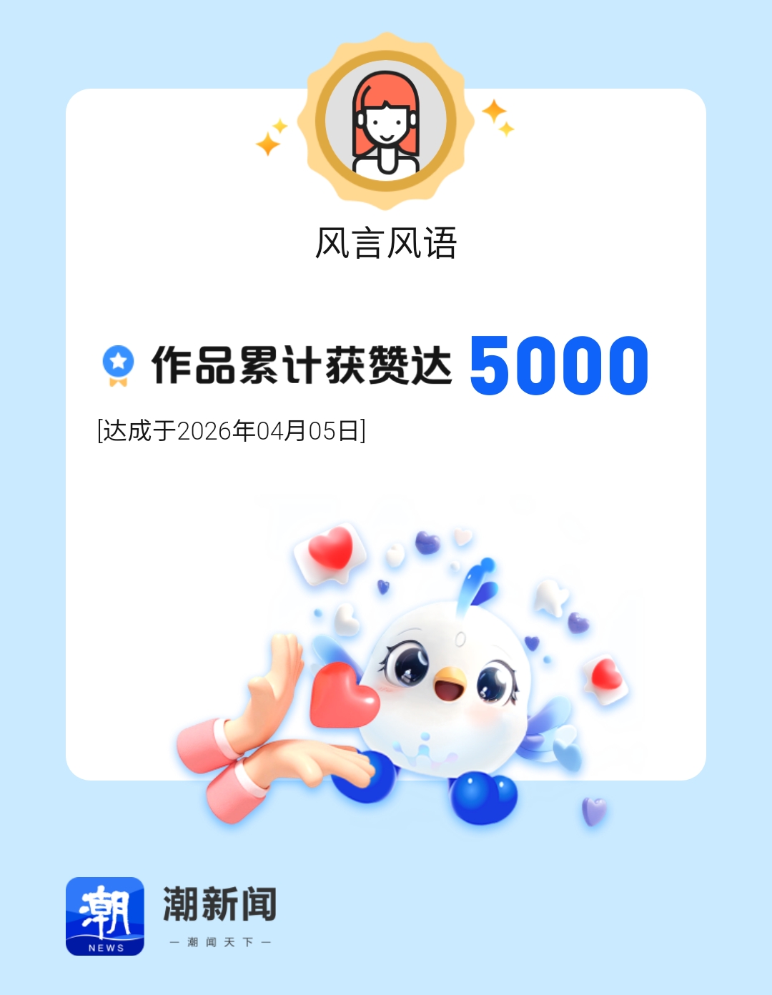我在潮新闻发表的所有作品累积获得了5000个赞!