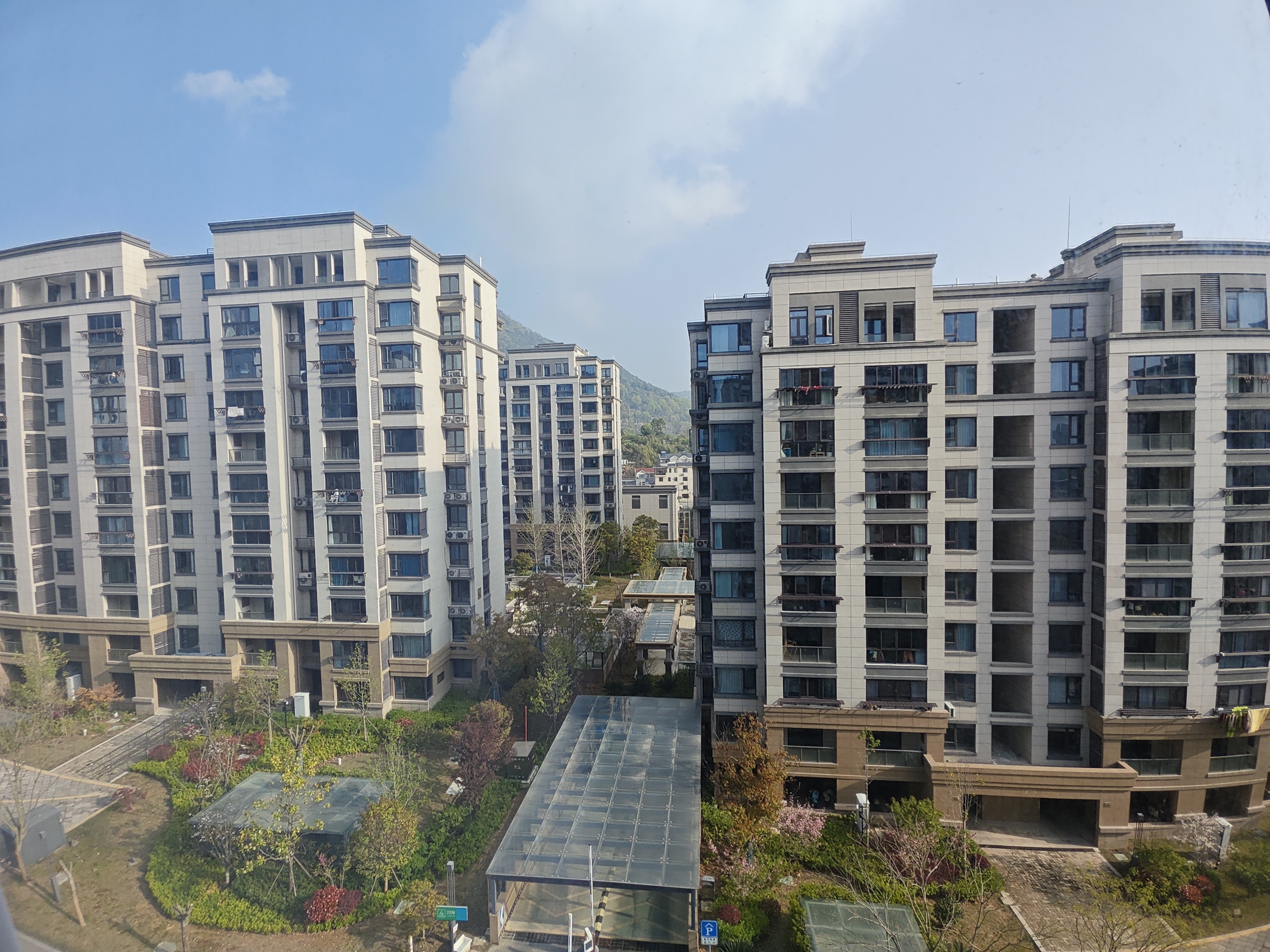 楼宇间的春信 推开窗户,春日的风便裹着暖意涌进来,眼前的小区景致,像是一幅被时光晕染的工笔画,静静铺展在蓝天下。 几栋米白色的高层住宅楼错落而立,线条简洁而沉稳,外立面的浅棕装饰带似大地的脉络,将楼宇的层次悄然勾勒。每一扇窗都像是一只凝望的眼睛,有的映着澄澈的天光,有的藏着主人家晾晒的琐碎温暖——几件衣物在阳台边轻轻晃动,像是给冷硬的建筑缀上了柔软的流苏。玻璃幕墙反射着日光,明暗交错间,楼宇便有了呼吸的韵律。 楼宇之间的空隙里,藏着春的私语。低矮的灌木丛刚从冬的沉睡中苏醒,新抽的嫩叶绿得发亮,几丛深紫的灌木点缀其间,如泼洒的墨色。几株树木或疏或密地生长着,有的枝桠还带着冬的枯瘦,却在顶端萌出了嫩芽,像是怯生生探出头的小精灵;有的已然绽开了粉白的花,细碎的花瓣在风里微微颤动,似落了一场温柔的雪。草坪尚有些斑驳,黄绿相间,却不妨碍几株小树挺直了腰,将细枝伸向天空,仿佛在与楼宇比高。 最惹眼的是中间那座玻璃顶的廊道,透明的棚顶让阳光毫无保留地倾泻而下,光影在地面织成跳跃的网。廊道旁的小径蜿蜒着,通向楼宇的门厅,地砖上的纹路在绿意里若隐若现。远处的山峦在淡蓝的天际线下晕开,青灰色的轮廓柔和而悠远,像一幅水墨长卷的背景,将小区的烟火气衬得愈发真切。 风掠过楼宇的间隙,带来草木的清香,也带来远处隐约的人声。这里没有都市的喧嚣,只有楼宇的静默与自然的低语交织,每一扇窗后都是一个家的故事,每一株草木都在时光里静静生长。春日的光,就这样落在楼宇的白墙上,落在草木的新绿里,也落在每一个路过的人心上,酿成一份安稳而温柔的日常。