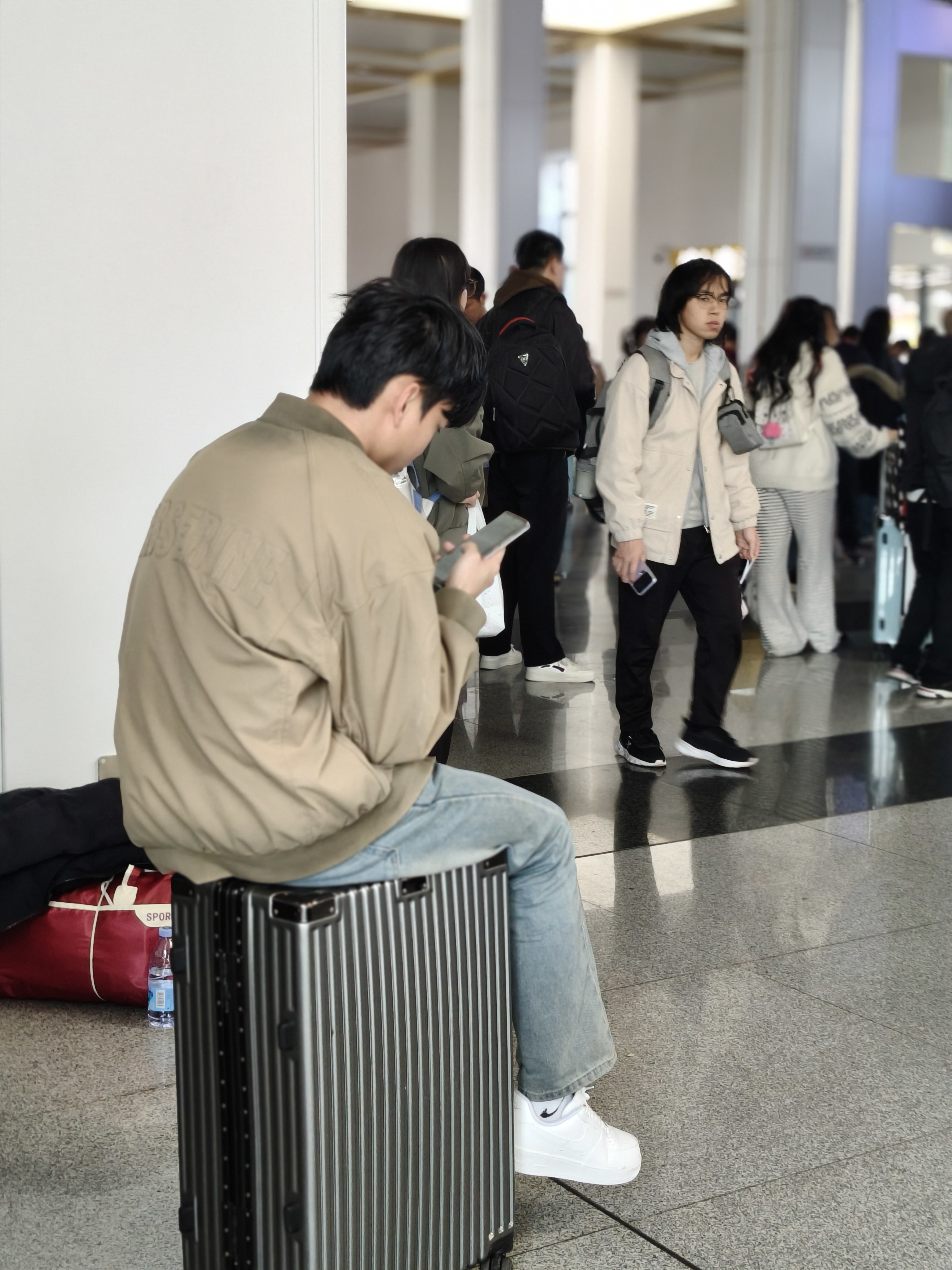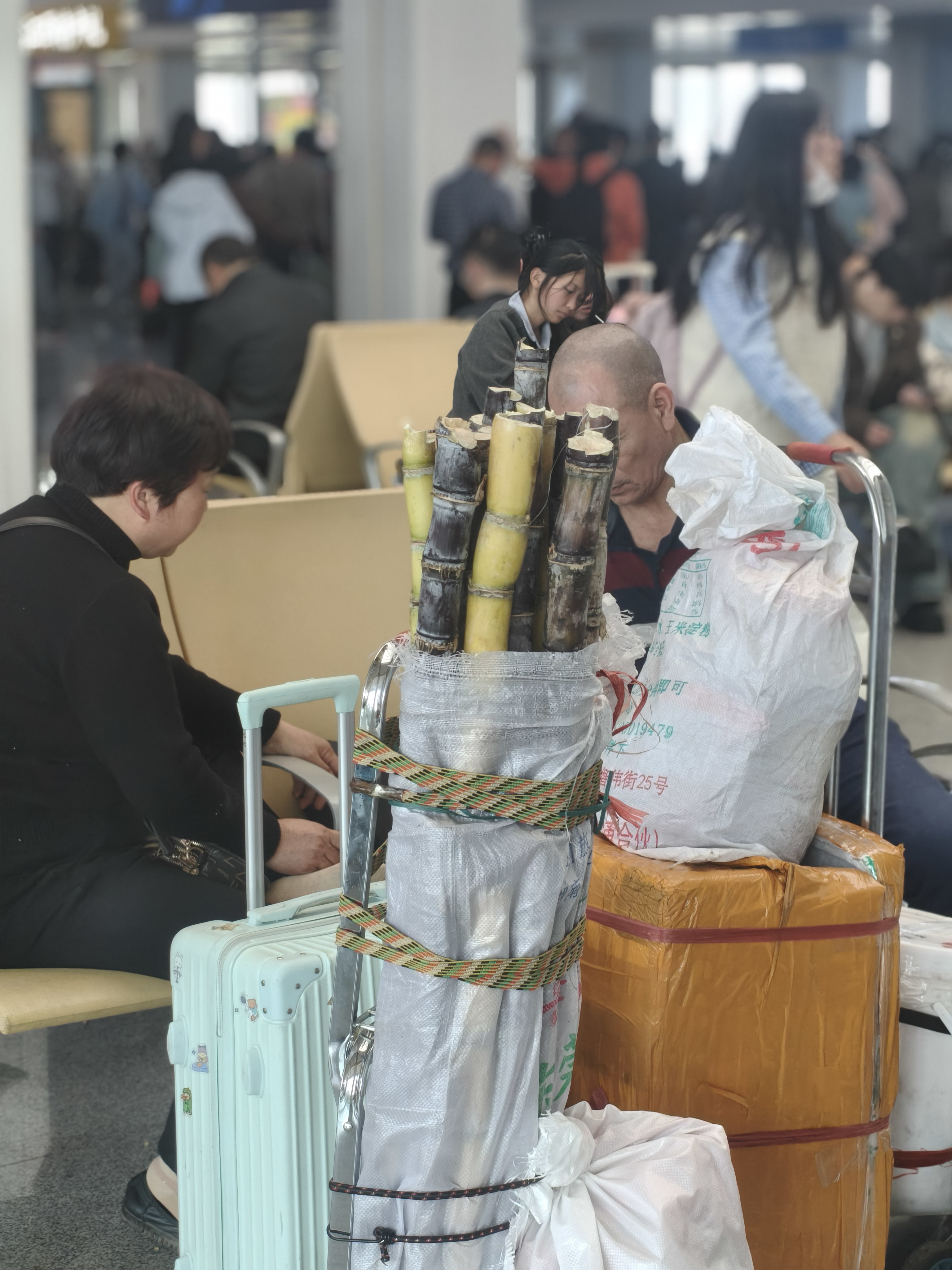 车站里,藏着最真实的人间。 甘蔗是家乡的甜,青菜是田间的鲜, 油瓶里的鸡蛋,是父母沉甸甸的惦念。 有人在奔波,有人在等待, 有人把疲惫睡在座椅上, 有人把思念藏进手机里。 每一件行李,都装着一个家; 每一次出发,都奔赴一场热爱。 旅途漫漫,人间值得。