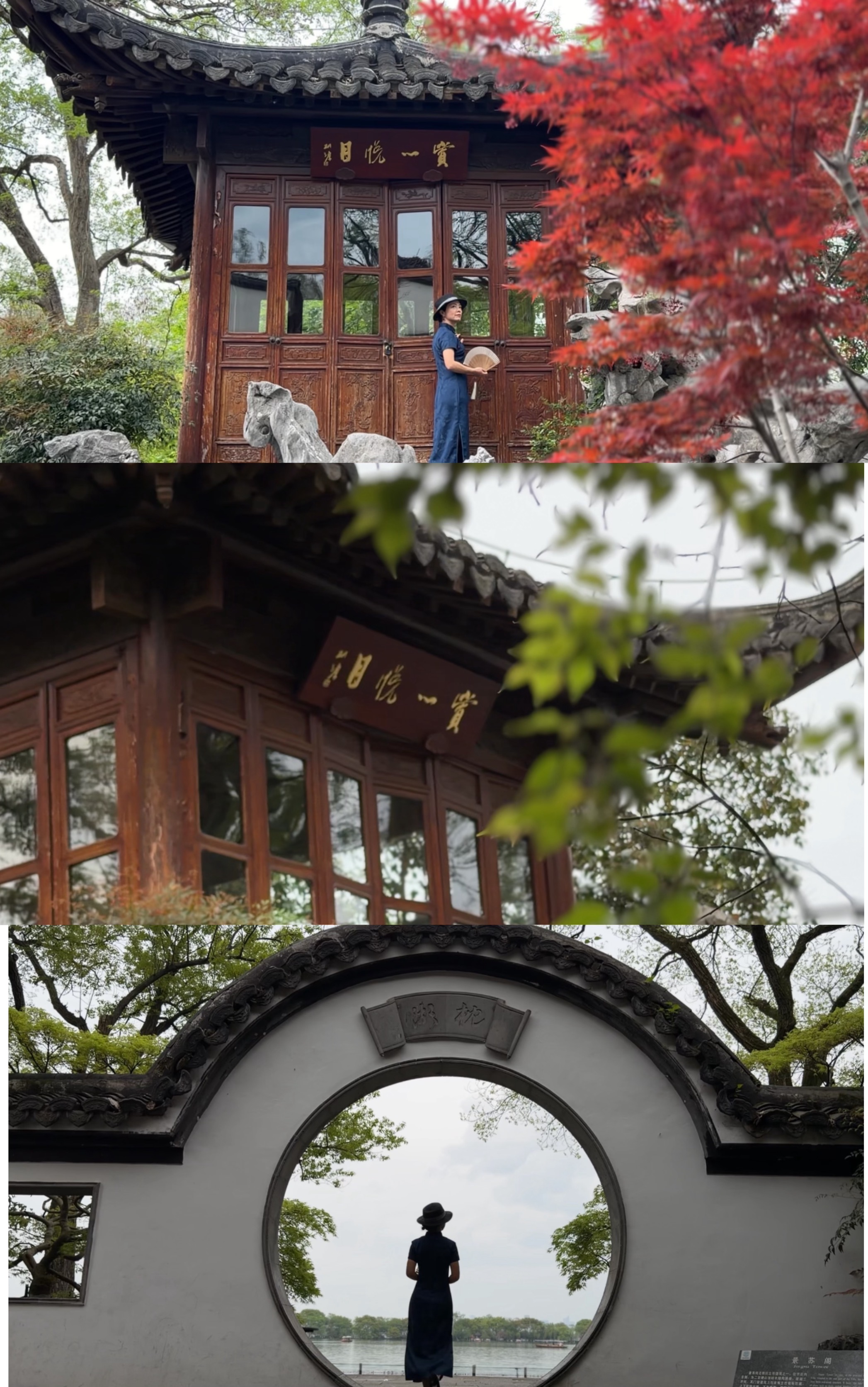 把青石板走成T台,把回廊逛成旧梦。 素色旗袍配郭庄的素净,不为惊艳谁,只为自己好看,走得自在。