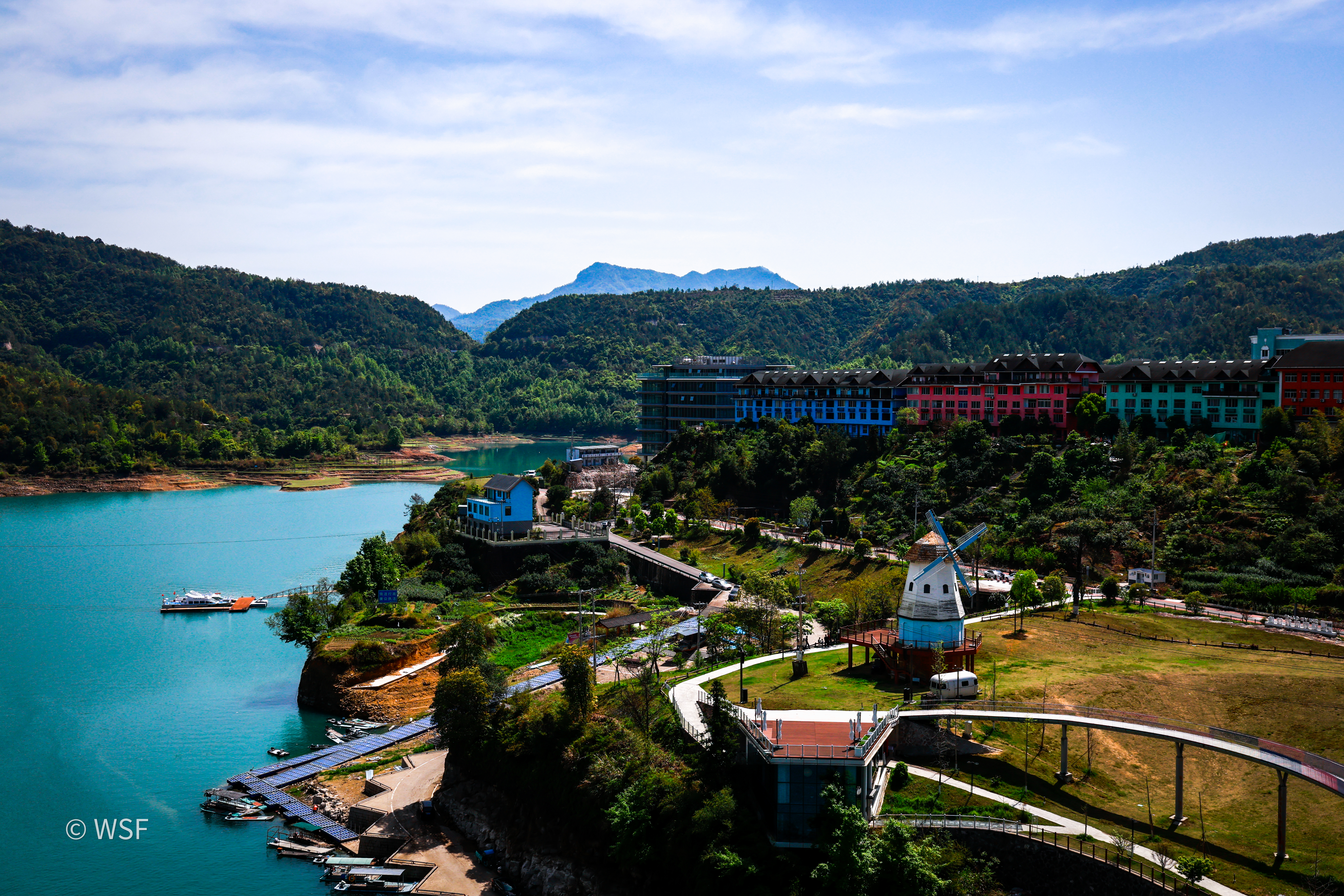 飞云湖畔,春意正浓,湖光山色皆成诗。 春意,已在飞云湖畔悄然生长。 不必远行,这一方浙南山水,便足以安放所有的浪漫与宁静。 🌊 碧水映天,童话落岸 最动人的,是飞云湖那一汪清透的蓝。 如翡翠般温润,似宝石般璀璨。远山含黛,近水潋滟,一叶扁舟静静划过,涟漪轻漾,将天与山都揉进了这湖春水之中。 而湖畔的彩色小屋与白色风车,是春天的童话。 红墙蓝瓦,绿树成荫,在明媚的阳光下交织成一幅绚烂的画卷。漫步在蜿蜒的步道上,仿佛置身于异域的山间小镇,治愈又美好。 🌿 草浪繁花,悠然山野 万芳草坪上,草色青青,野花点点。 这里的春天,是鲜活的。放眼望去,是一望无际的绿色草浪,仿佛闯入了童话般的山野,治愈感十足。 🍃 风过留声,心亦归宁 微风拂过,带走了喧嚣,也抚平了心绪。 站在湖畔,听风声过耳,看云卷云舒。时间仿佛在此刻慢下来,只剩下山水相伴的悠然。 这,就是泰顺的春天。 湖光山色,皆是诗意。 愿你在这片温柔的山水里,遇见属于自己的美好。