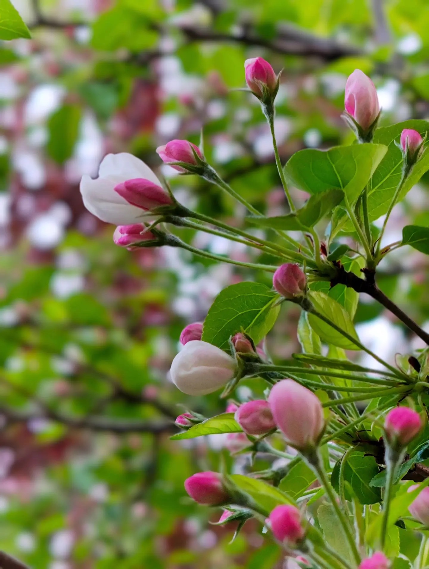春深似海,一树海棠悄然盛放。粉白花瓣如初雪轻覆,花苞微绽似羞涩低语,嫩绿新叶托着晨光,在枝头静静舒展。镜头凑近,脉络清晰,光影温柔——原来最动人的春色,不在远方,就在这俯仰之间的呼吸与凝望。园林深处,风过处,落花如雨,时光也慢了下来。
