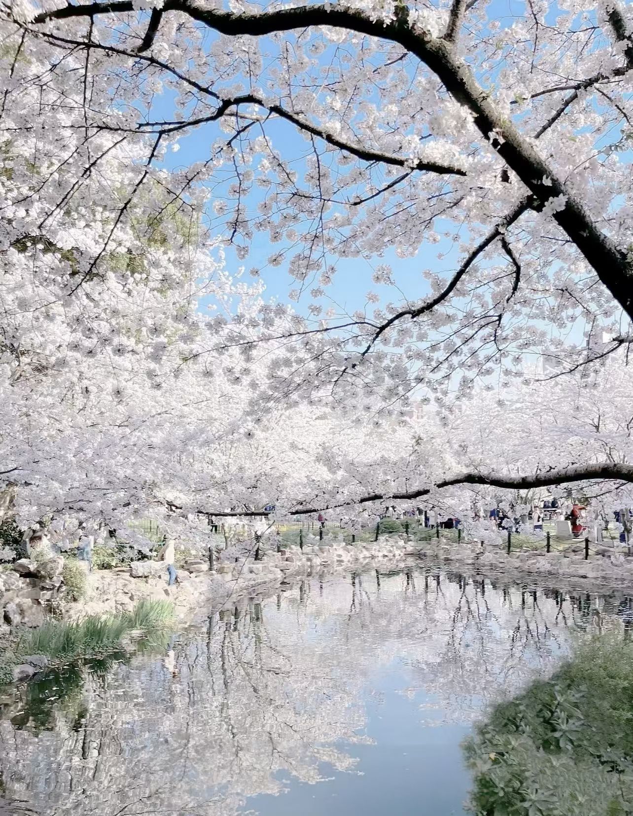抬头是漫天雪白,低头是人间烟火,樱花季的春天纯净美好👍😊