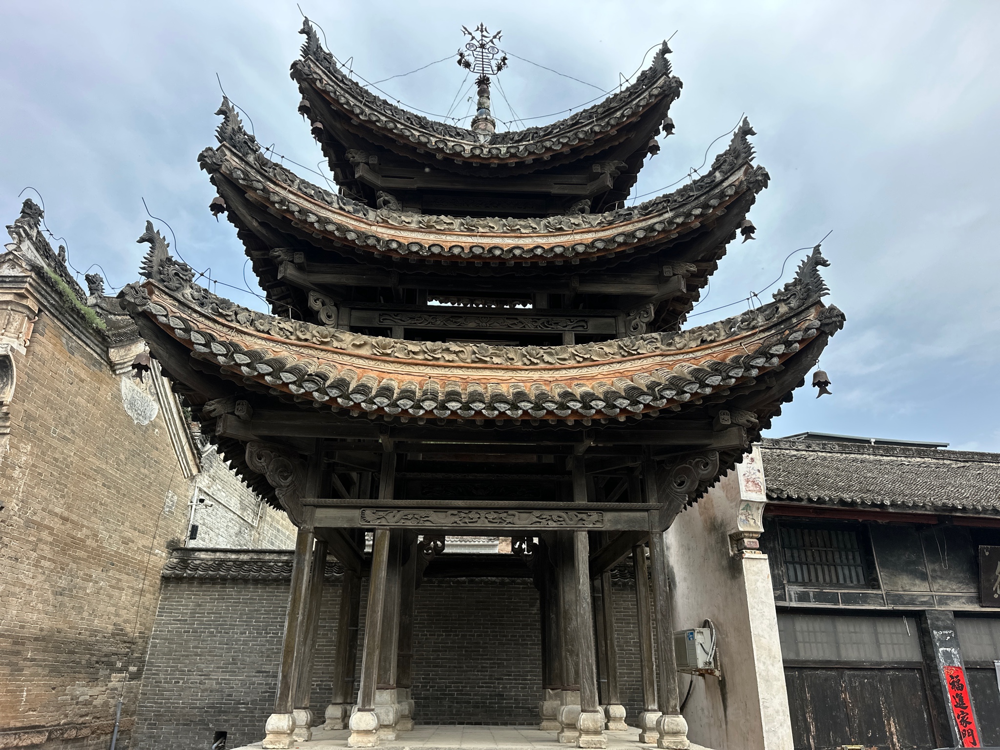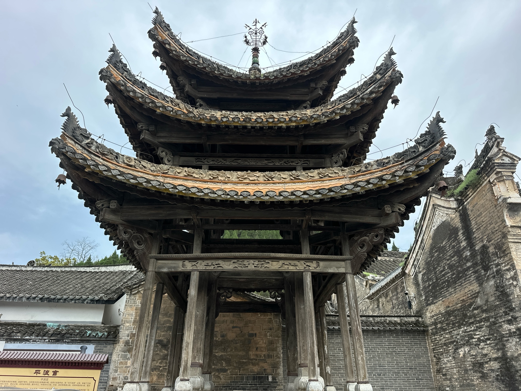 丹江畔,平浪宫静立如诗。飞檐翘角刺向青空,灰瓦覆顶,斗拱承托岁月重量。木纹里刻着船帮旧梦,铜铃轻响,似闻百年前江风浩荡。石柱无言,雕梁有韵,一砖一瓦皆是时光的拓片。镜头框住的不是建筑,是水运兴衰的呼吸。