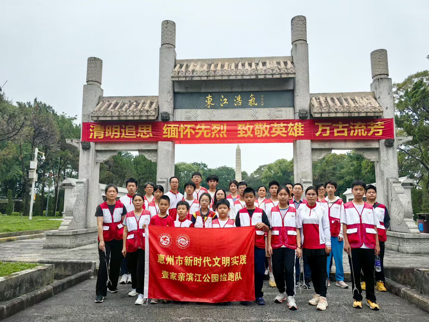 缅怀英烈,致敬英雄,清明寄哀思,热血续荣光。广东惠州壹家亲滨江公园捡跑队从滨江出发,一路捡跑至丰山公园,瞻仰东江人民革命烈士纪念碑,缅怀先烈、致敬英雄。以爱心守护绿水青山,以行动告慰先烈忠魂,让东江红色精神在公益捡跑中代代相传。