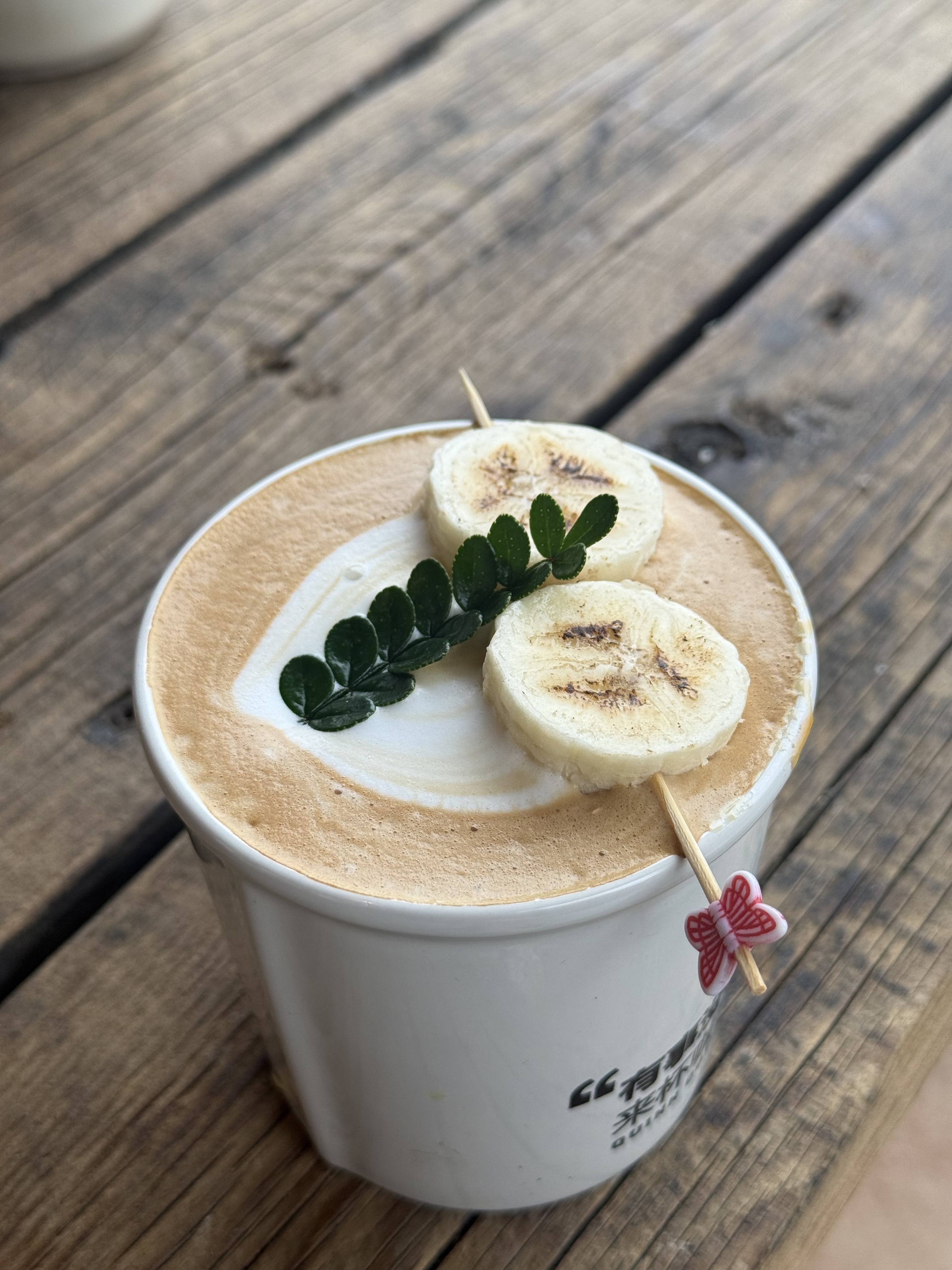 富阳山集咖啡馆不错,在山腰上空气好香蕉咖啡好喝。