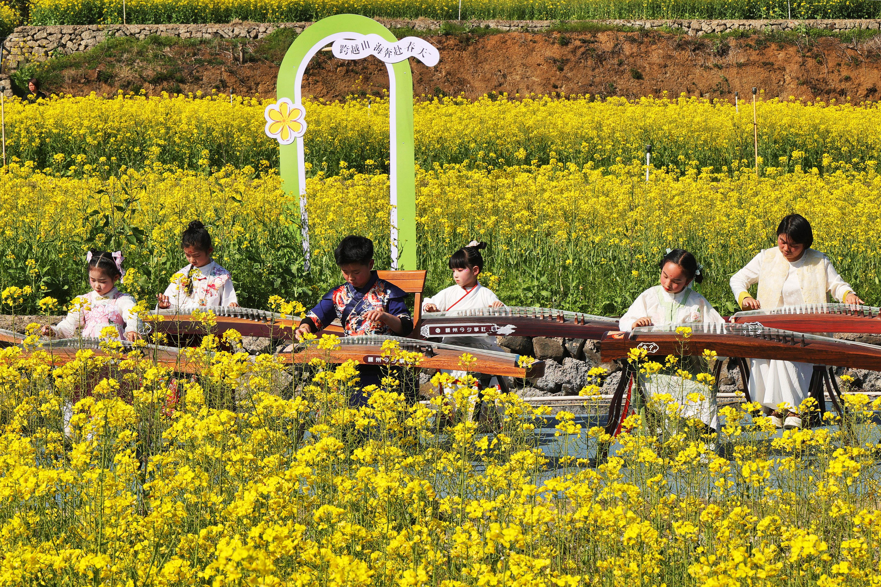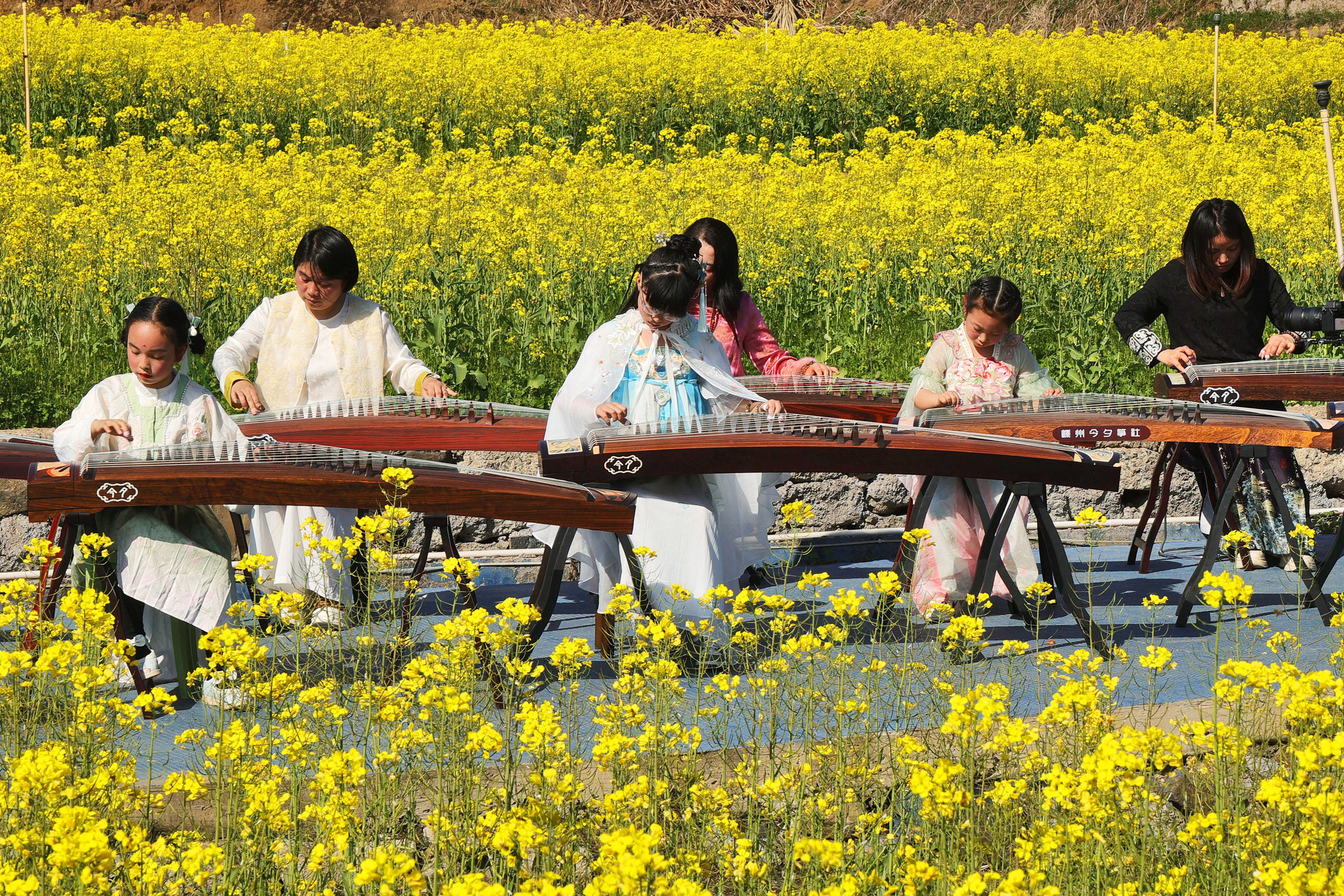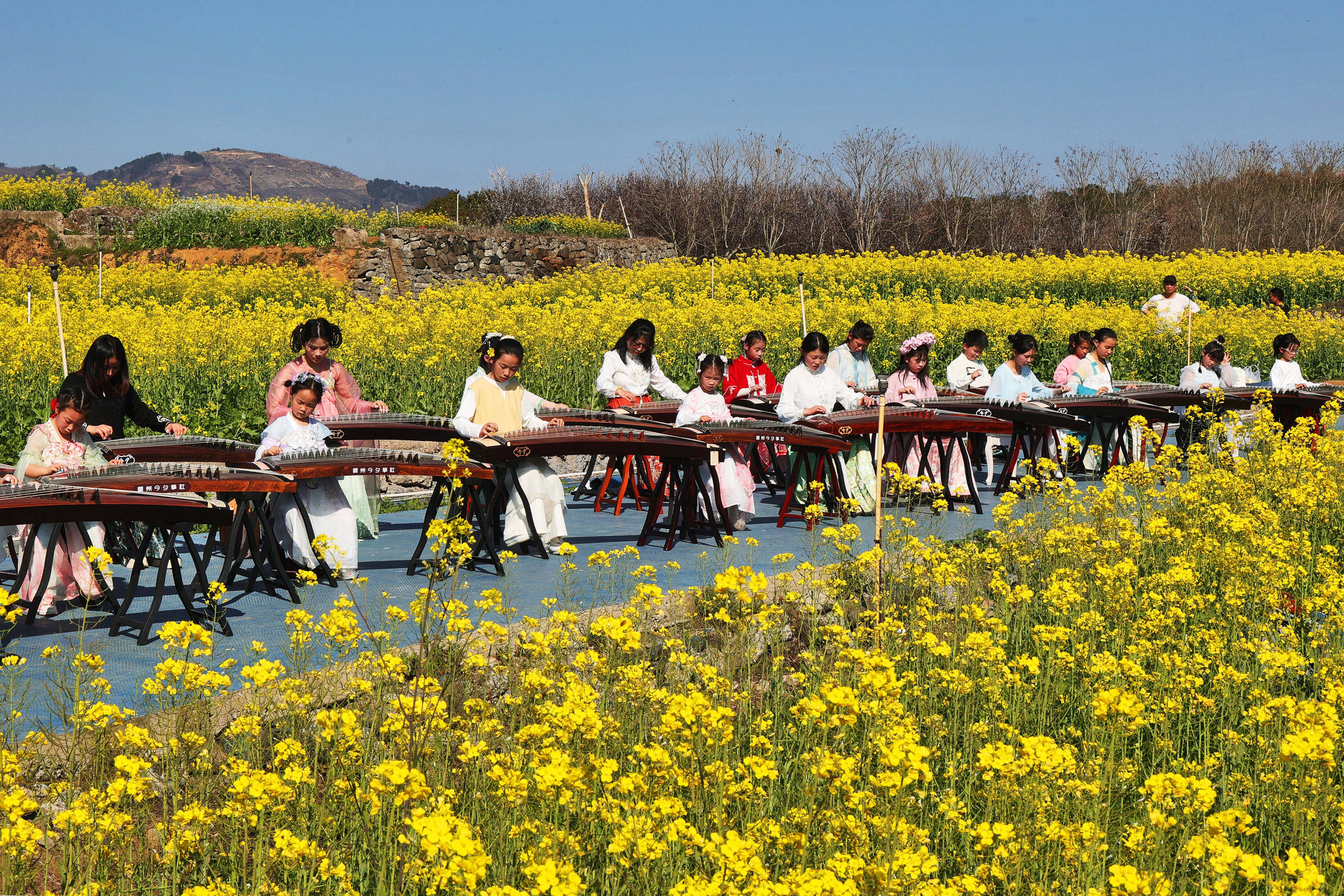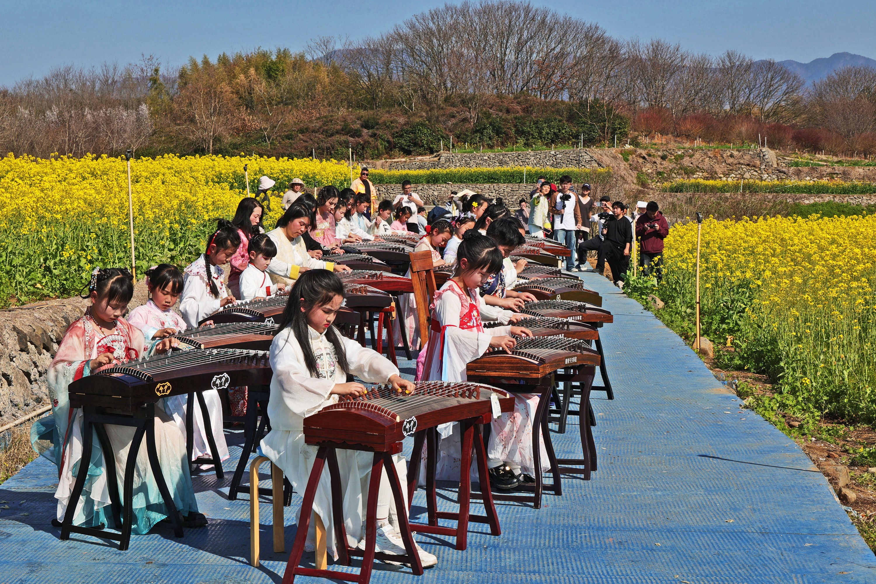 《花海“筝”美》日前,踏青赏春色,在嵊州黄泽镇家园村梦想田园油菜花海中邂逅一场古筝雅韵。筝声悠扬,为春天伴奏。在筝音与花香中,尽享田间休闲时光。 梦想田园休闲农场,是一处以田园风光为特色的休闲场所,是传统文化与乡村旅游融合的示范田园,春日以彩色油菜花海最为知名。