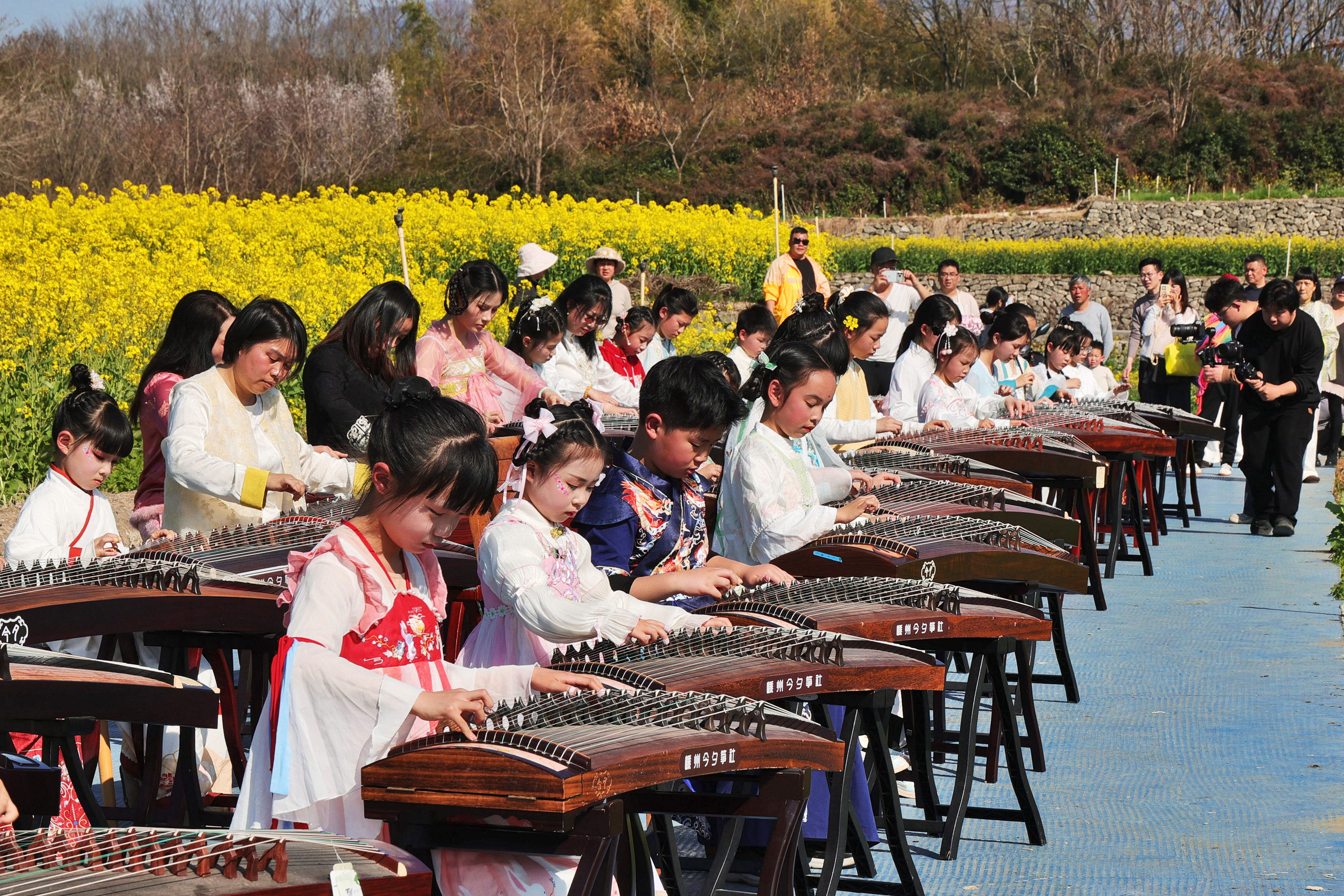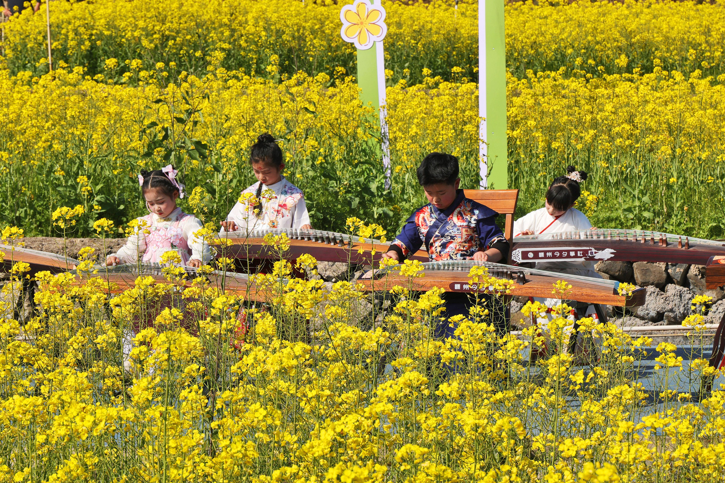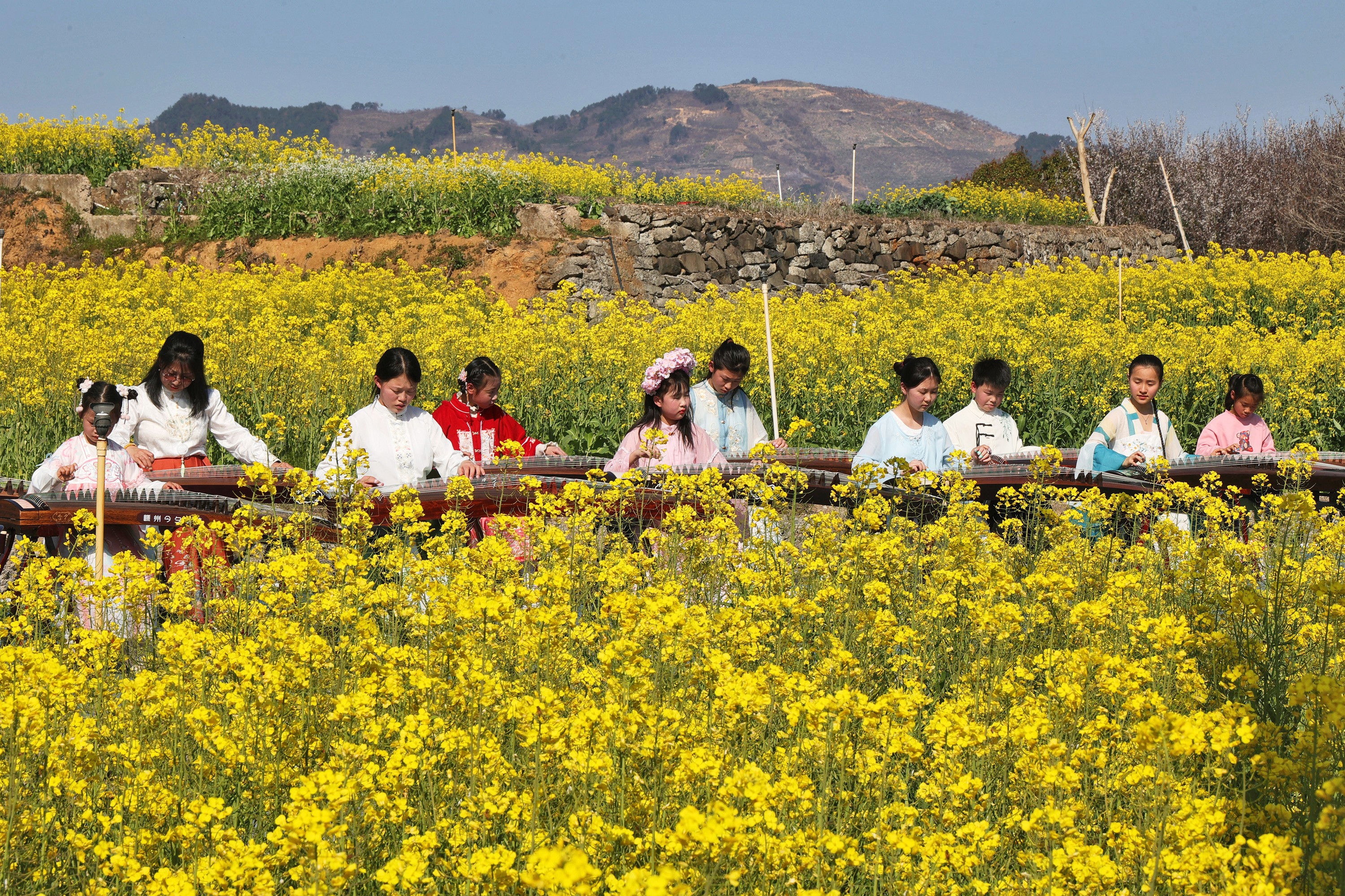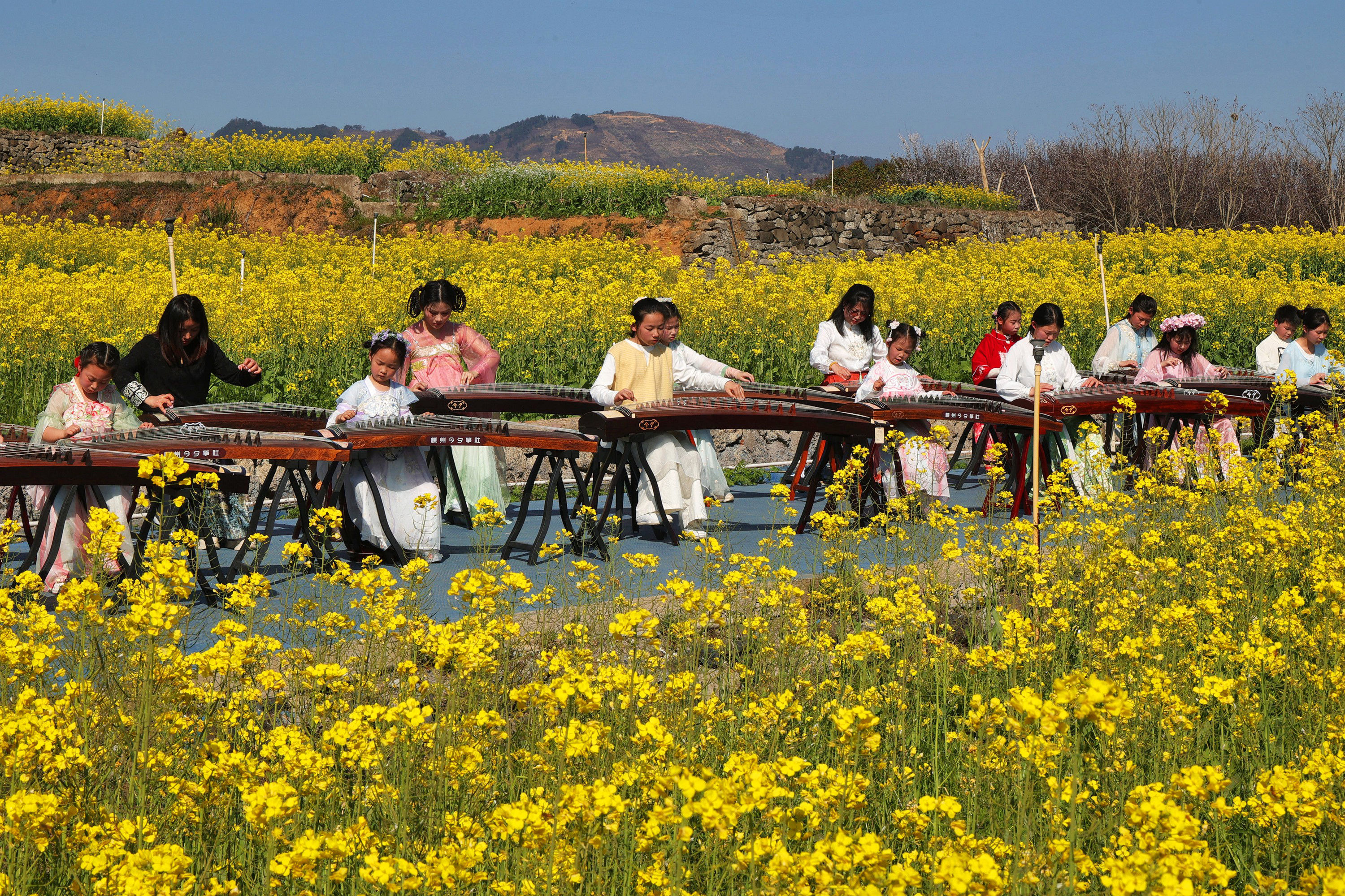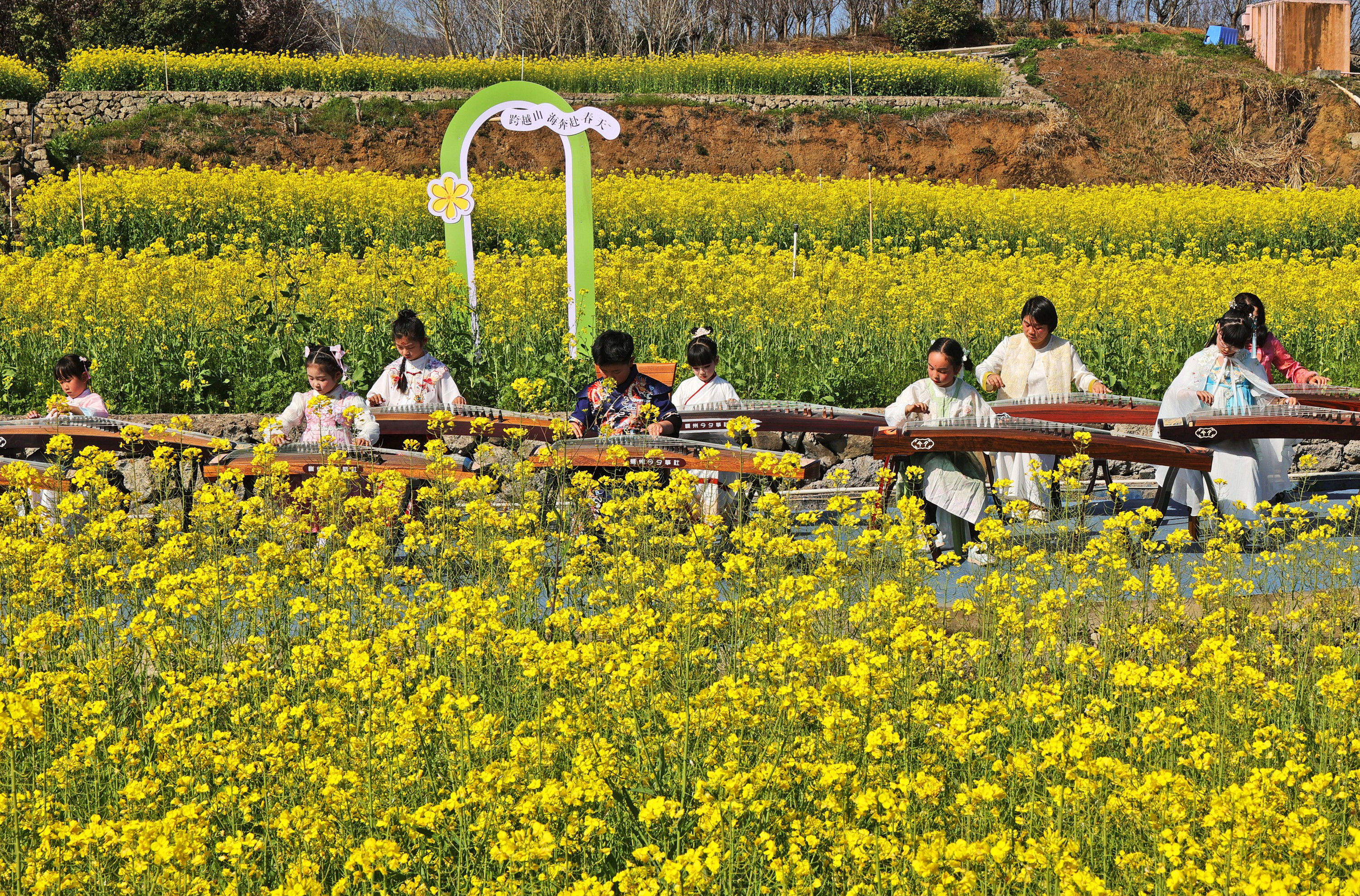 《花海“筝”美》日前,踏青赏春色,在嵊州黄泽镇家园村梦想田园油菜花海中邂逅一场古筝雅韵。筝声悠扬,为春天伴奏。在筝音与花香中,尽享田间休闲时光。 梦想田园休闲农场,是一处以田园风光为特色的休闲场所,是传统文化与乡村旅游融合的示范田园,春日以彩色油菜花海最为知名。