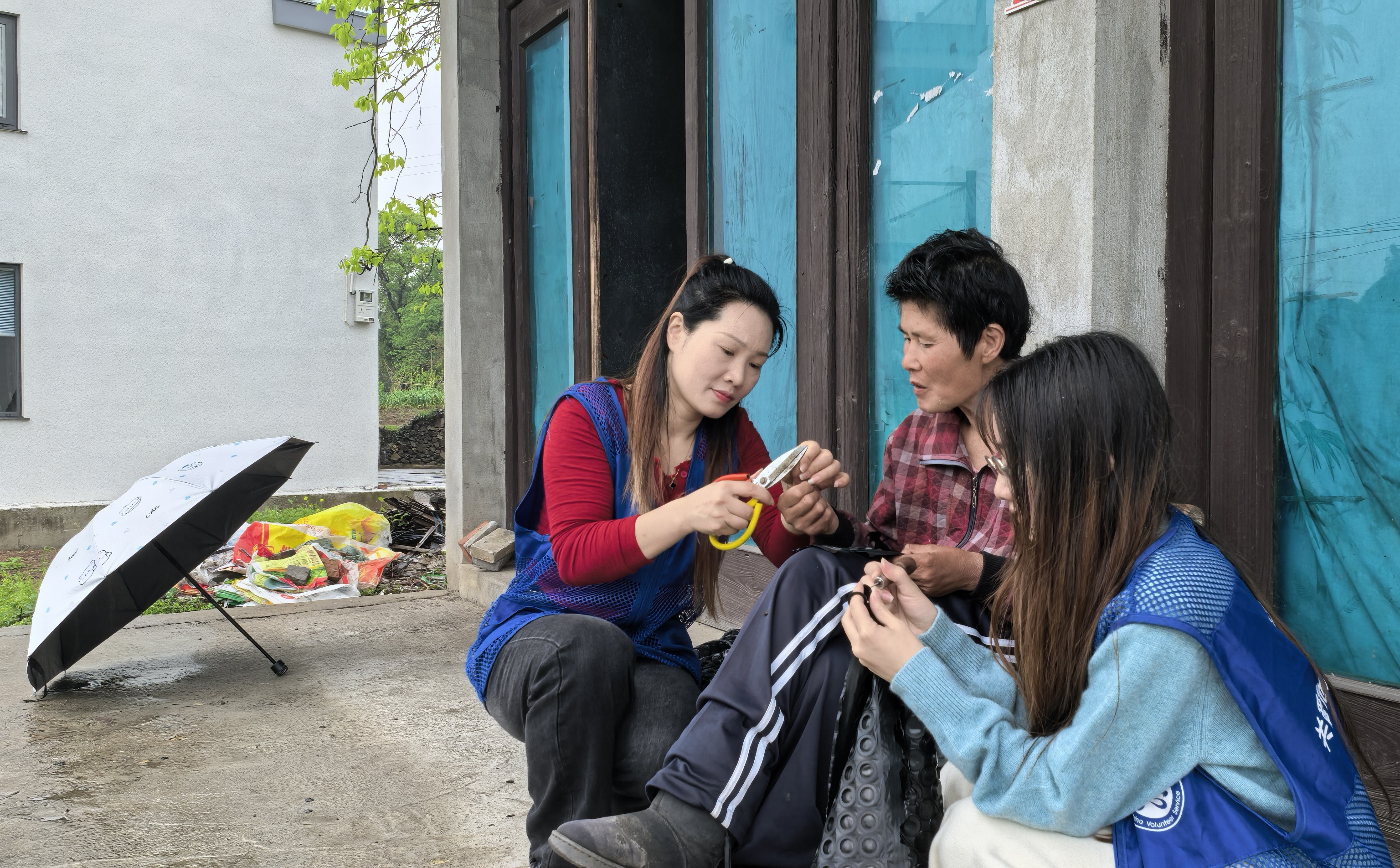 4月6号中午,义工们在后岭村开展第7918期“日行一善”学雷锋行动,陪结对户聊天谈心。