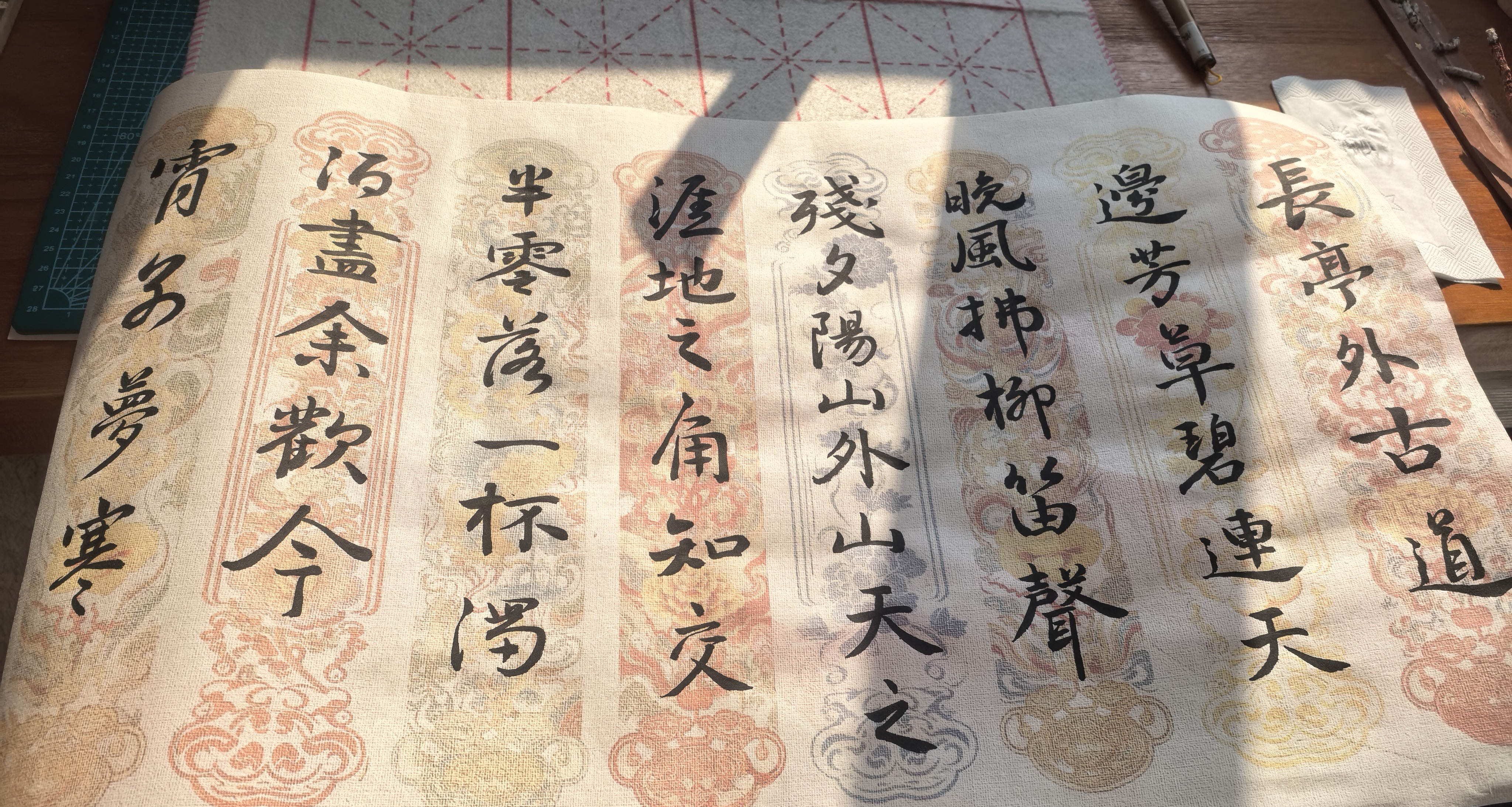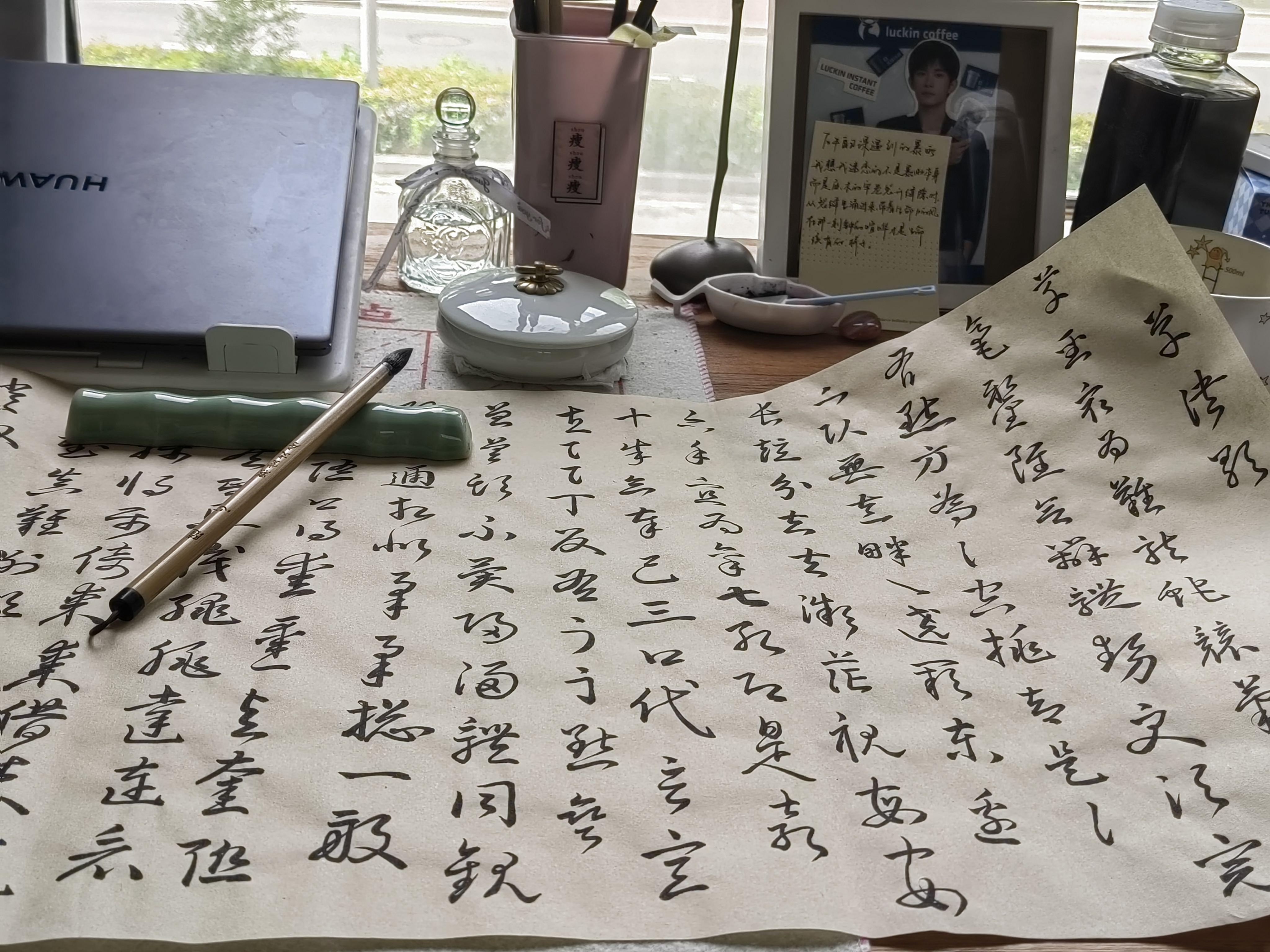 《墨香里的传承》 我第一次接触书法,是在外婆的老书桌上。那一方磨得发亮的砚台,几支笔锋渐秃的毛笔,还有一叠泛黄的毛边纸,像一座小小的时光博物馆,藏着我未曾见过的岁月。 外婆总说,写字不是为了应付作业,是为了和文字对话。她握着我的手,一笔一划教我写“人”字:“撇要轻,捺要稳,像做人一样,既要懂得收敛,也要站得端正。”墨汁的清香漫开在空气里,我看着宣纸上渐渐晕开的墨迹,忽然觉得那些横平竖直里,藏着比课本更厚重的道理。 后来我开始读《论语》,“三人行,必有我师焉”的句子,我第一次不是在课堂上,而是在外婆写的斗方里看见。她的字里带着温润的笔锋,就像她教我写字时的语气,不疾不徐,却字字清晰。我捧着那幅字反复看,忽然懂了“字如其人”的意思——那些藏在笔墨里的温柔与坚定,都悄悄落在了纸上。 再后来,我成了学校书法社团的一员。第一次写春联时,我握着笔的手还是会抖,外婆站在旁边,轻声说:“别怕,写坏了再写一张就好。就像你读的那些书里说的,错了就改,没什么大不了的。”我深吸一口气,写下“福”字的最后一笔,墨色饱满,红纸上的字像一团小小的火焰。那天我把春联贴在外婆家的门上,看着风把纸角吹得轻轻晃动,忽然觉得,这就是传承——是外婆教我握笔的温度,是墨香里飘来的句子,是那些藏在传统文化里,永远不会褪色的温柔。 现在我依然会在周末的午后练字,阳光落在书桌上,墨汁的清香里,我好像能看见小时候的自己,和外婆一起趴在桌上,一笔一划写着“人”字。原来成长从不是轰轰烈烈的大事,而是藏在这些细碎的瞬间里:是笔墨纸砚的陪伴,是书页间的文字,是代代相传的温度,悄悄把我变成更好的人。