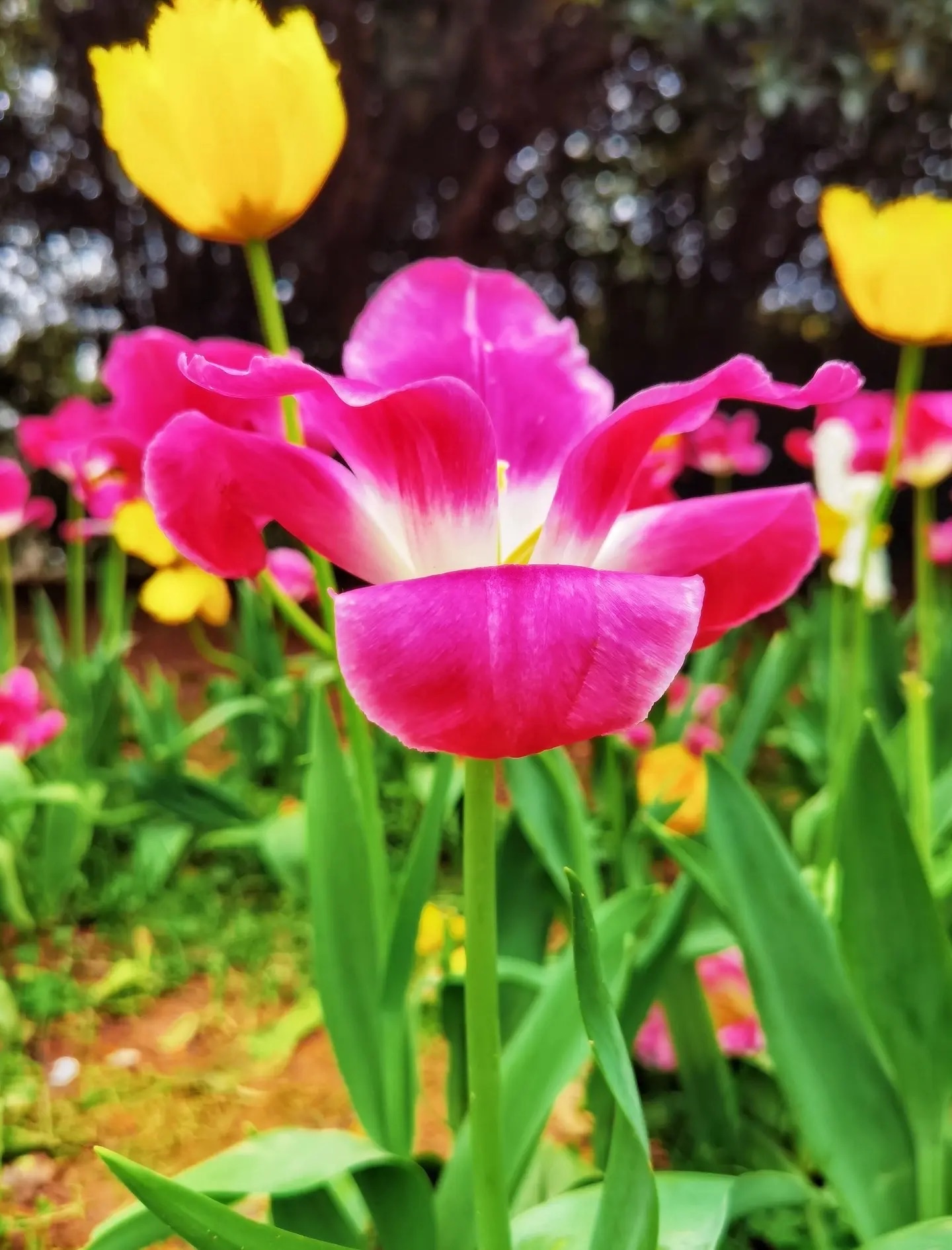 粉与黄,在春光里低语。郁金香一茎一世界,花瓣舒展如信笺,写满四月未寄的温柔。风过处,花影摇曳,绿叶托起整季的轻盈;俯仰之间,是花园的呼吸,是植物园静默的诗行。快门轻响,不是捕捉花朵,而是拾起春天遗落人间的几片心跳。