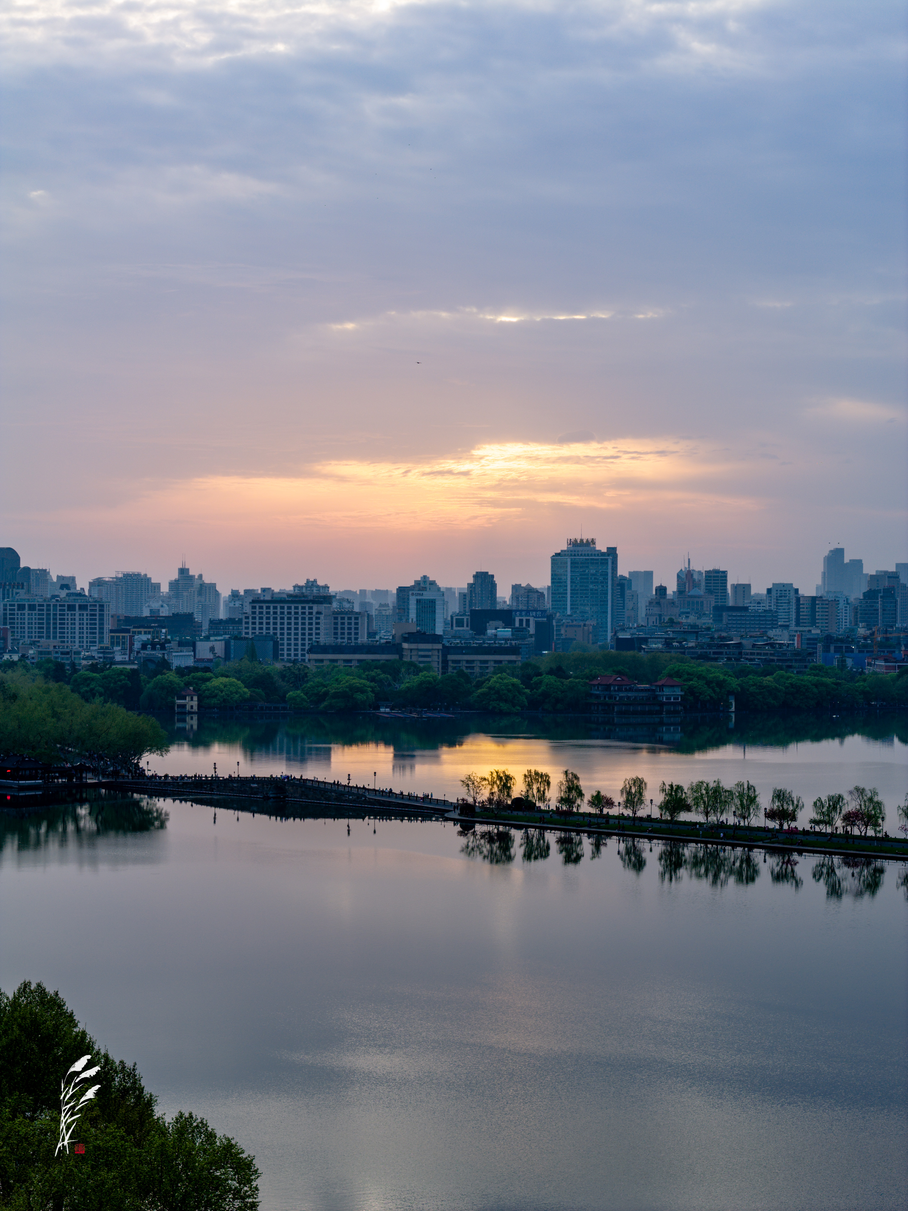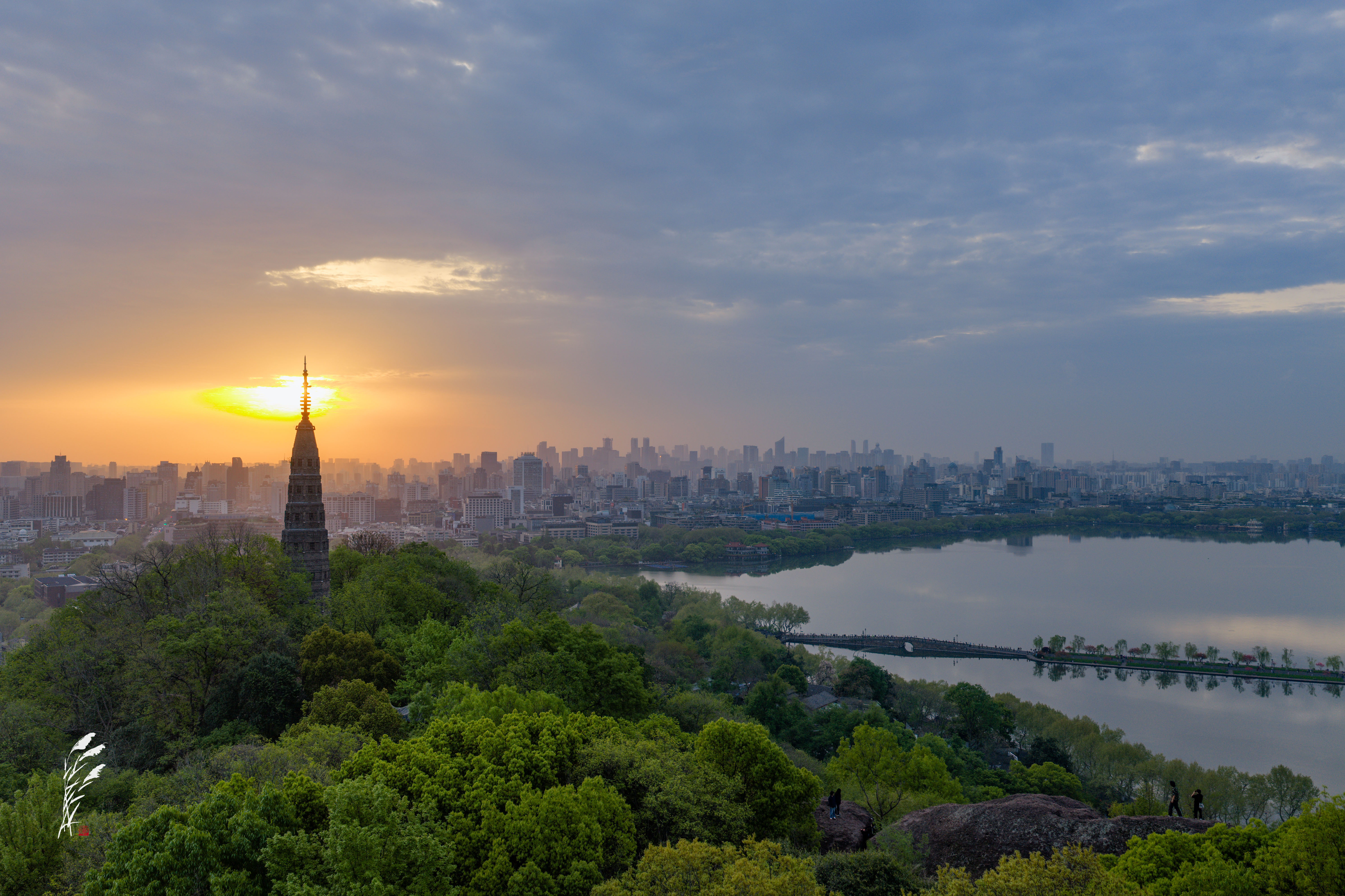 凌晨雾点,在宝石山撞见一场橘色浪漫 预报里的朝霞微烧信号,让我在凌晨四点骤然醒转,索性抓上相机,奔赴宝石山的晨光之约。 拾级而上,山间还浸着微凉的雾,抵达山巅时,天边已被霞色晕染。正应了 “雾散当轩见,霞开拂槛流”,橙红的晨光漫过天际,将保俶塔的剪影衬得愈发清峻,恰如 “塔影挂青汉,钟声和白云” 的古意。 抬眼望去,西湖如一块碧绿的绸缎,平静而温润。此刻,白堤正以最惊艳的姿态苏醒,两岸桃红柳绿相映成趣:一簇簇繁花燃得热烈,柳枝如烟般柔嫩,将春日的生机晕染得恰到好处。霞光落处,湖面波光粼粼,正成了 “日出江花红胜火” 的绝美注脚。 待朝阳跃出云层,满山岩粒熠熠生辉,这便是西湖十景里的 “宝石流霞”。站在山巅,看城郭渐醒,看白堤柳色在晨光里流转,才懂为何古人爱这般奔赴 —— 原来所有早起的奔波,都能被这一场朝霞与春色彻底治愈。