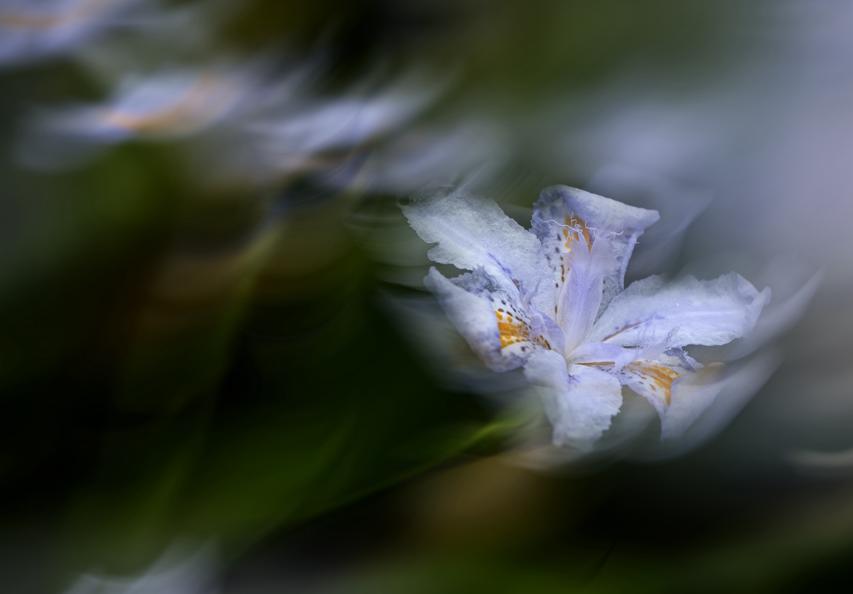 淡紫的鸢尾在绿影间浮沉,动态模糊的技法让画面有了水墨晕染的质感,仿佛不是拍花,而是绘了一幅流动的花卷,风停时,美便定格在此刻。