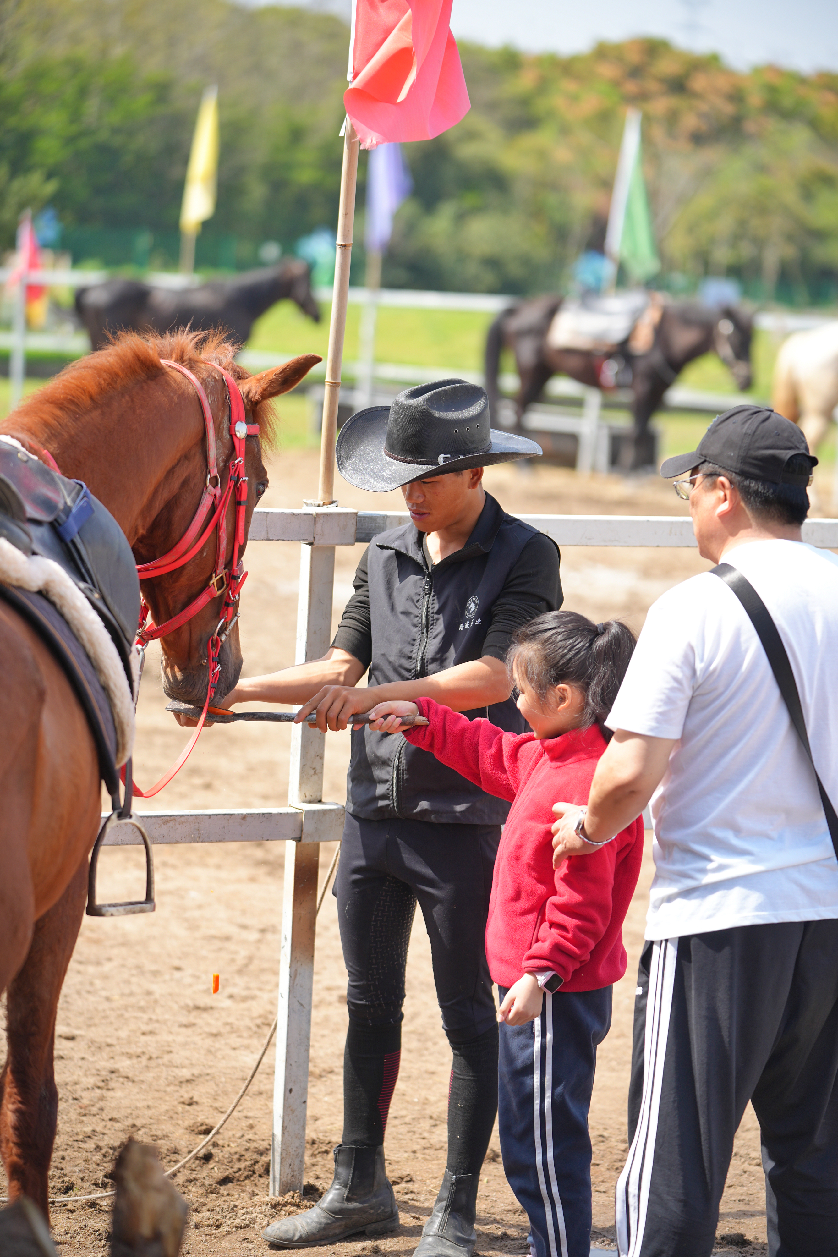 《四月:踏春游牧》四月的风,是被春阳揉软了的。它携着草木的清香,漫过马场的围栏,拂过马鬃的绒绒暖意,把一整个春日的鲜活,都揉进了这场与游牧生活的温柔邂逅里。 在宁波江北洪塘马场的沙地上,最先撞入眼帘的,是那匹红棕色的骏马。它垂着温顺的头颅,鼻尖轻蹭着小女孩递来的食料,红亮的马具在阳光下泛着温润的光,每一次呼吸都带着青草与泥土的气息。驯马师戴着宽檐牛仔帽,指尖稳稳扶着缰绳,用最温柔的姿态,引导着孩子与生灵的对话。我在一旁轻扶着孩子的肩,目光里满是宠溺,三代人的身影,在春日的马场里,晕成了最暖的风景。远处的围栏外,几匹马儿或立或行,彩色的旗帜在风里舒展,远处的青山叠着新绿,把天地间都染成了治愈的浅碧色。 这便是四月里,最动人的游牧日常。没有都市的喧嚣,只有马蹄踏过沙地的轻响,只有风穿过林间的低语,只有人与生灵彼此信任的温柔。游牧的生活,从来不是遥远的传说,而是此刻掌心触到马鬃时的温热,是看着孩子眼里闪着光的欢喜,是在自然里,重新找回与天地共生的从容。 春日的马场,是被时光慢下来的角落。阳光透过云层,在沙地上投下斑驳的光影,马儿甩着尾巴,抖落一身的慵懒。孩子们的笑声,混着驯马师的叮嘱,在风里飘得很远。在这里,时间不再是按分钟计算的刻度,而是按马的脚步、风的节奏、花开的声音缓缓流淌。我们卸下了职场的疲惫,放下了生活的琐碎,只做自然的孩子,在四月的春光里,感受游牧生活的自由与辽阔。 踏春的意义,从来不止于看风景,而是在与自然的相拥里,找回内心的平静。当孩子的小手触碰到马的鼻尖,当我们站在这片开阔的土地上,才懂游牧生活的浪漫,从来不是逐水草而居的漂泊,而是与万物共生的敬畏,是在天地间,活出最本真的模样。四月的风会吹走所有的烦恼,春日的暖阳会治愈所有的疲惫,而这场与马的相遇,这场与游牧生活的邂逅,会成为心底最柔软的珍藏。 离开马场时,阳光漫过远处的青山,马儿的身影被拉得很长。风里依旧带着青草的香,心里装着满当当的欢喜。原来最好的踏春,就是在四月的春光里,走进自然,走进游牧的日常,让心灵在辽阔里,重新出发。