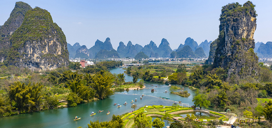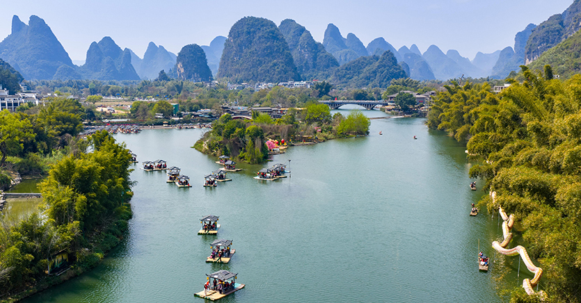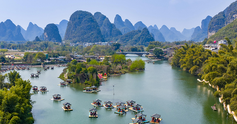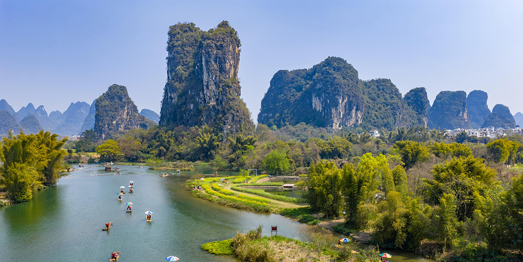 春风一拂,桂林便把千年水墨铺成了人间美景。 漓江泛着翡翠般的碧波,峰林披上新绿,竹筏轻摇,划破满江水光。 河畔花儿漫野点缀江岸,山影入水,水映山青,一步一景皆是诗。 不必寻角度,不用加滤镜,随手一拍就是壁纸。 舟行碧波上,人在画中游,原来课本里的仙境,春天真的照进了现实。 这般山水,温柔又惊艳,美得不像话,也让人舍不得离开。