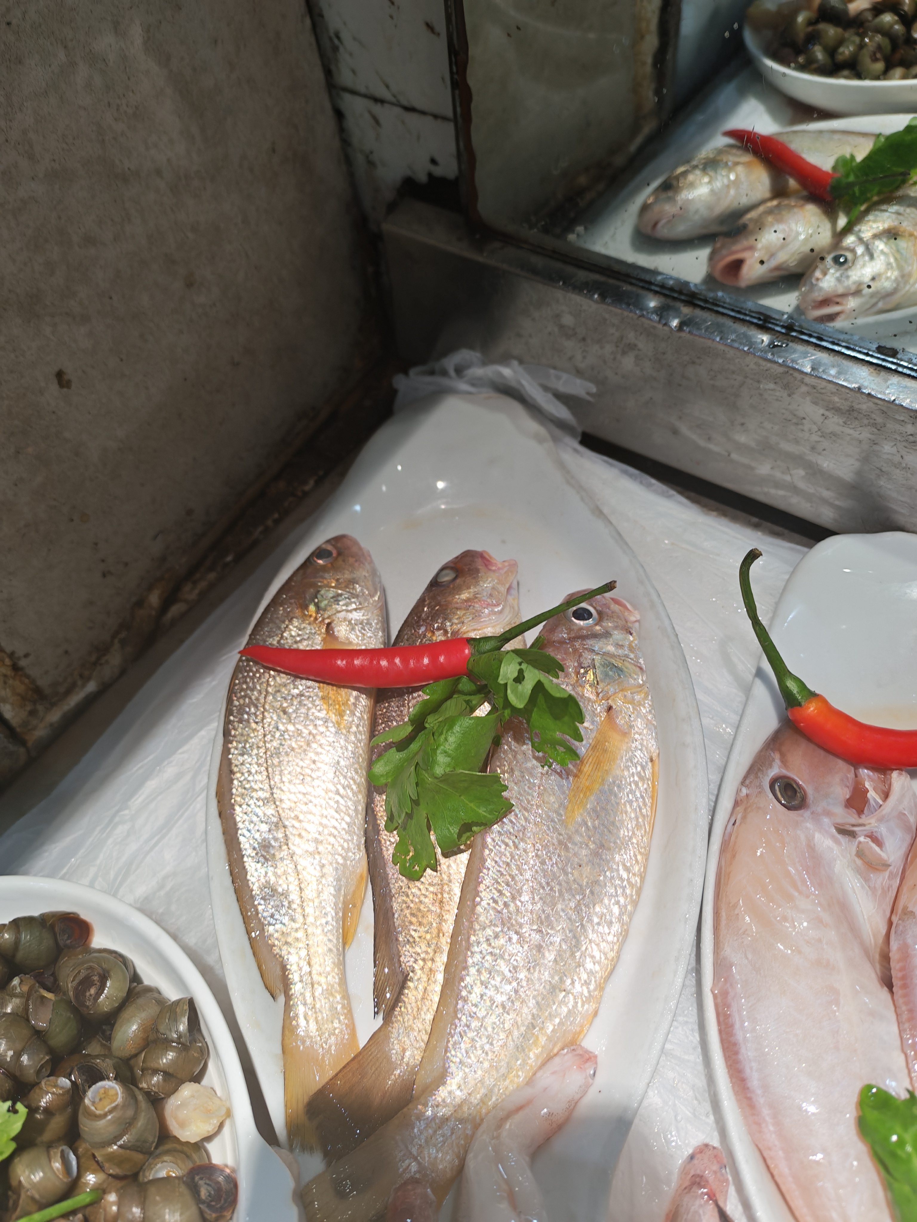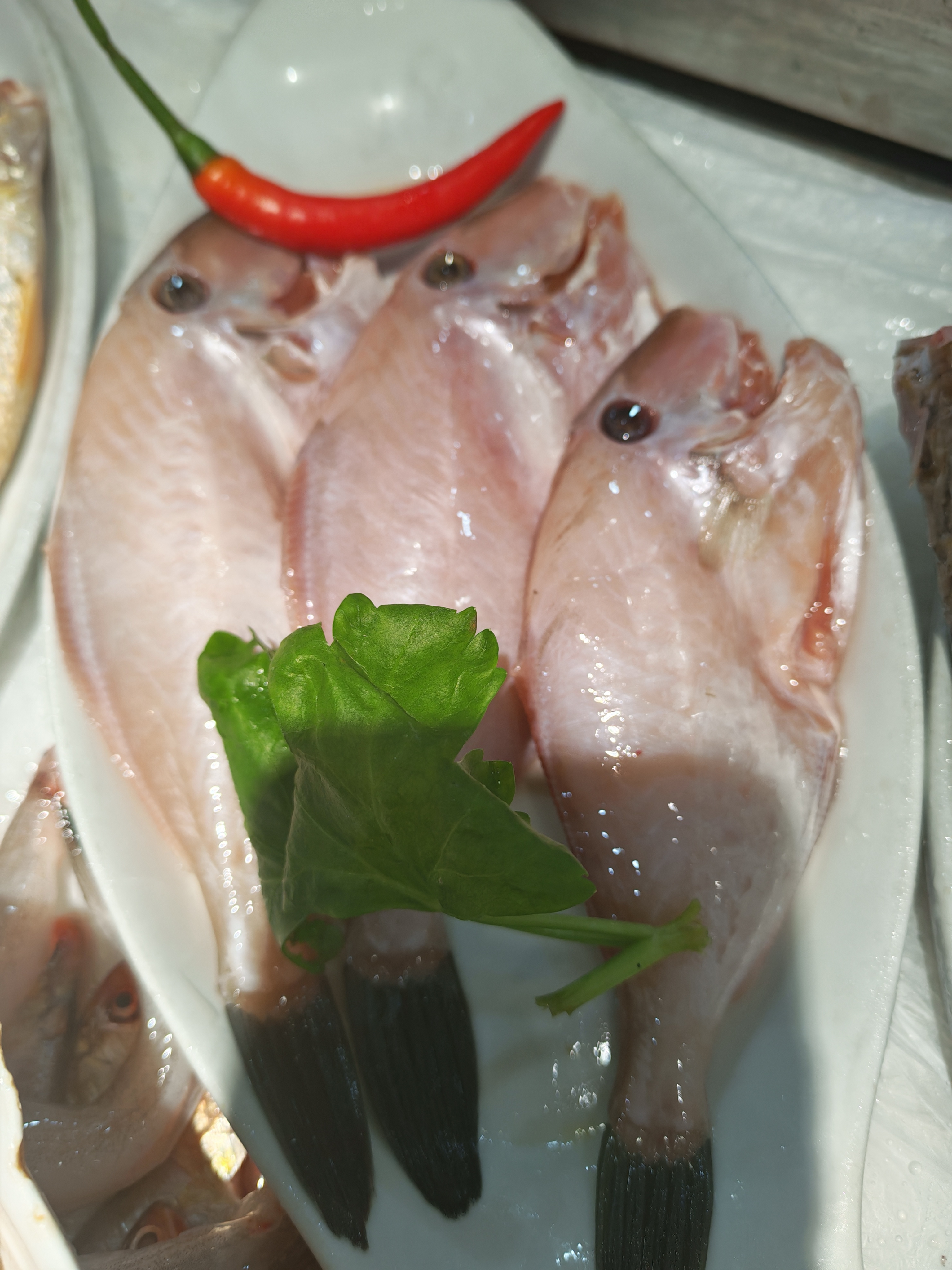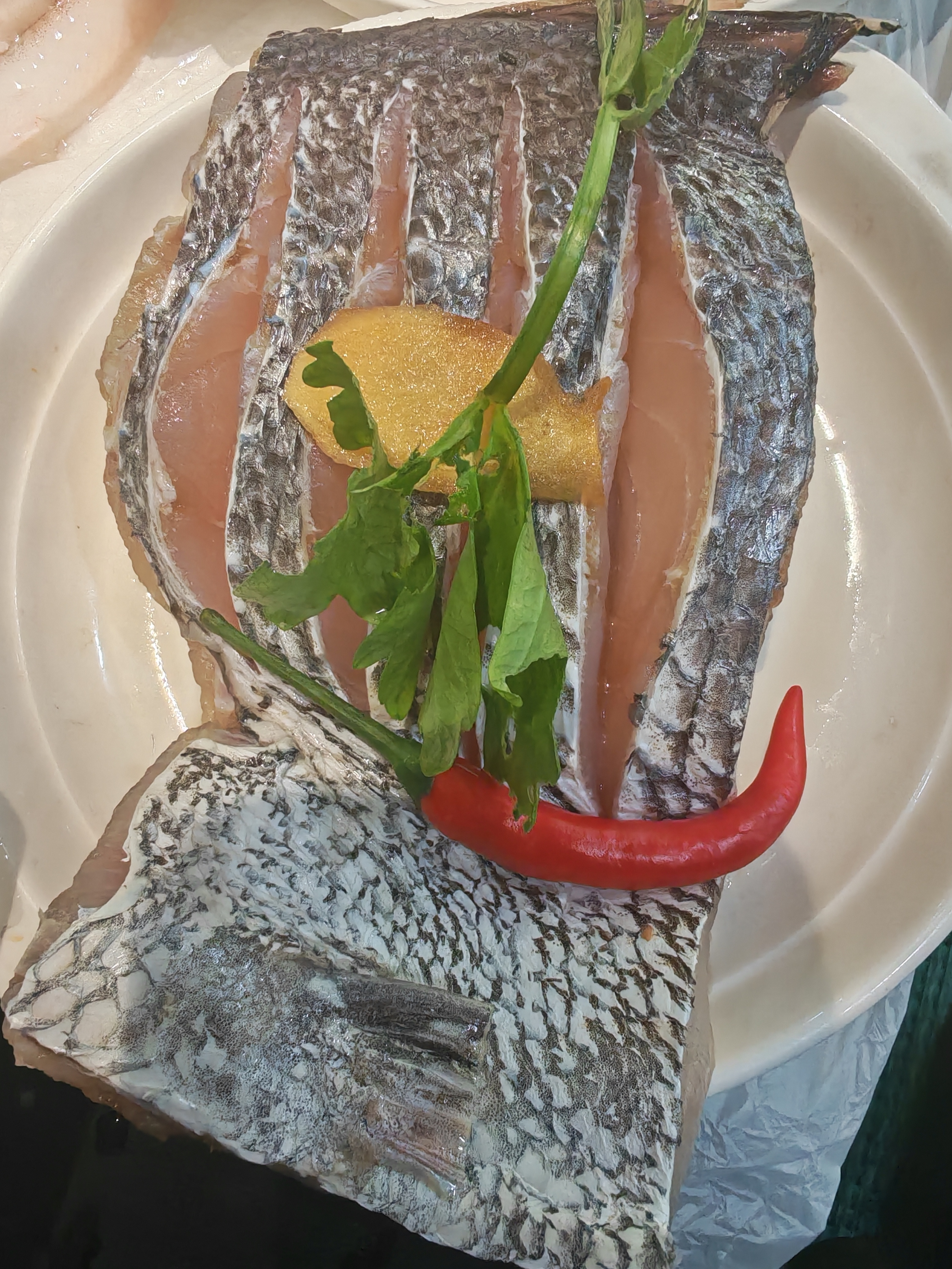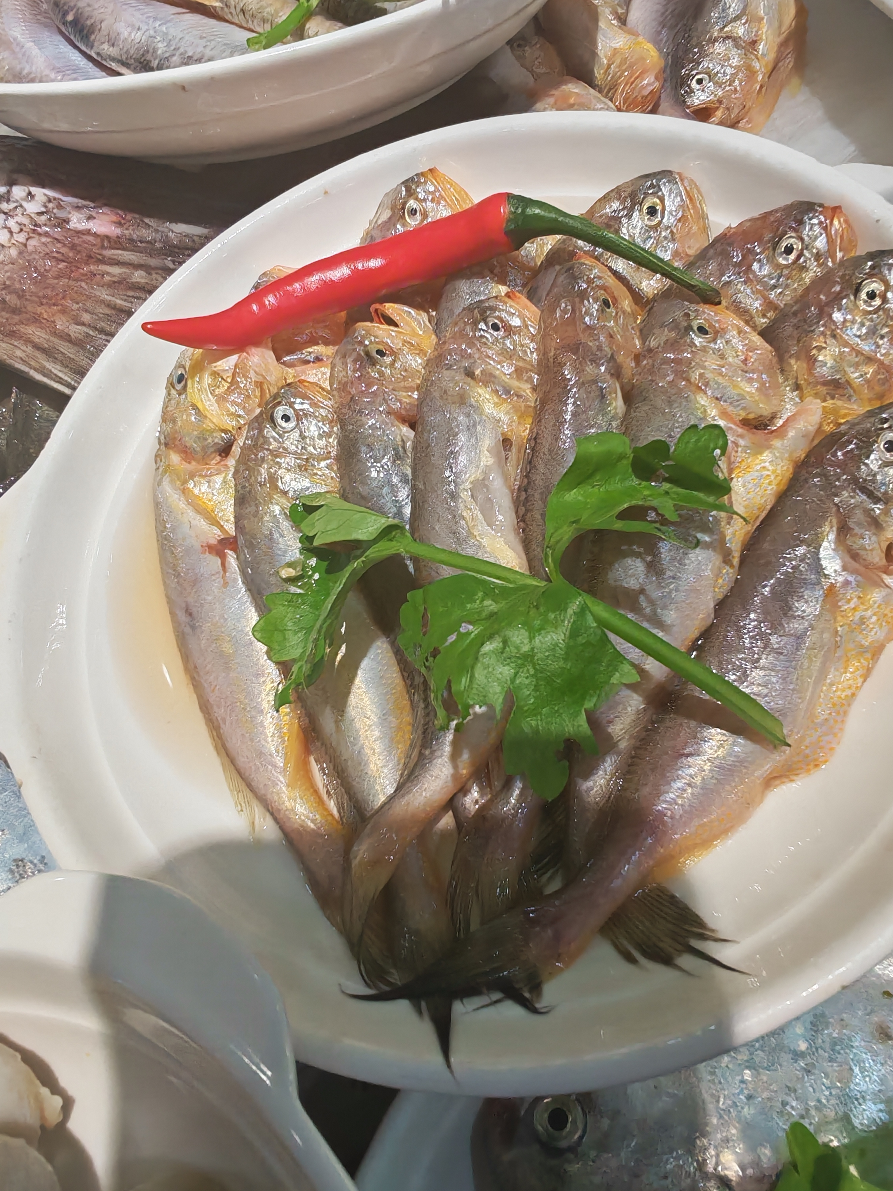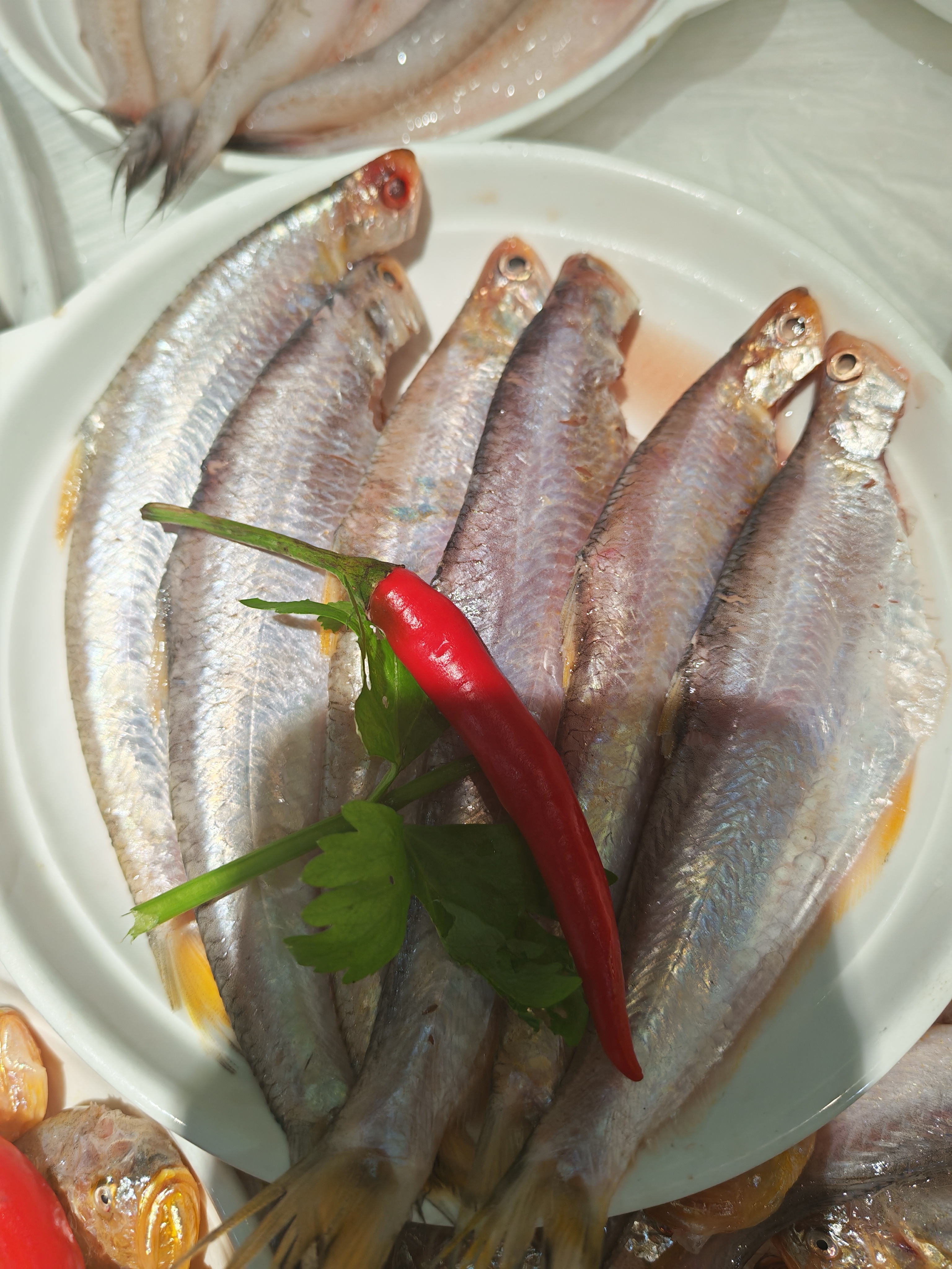 满盘海味赴春日,银鳞映着天光,红辣缀着鲜气。 梅鱼的嫩、鲳鱼的鲜、马鲛的肥,每一条海鱼都带着东海的潮润。红椒点色,芹香提味,把海边春日的鲜灵,都码进这一方白盘里。