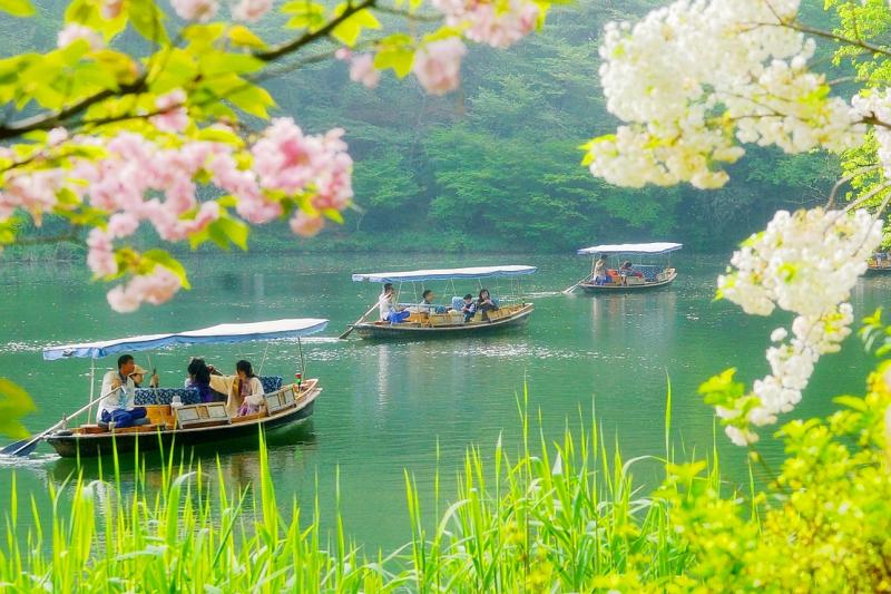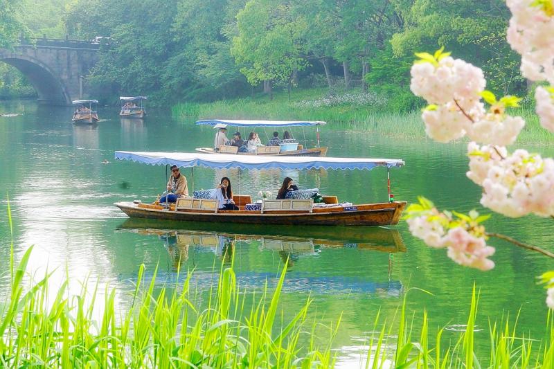#春拍大赛#悠闲赏春乌龟潭——晨游乌龟潭,山清水秀,春风拂面,樱花盛开,溪水潺潺。平时幽静的景区来了不少游客,他们悠闲地在此游玩,荡舟、拍照、赏景、休闲,好舒适哦。摄于4月7日。