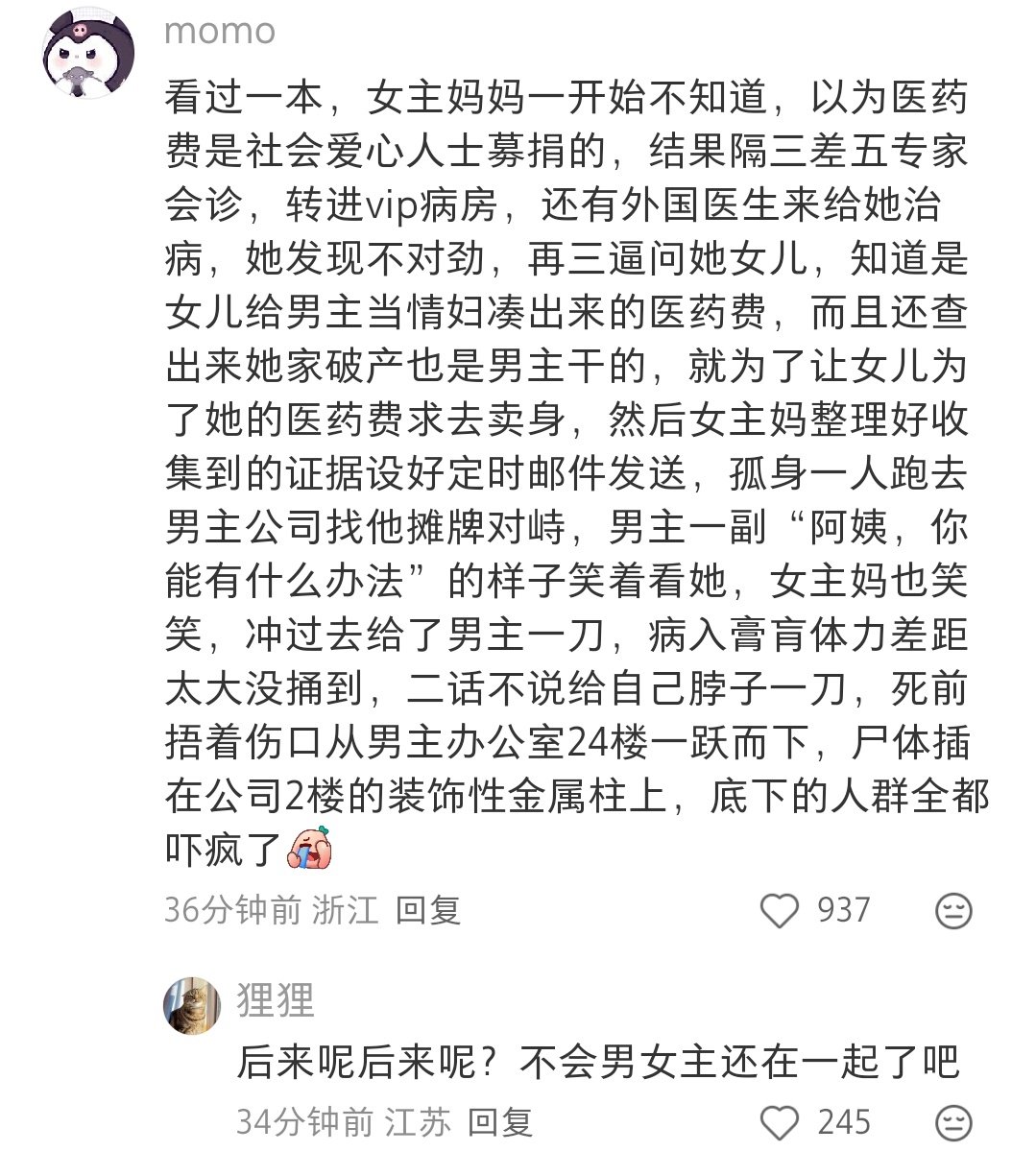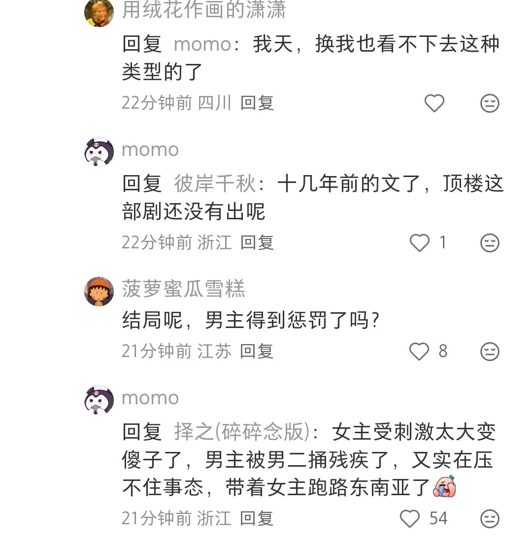 这个帖子评论里说的这本小说,剧情太雷霆了[傻眼]