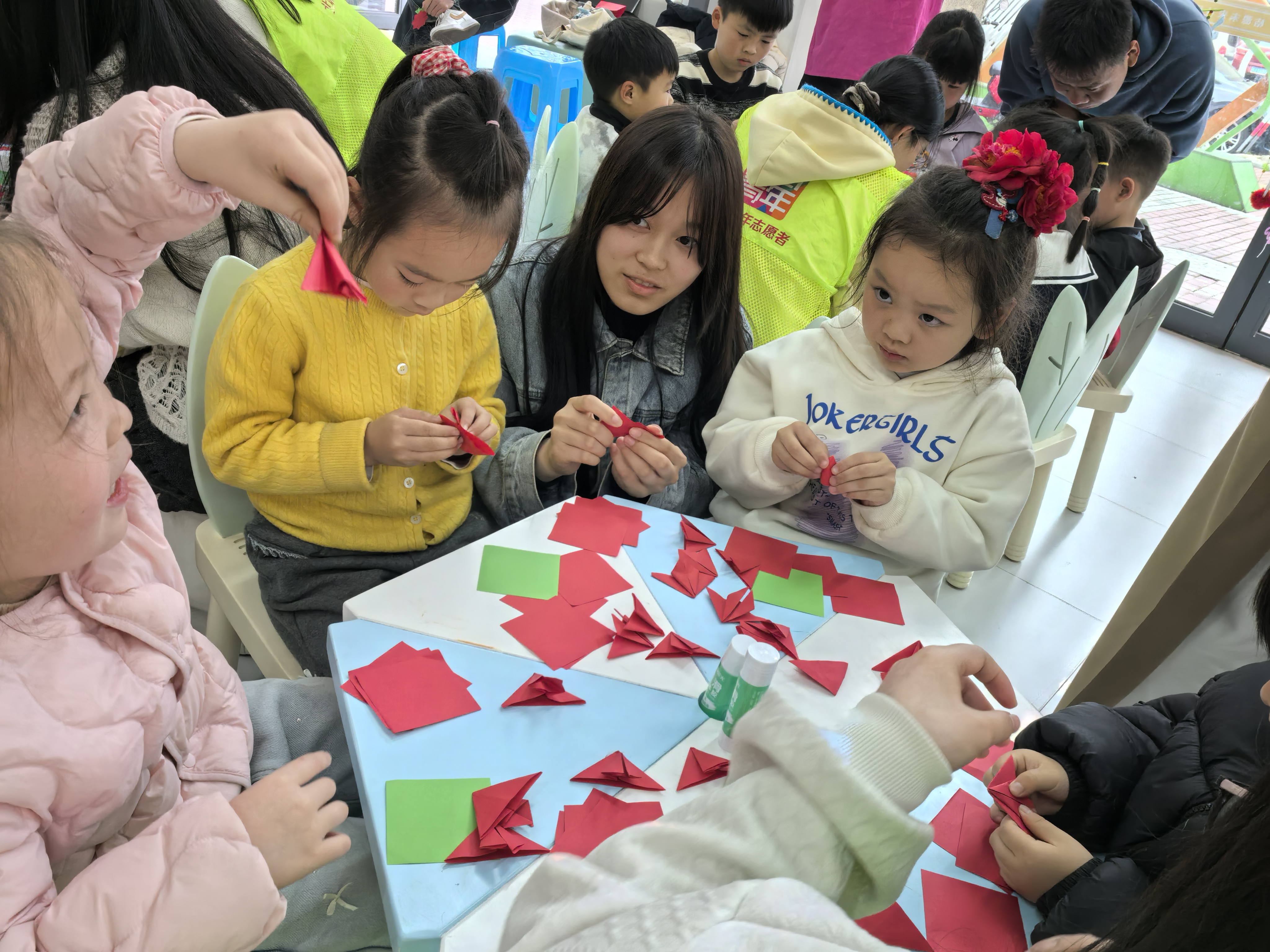|指尖传礼润童心 红花映春践文明 春风拂面,繁花缀径,恰逢践行“浙风十礼”的好时节。为让孩子们亲近自然、感受美好,锻炼动手能力,北城街道桔源社区开展“指尖绽红花 童心向阳光”手工纸艺课,让孩子们在创作中留住春色,在礼仪浸润中成长。 活动现场,志愿者与孩子们围坐相伴,桌上整齐摆放着红、绿彩纸、剪刀和胶水。志愿者化身“礼仪导师”,耐心示范折纸、剪纸、粘贴步骤,手把手引导孩子们掌握技巧,培养专注细致、互帮互助的习惯。孩子们全神贯注模仿,指尖在彩纸间穿梭,一朵朵娇艳的小红花陆续成型。“我要把小红花送给妈妈和老师,感谢她们的照顾!”稚嫩的话语彰显“亲有礼”的温情,小红花也承载着爱国敬善的心意,呼应“敬有礼”要求。 活动尾声,孩子们捧着作品合影,笑脸与红花相映成趣。此次活动,既锻炼了孩子们的专注力与创造力,更将浙风十礼的种子播撒在童心,让文明有礼、感恩向善的品质生根发芽。
