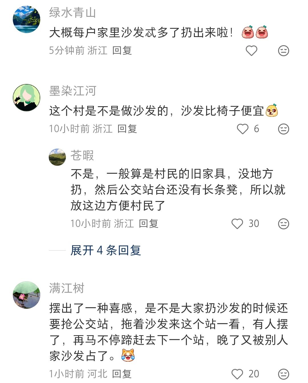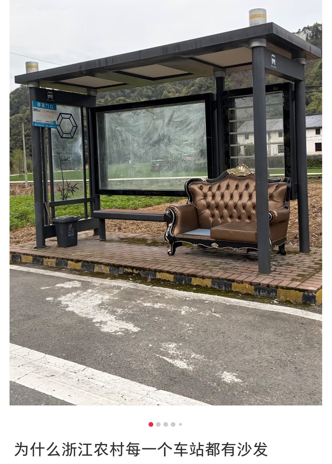浙江农村的公交站台为什么都有沙发[泪奔]评论区说是老百姓自发放的