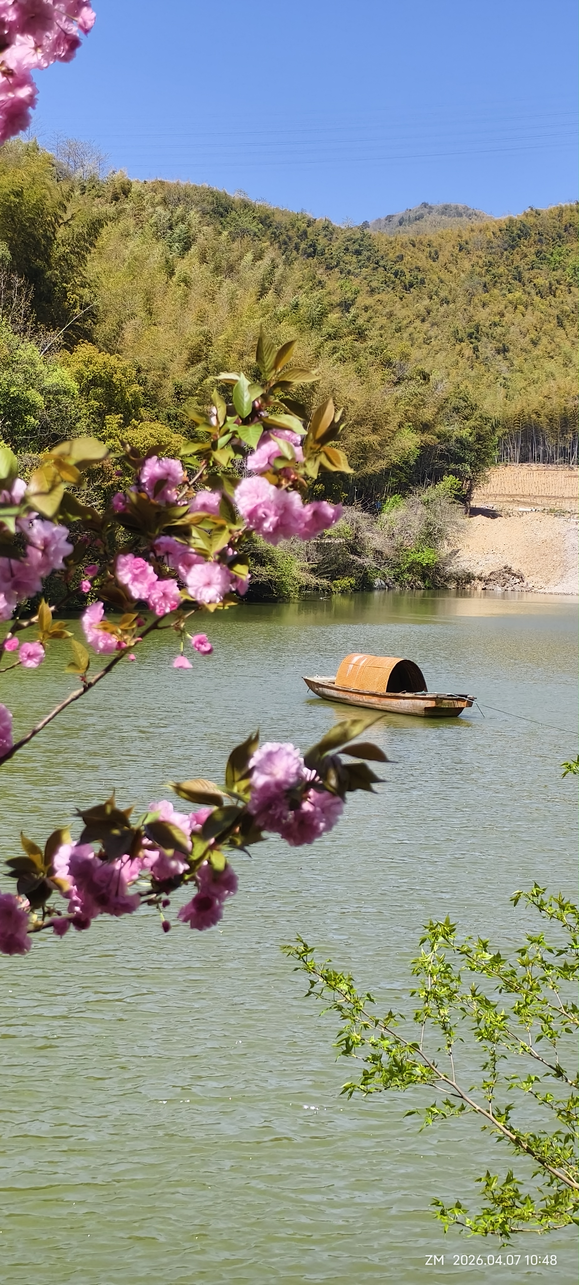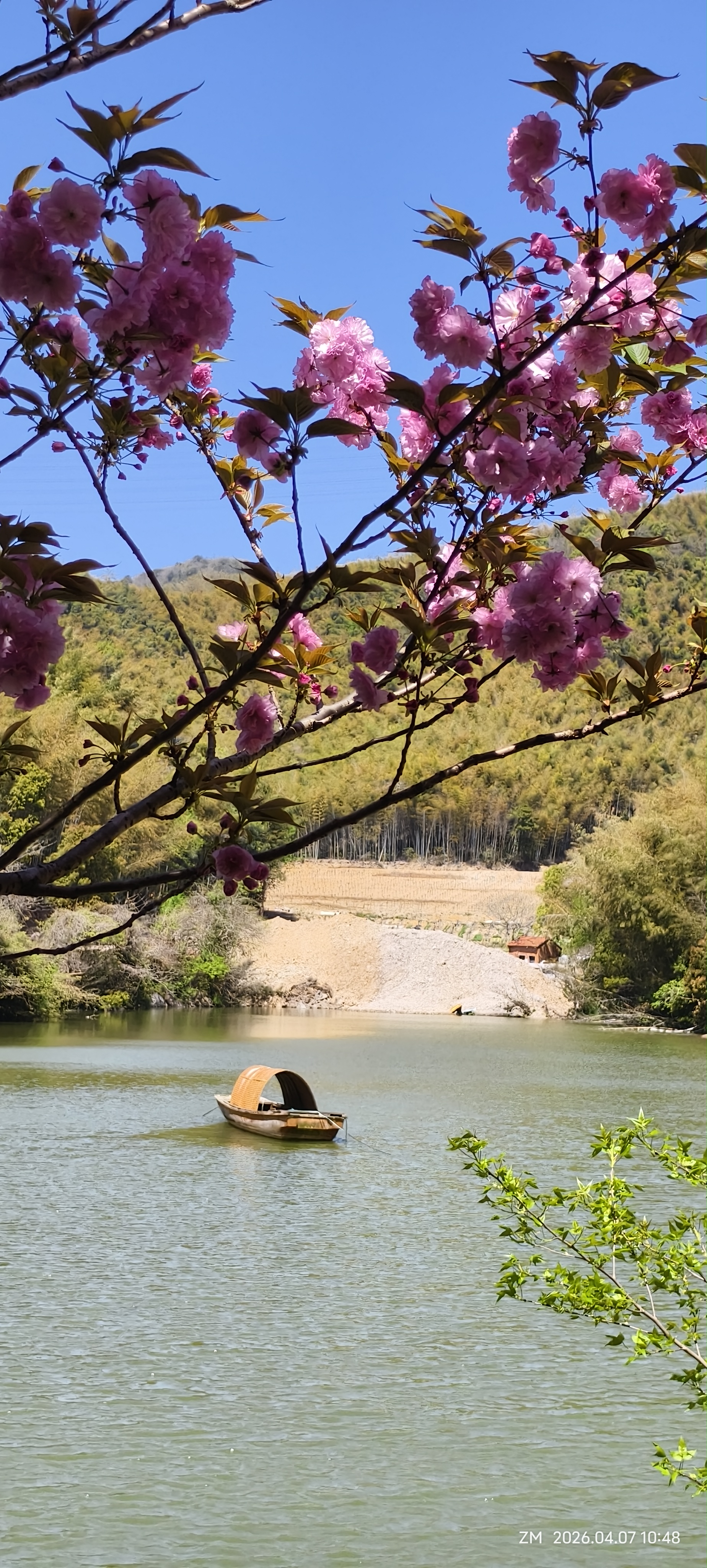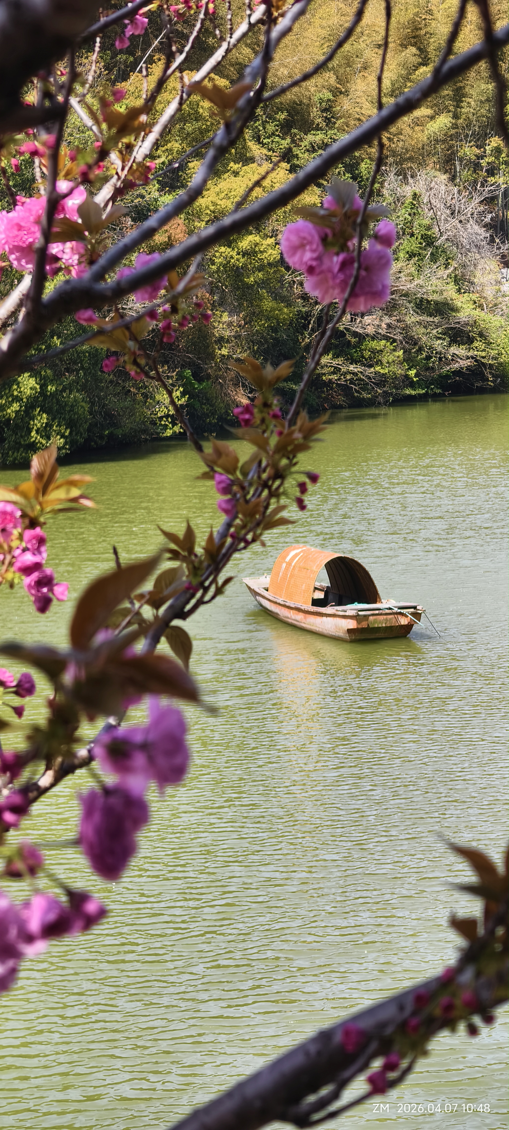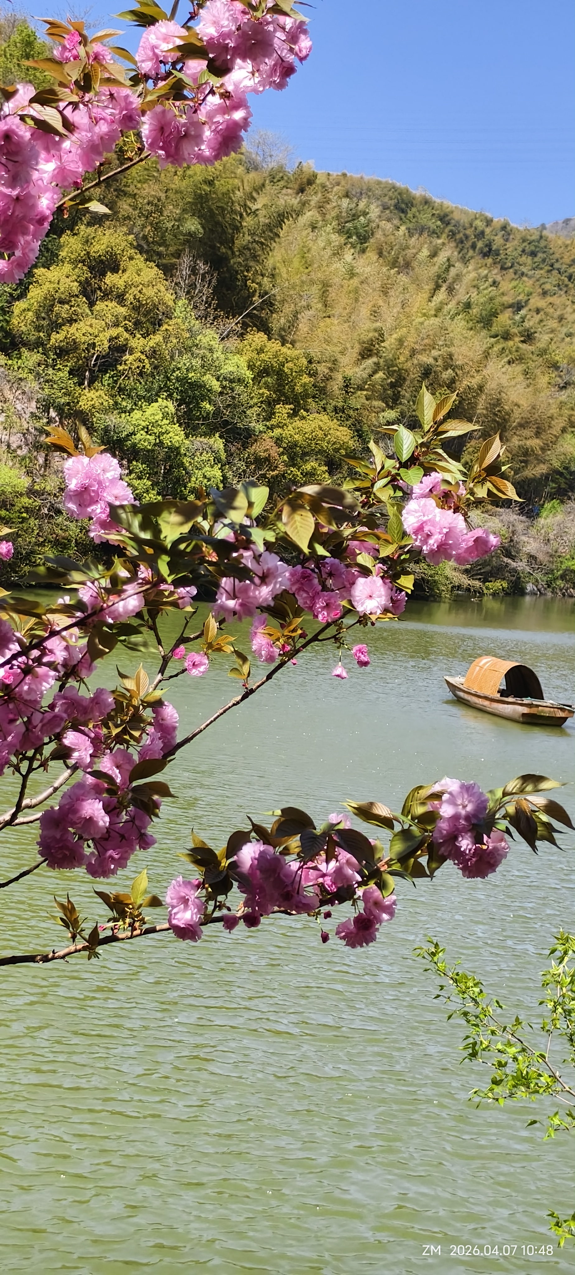 樱花纷飞,竹筏轻荡,蓝天绿植间,随手一拍都是江南春日限定款~