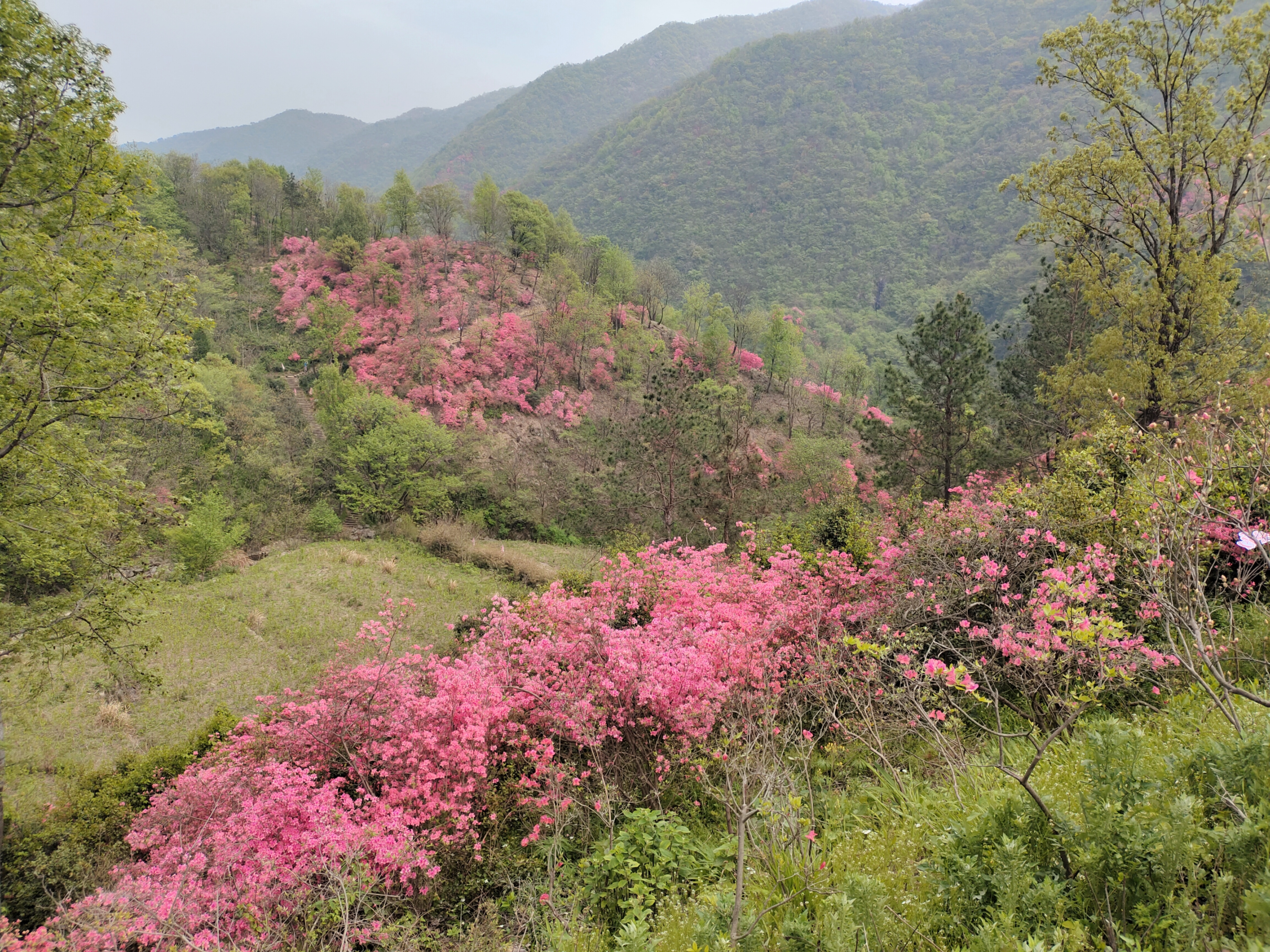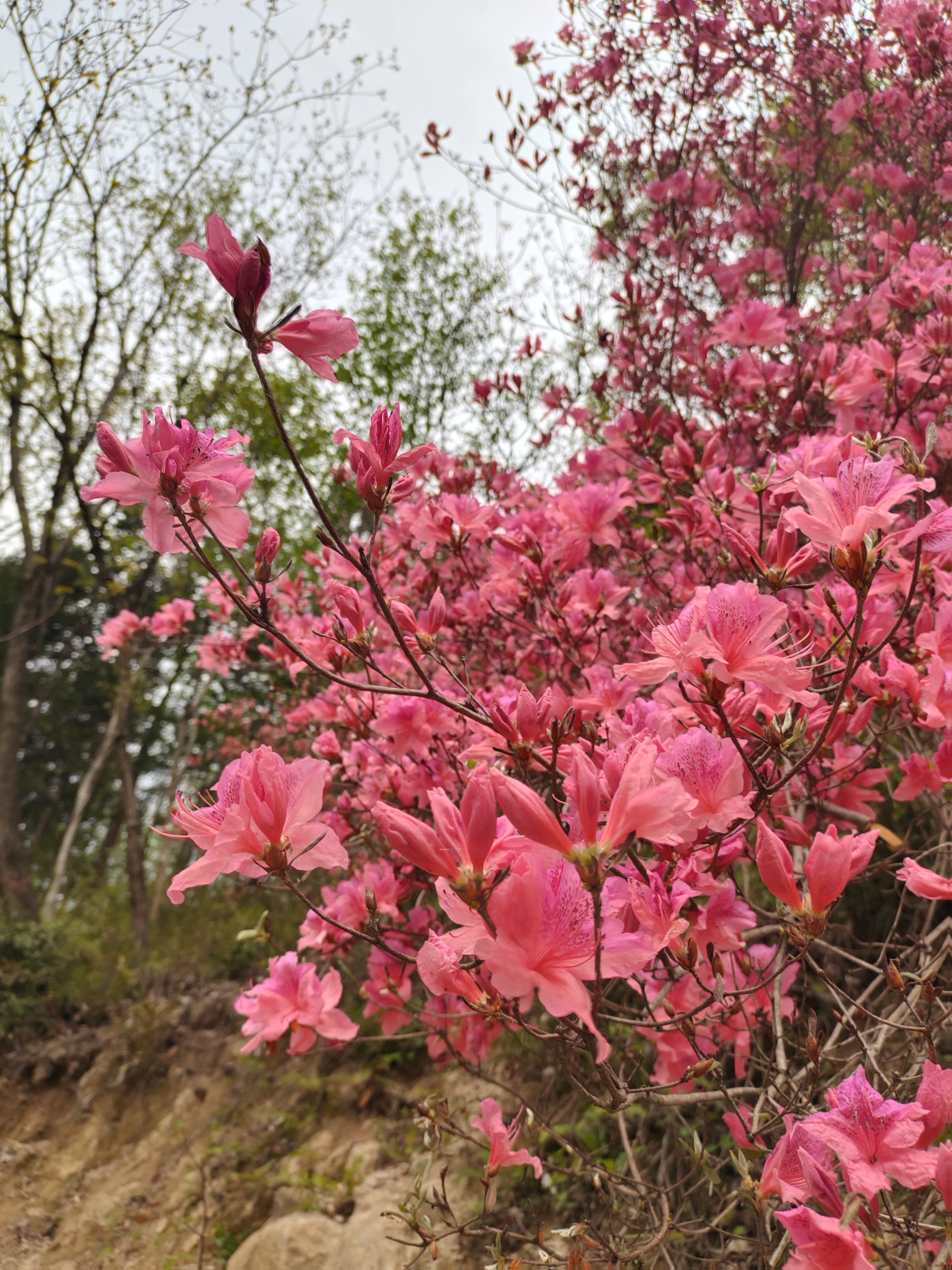 粉红杜鹃漫山开,枝头闹春不重样~山间小径转个弯,撞见一整个春天!🌸