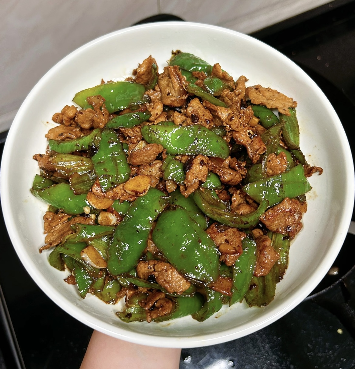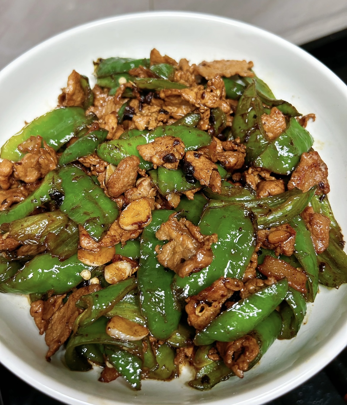 家庭版|小炒肉详解见图 每次去湖南菜馆都会点这道小炒肉,这种辣辣的,特别下饭。肉片炒的微焦,特别有烟火气,米饭不小心就会吃多了~