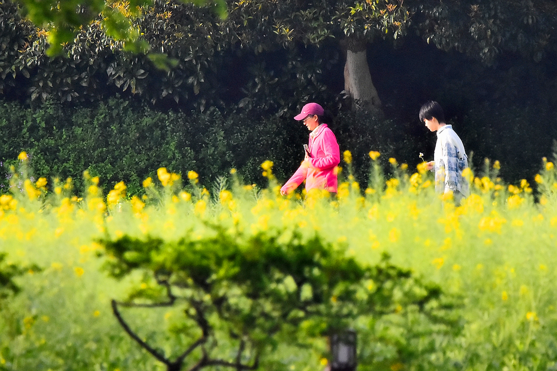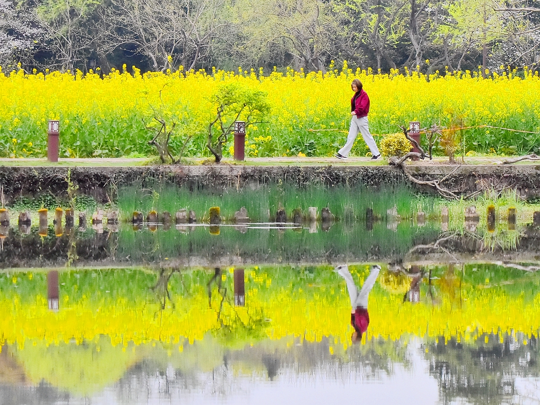 春赏油菜花——晨游八卦田,四处一片金黄, 春风吹来阵阵油菜花香。游客来了不少,他们扶着老人、牵着孩子,来郊外欣赏别样的春光,漫步、拍照、休闲、晨练,好惬意哦。摄于3月25日——4月5日。