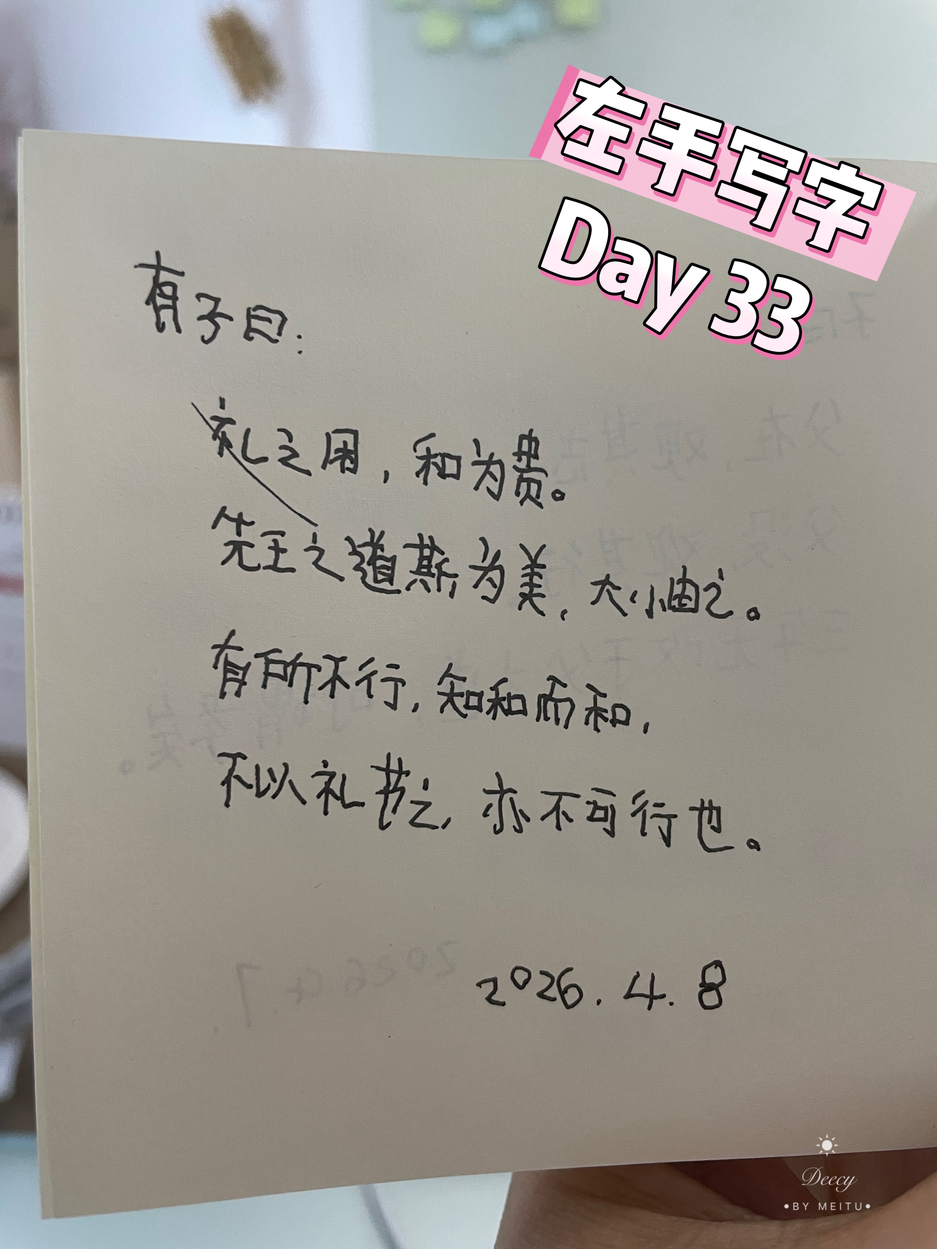 ✍️左手写字第33天 有子曰:礼之用,和为贵。先王之道斯为美,大小由之。有所不行,知和而和。不以礼节之,亦不可行也。