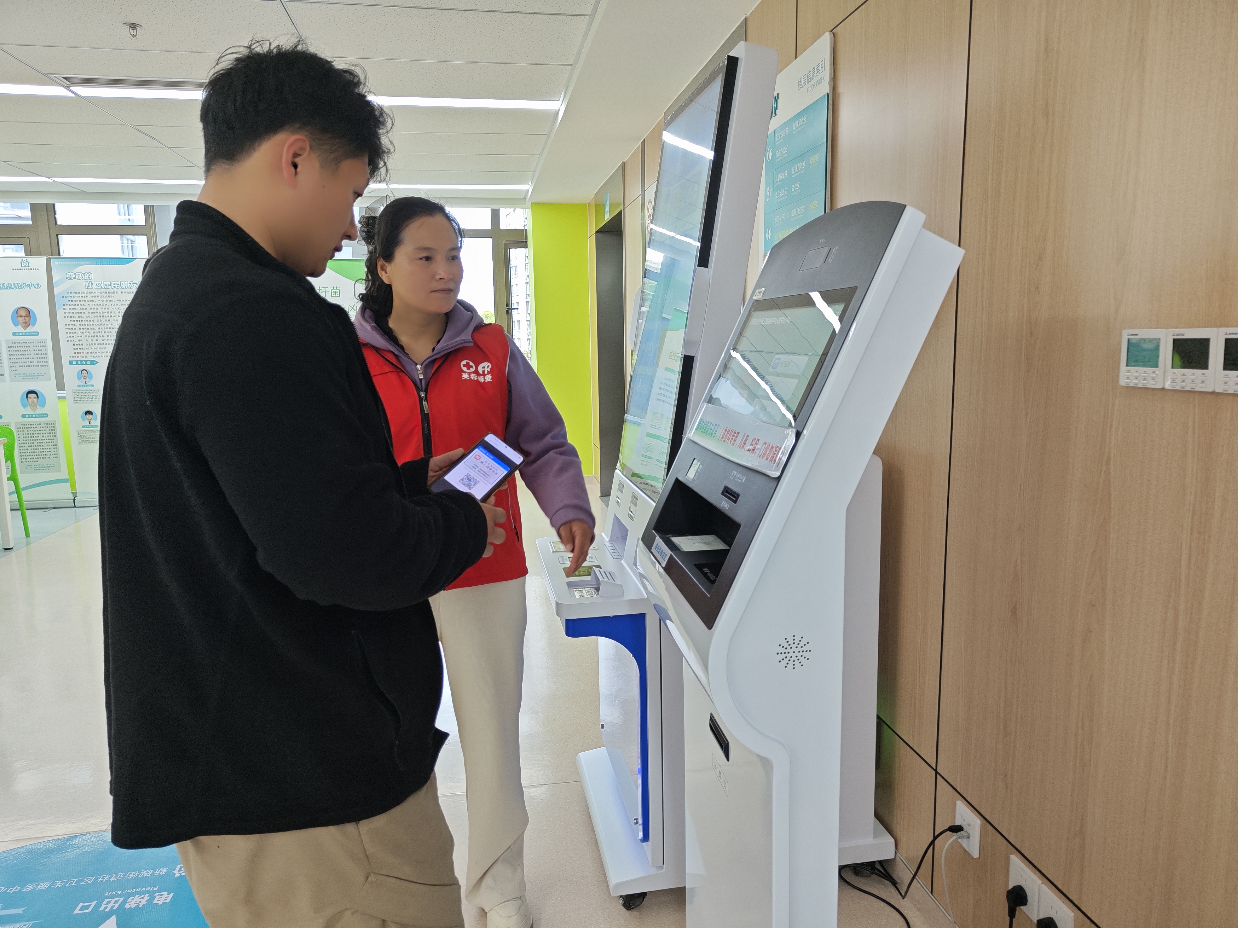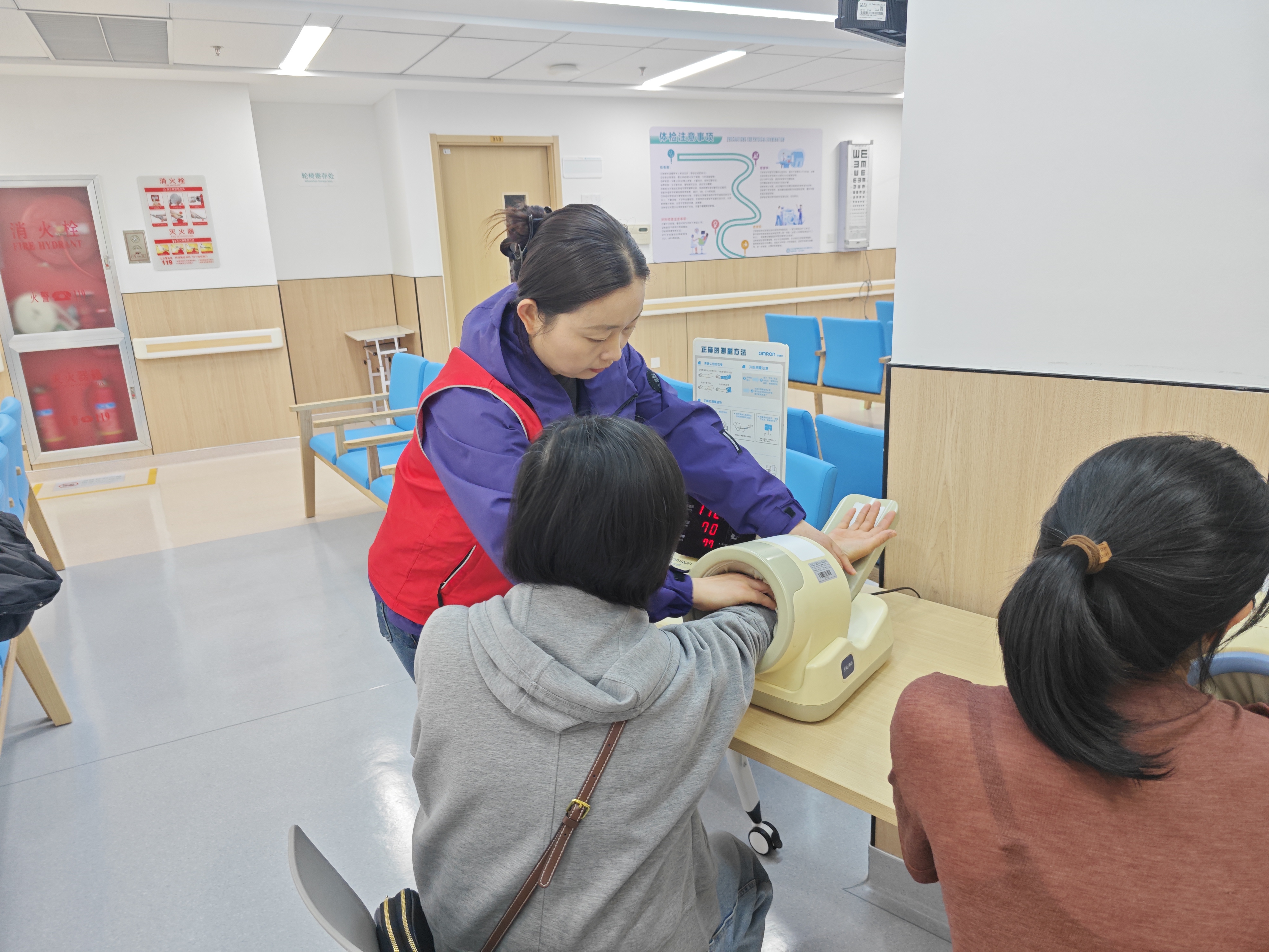 第一期新碶城关中心导医服务 第一期 北仑博爱安排三名志愿者进行服务,为体检老人和儿保检查的新生志愿服务
