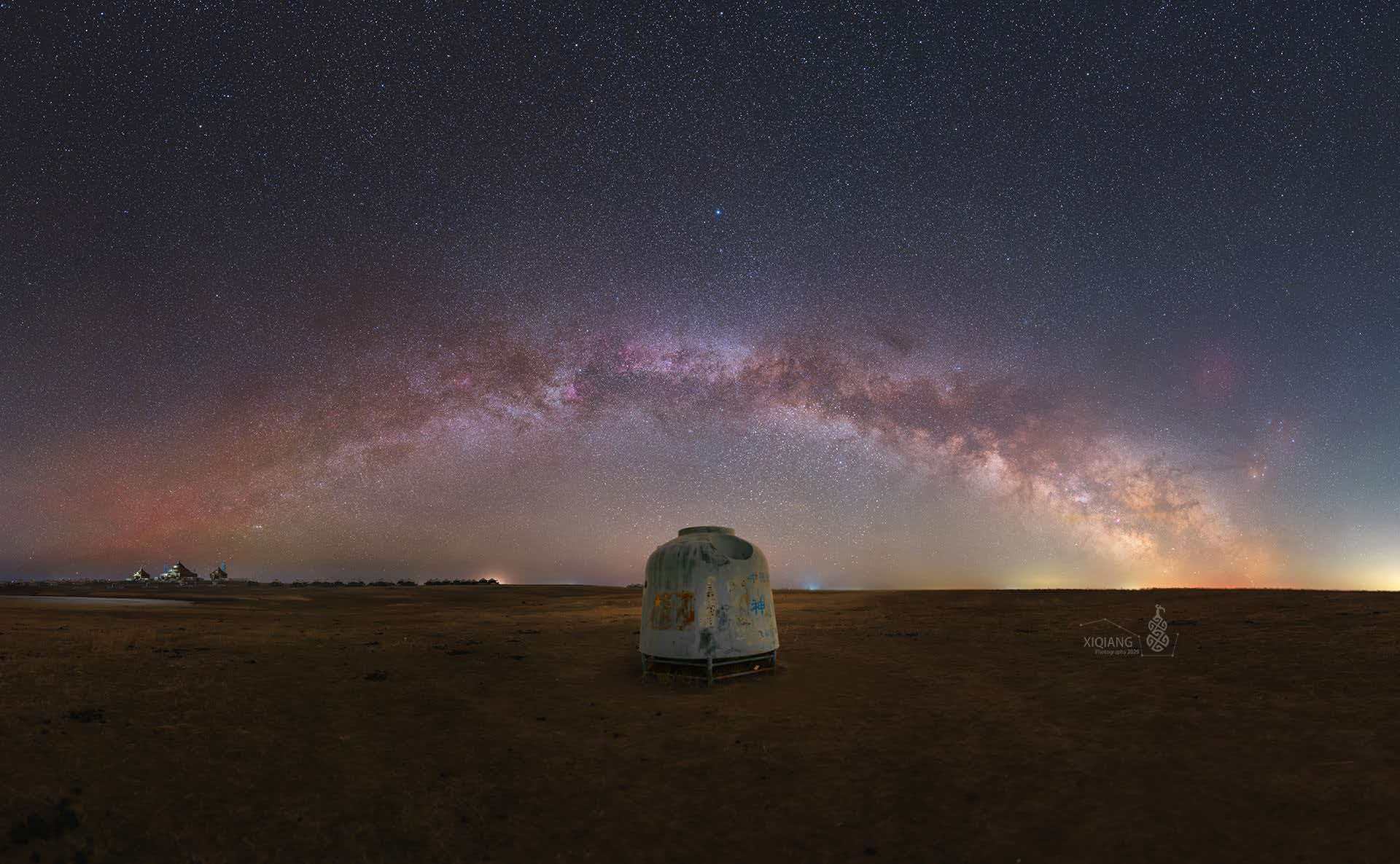 《归航》 草原的风停在暮色里, 把最后一缕霞光揉进地平线。 天便黑了下来, 银河从墨色穹顶缓缓舒展, 像一条被星光染透的缎带, 横亘在茫茫旷野之上。 那枚白色的舱体静静立着, 带着曾穿越大气层的斑驳痕迹, 像一颗被遗落的星子, 又像一艘等待归航的船。 它曾载着人类的向往奔赴星海, 如今又落回大地的怀抱, 在万籁俱寂中,与漫天星河遥遥相望。 风掠过草尖,带着远古的回响, 星光落满舱体,温柔而明亮。 原来宇宙的浪漫从不是遥不可及, 而是当你抬头,就能看见 亿万年前的光,正落在你眼前。