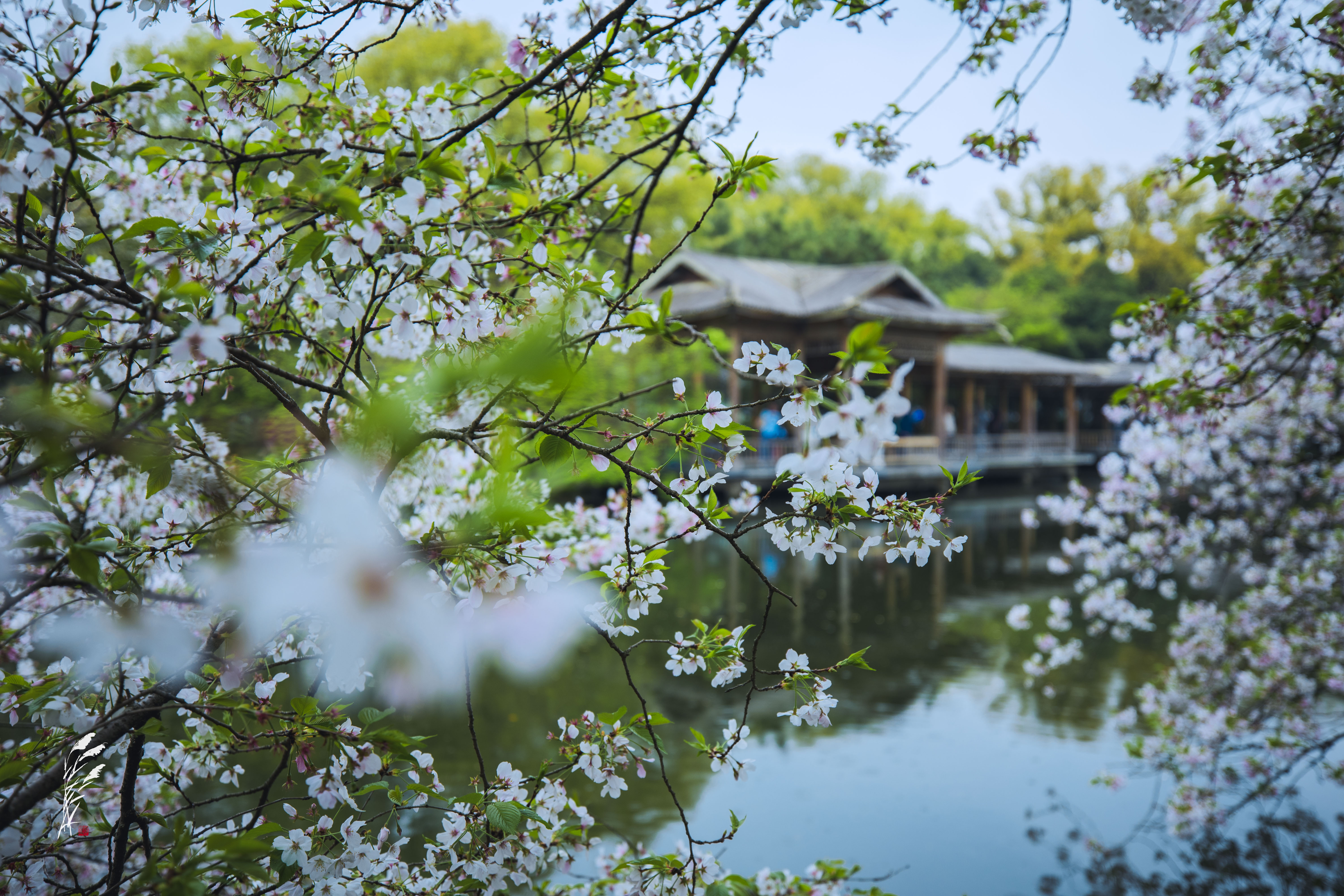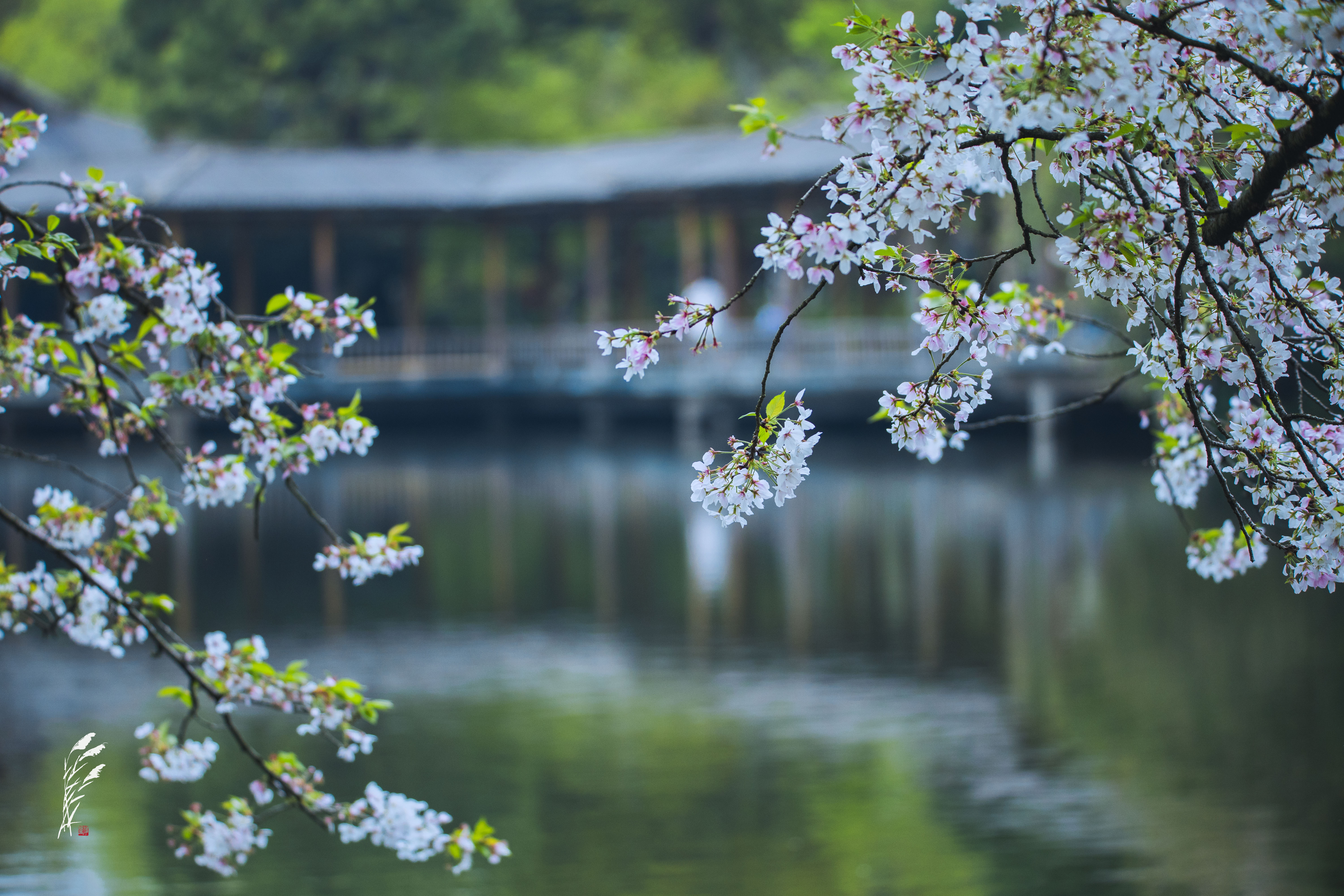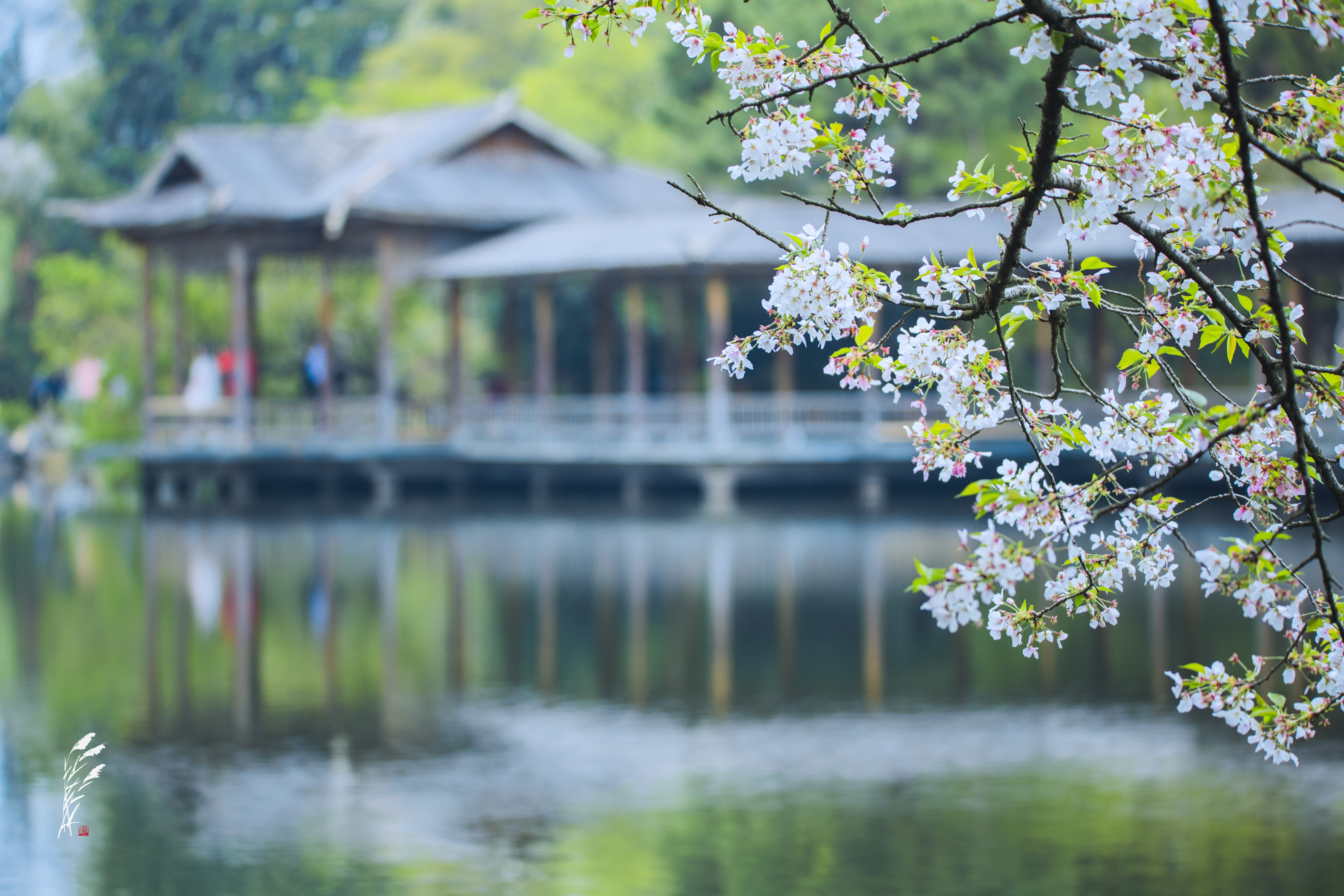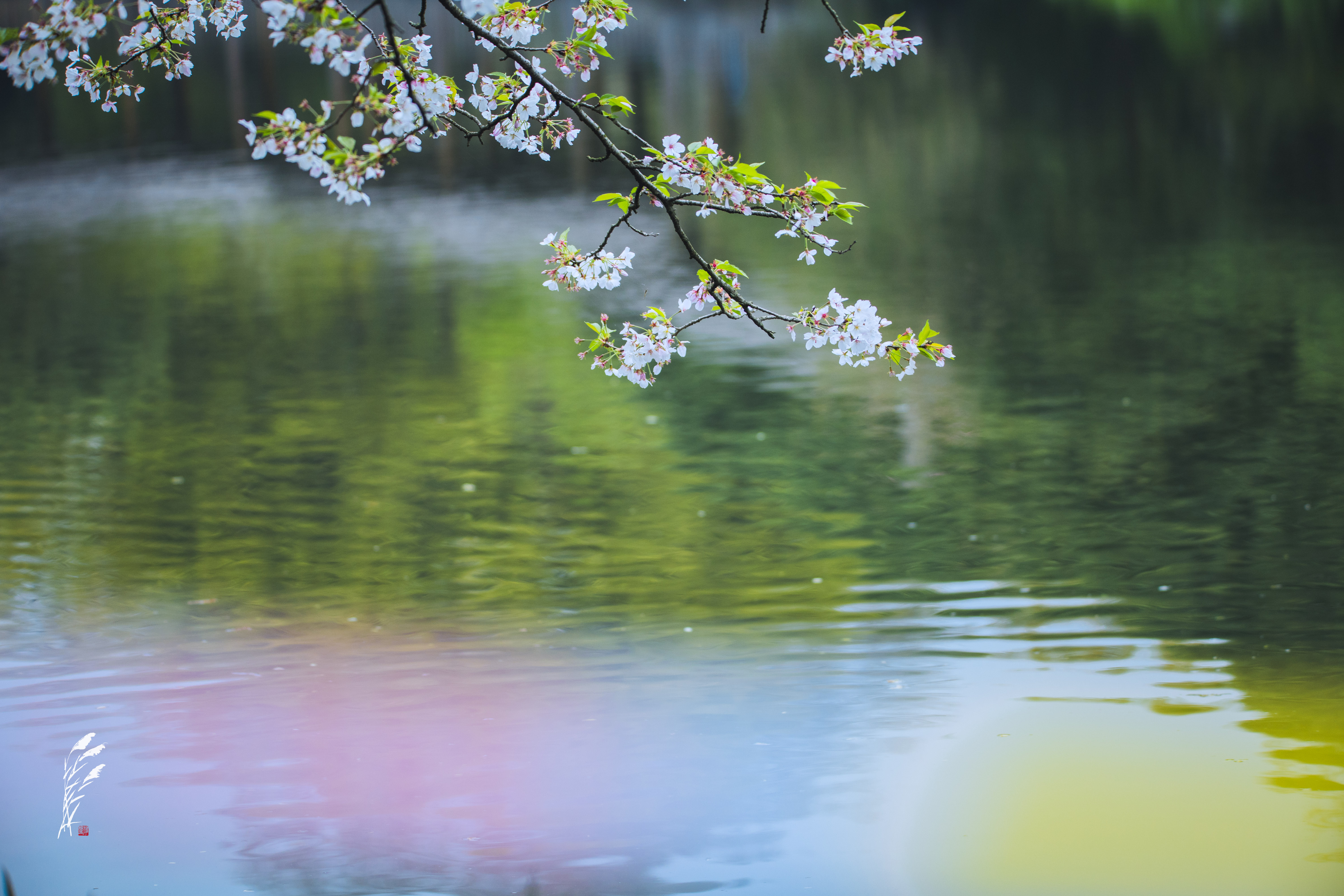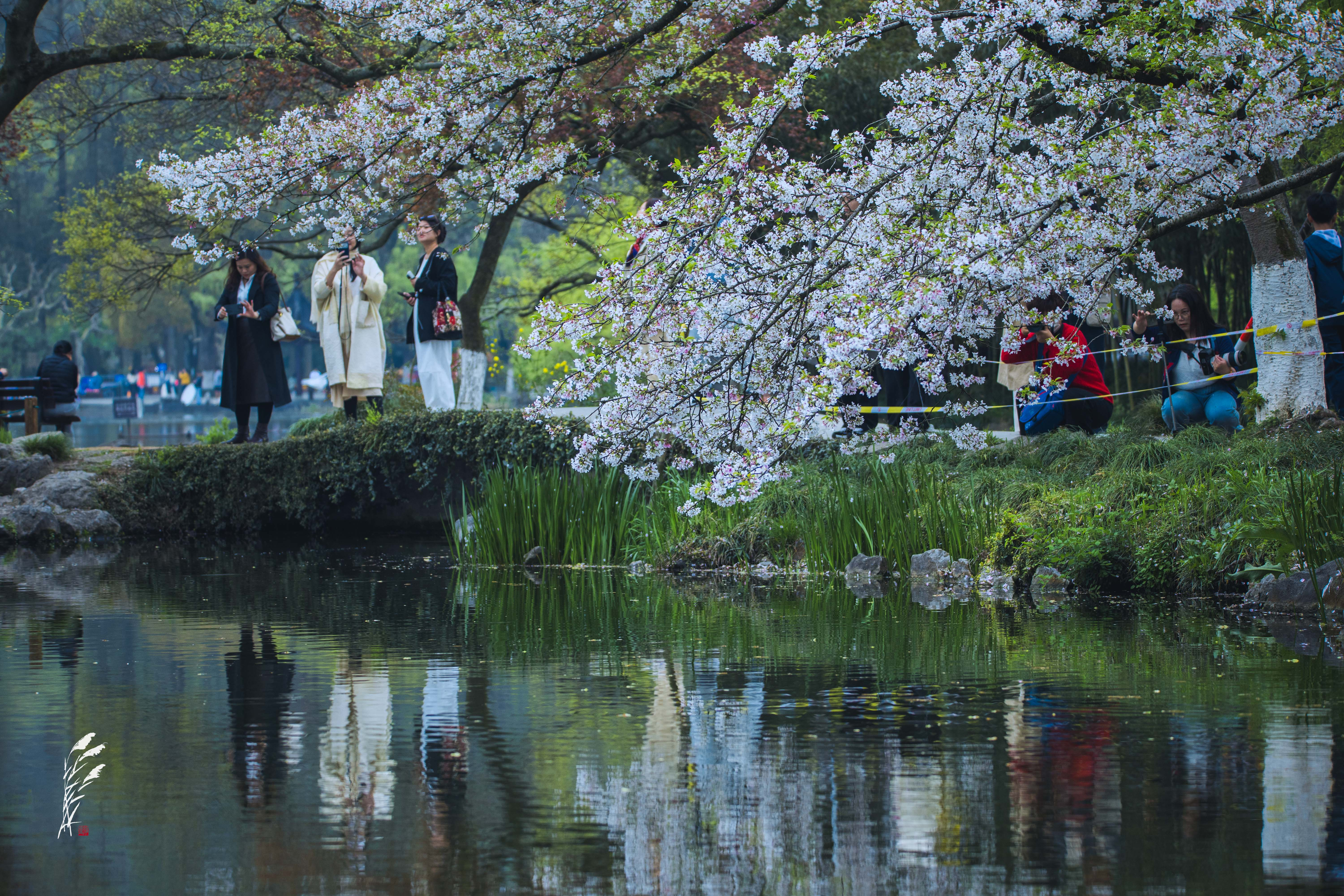 樱雨落香径,春波戏游鱼。 花港观鱼,雨意盈盈。 一湖烟雨朦胧,万般温柔皆在水中。