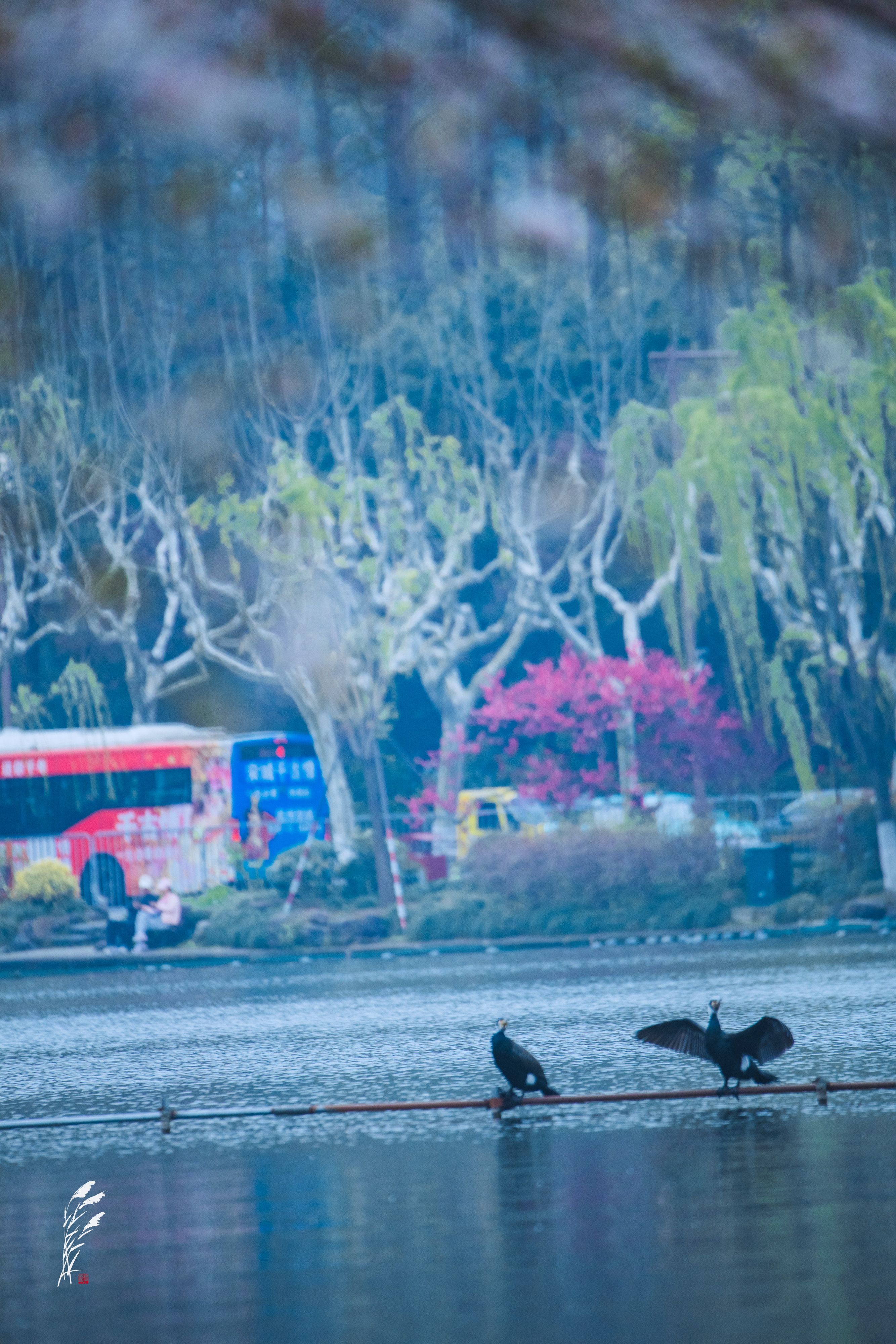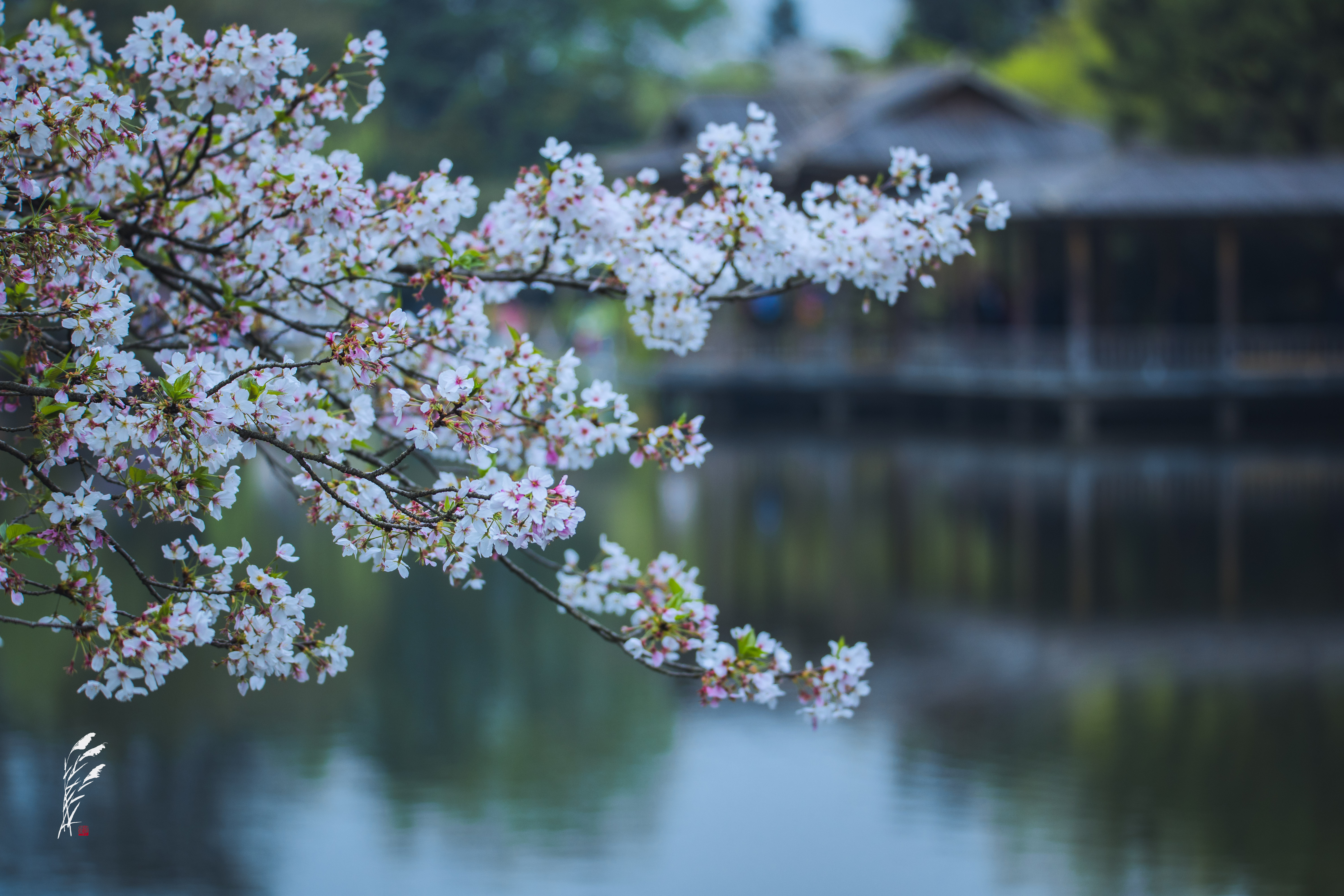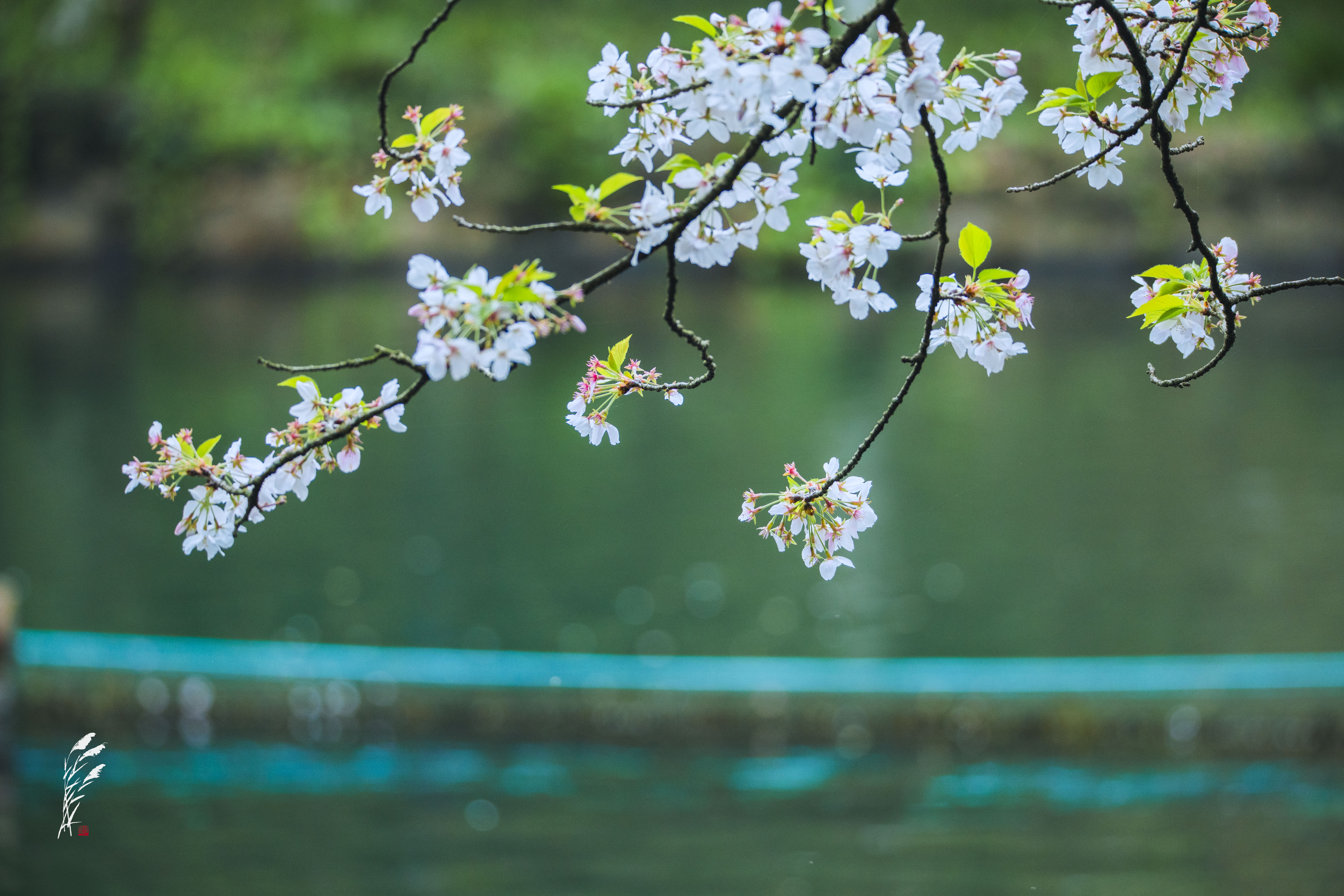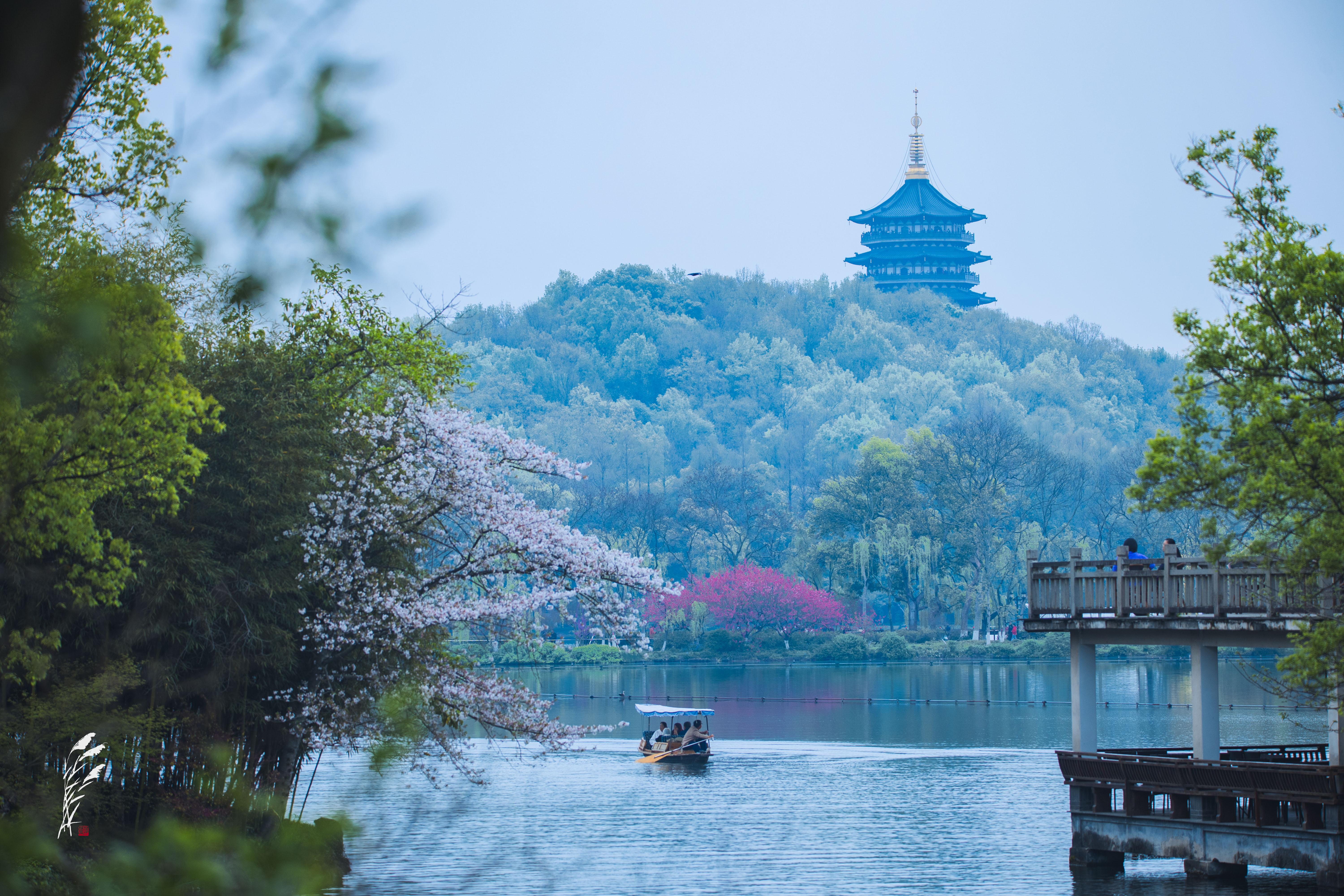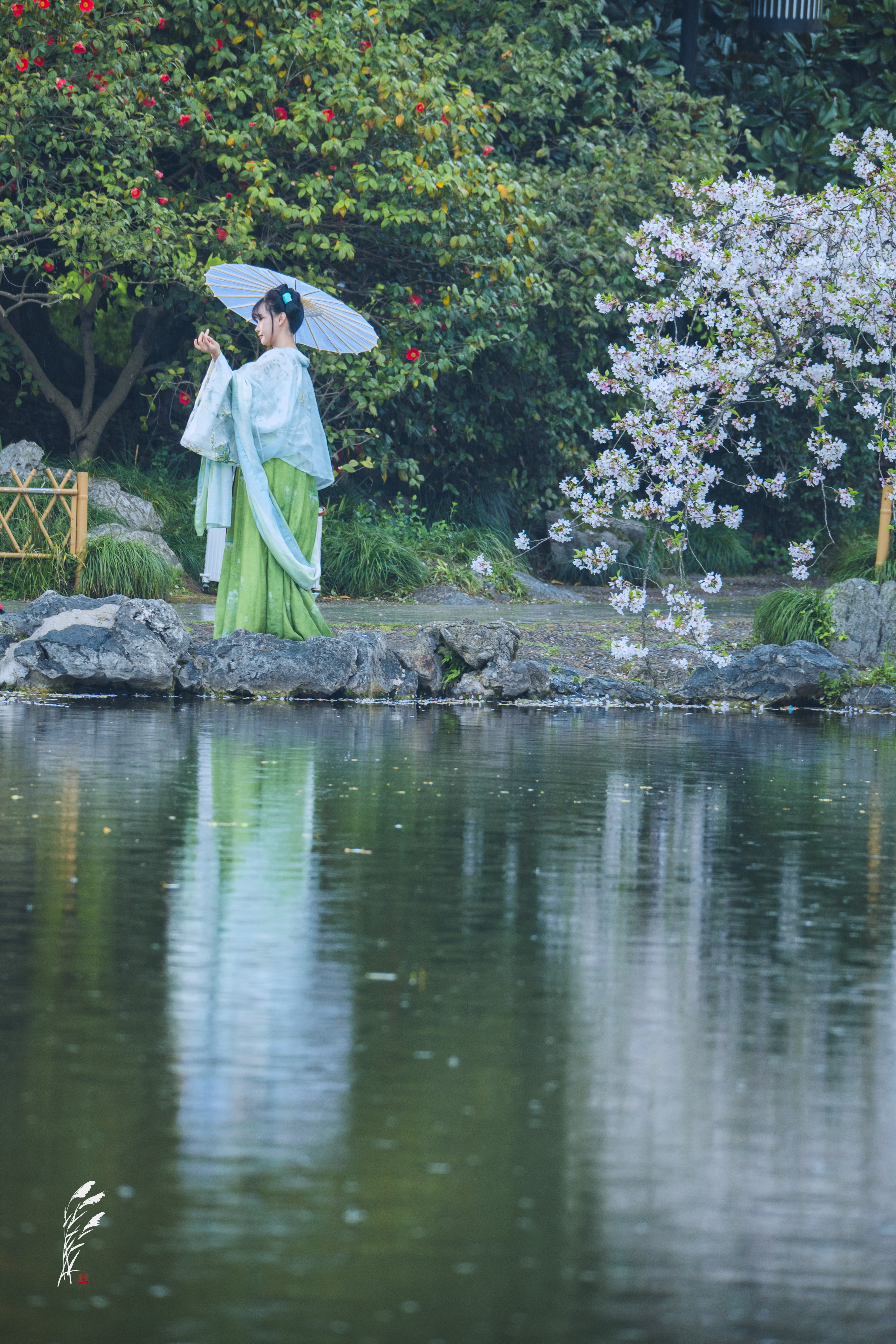 樱雨落香径,春波戏游鱼。 花港观鱼,雨意盈盈。 一湖烟雨朦胧,万般温柔皆在水中。
