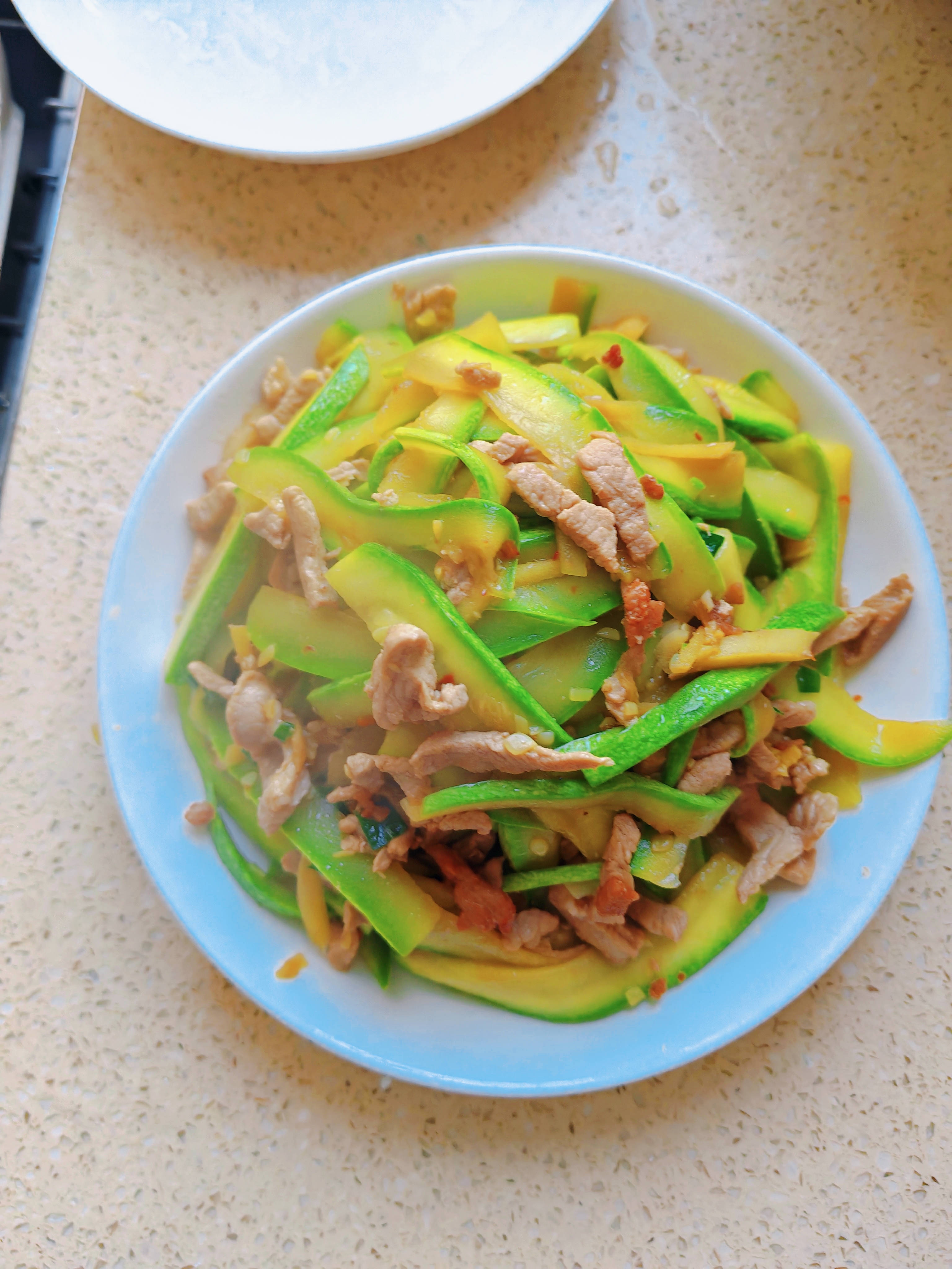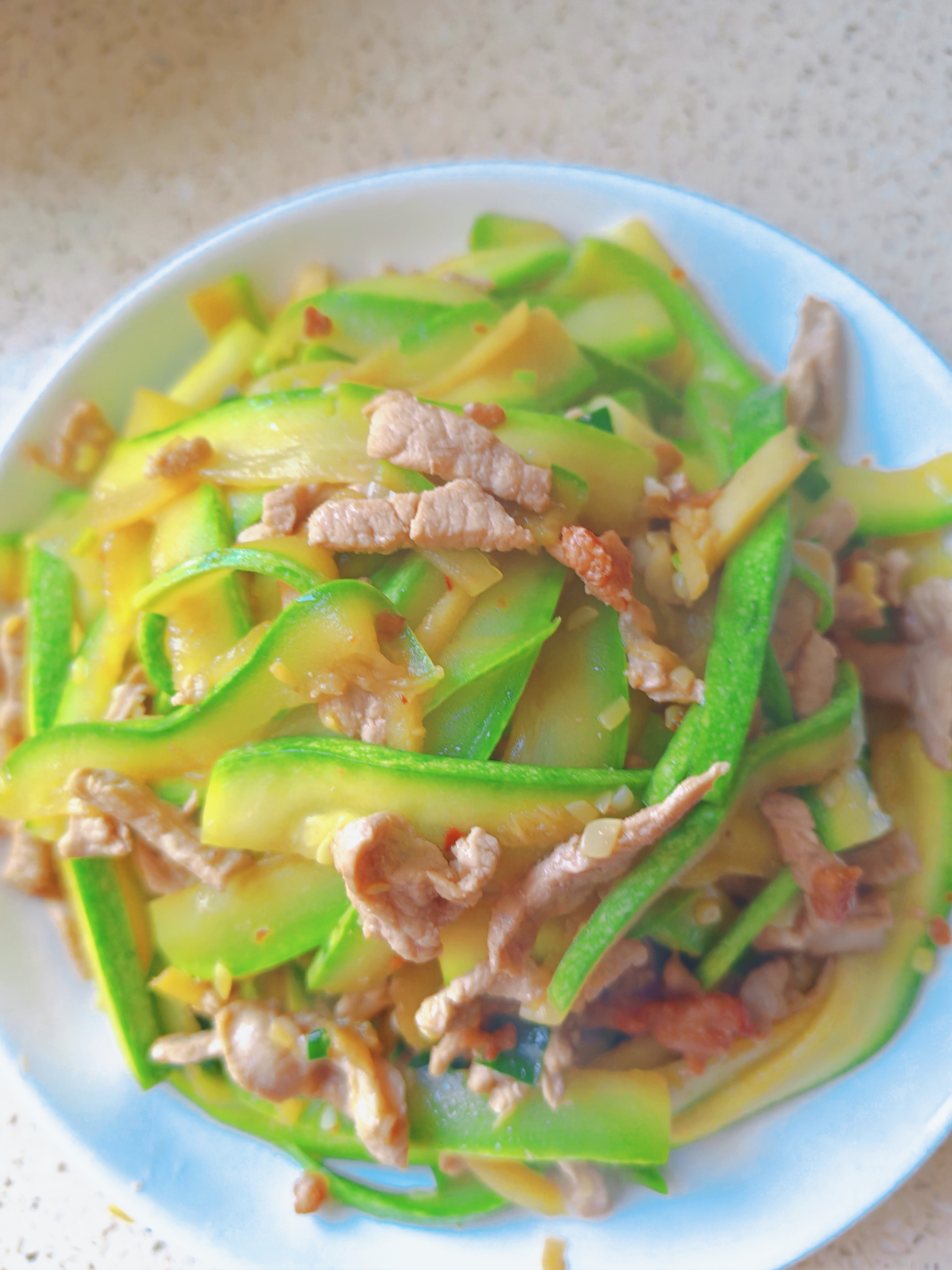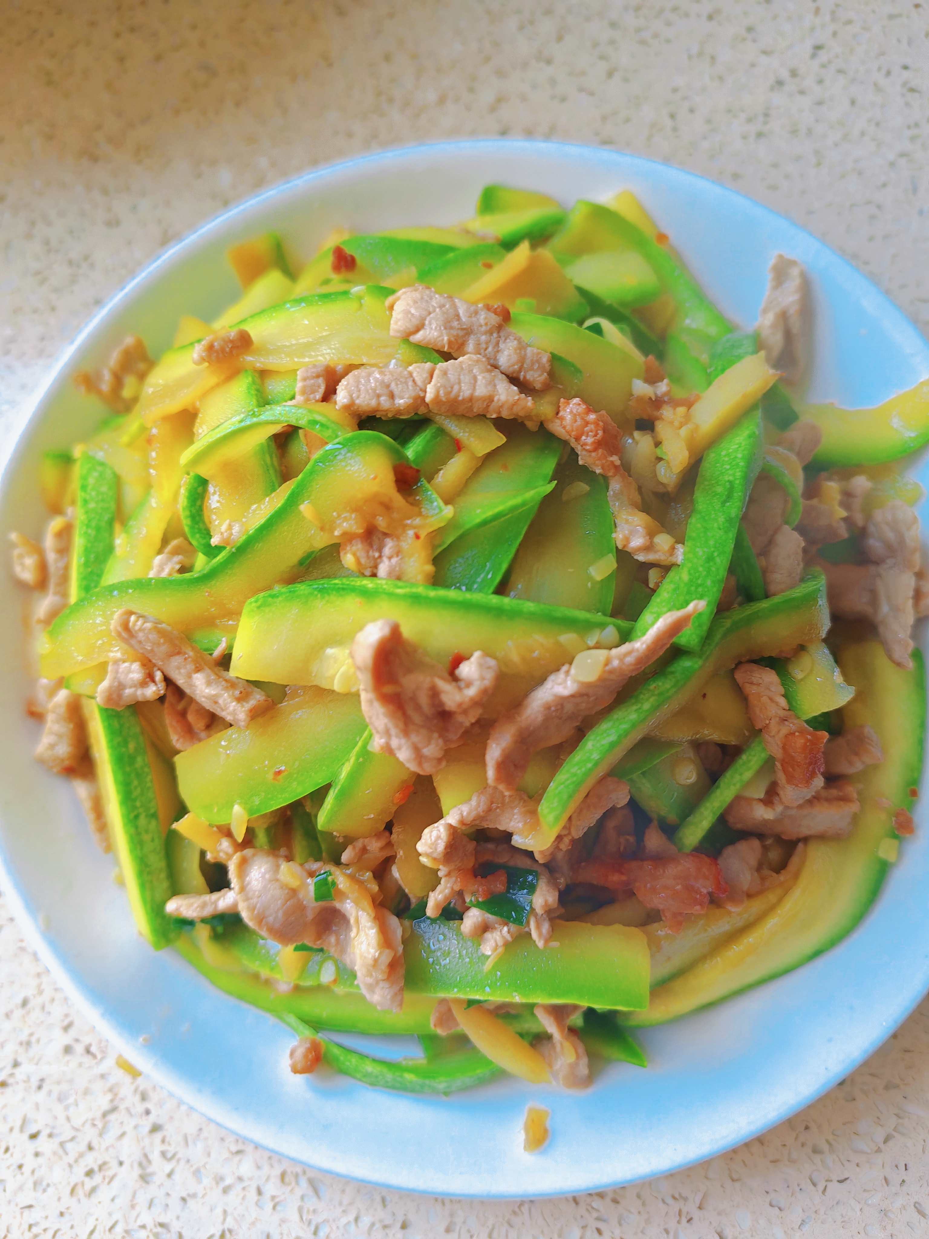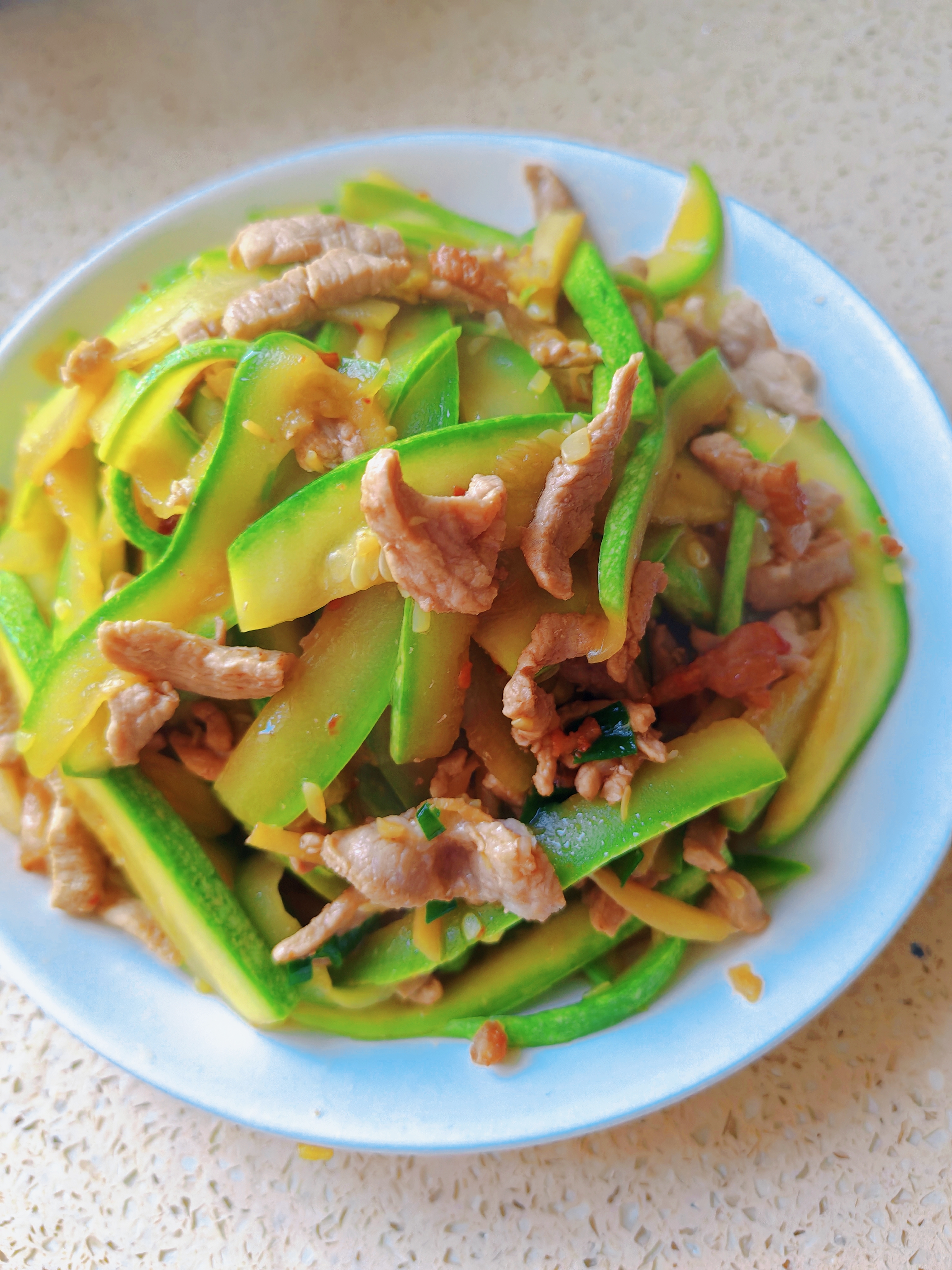 西葫芦炒肉丝 脆嫩爽口不软塌,鲜香入味超家常,简单几步搞定快手家常菜~ 食材准备 西葫芦、猪肉(肥瘦相间)、盐、料酒、生抽 详细步骤 1. 西葫芦对切四瓣,挖去内瓤,均匀切片 2. 切好的西葫芦加少许盐,腌制10分钟杀出水分 3. 用清水冲洗掉多余盐分,充分沥干水分备用 4. 锅中放肥肉,小火煸炒出多余油脂 5. 下入瘦肉丝炒至变色,加料酒、生抽翻炒增香 6. 放入沥干的西葫芦片,大火快速翻炒至熟透即可