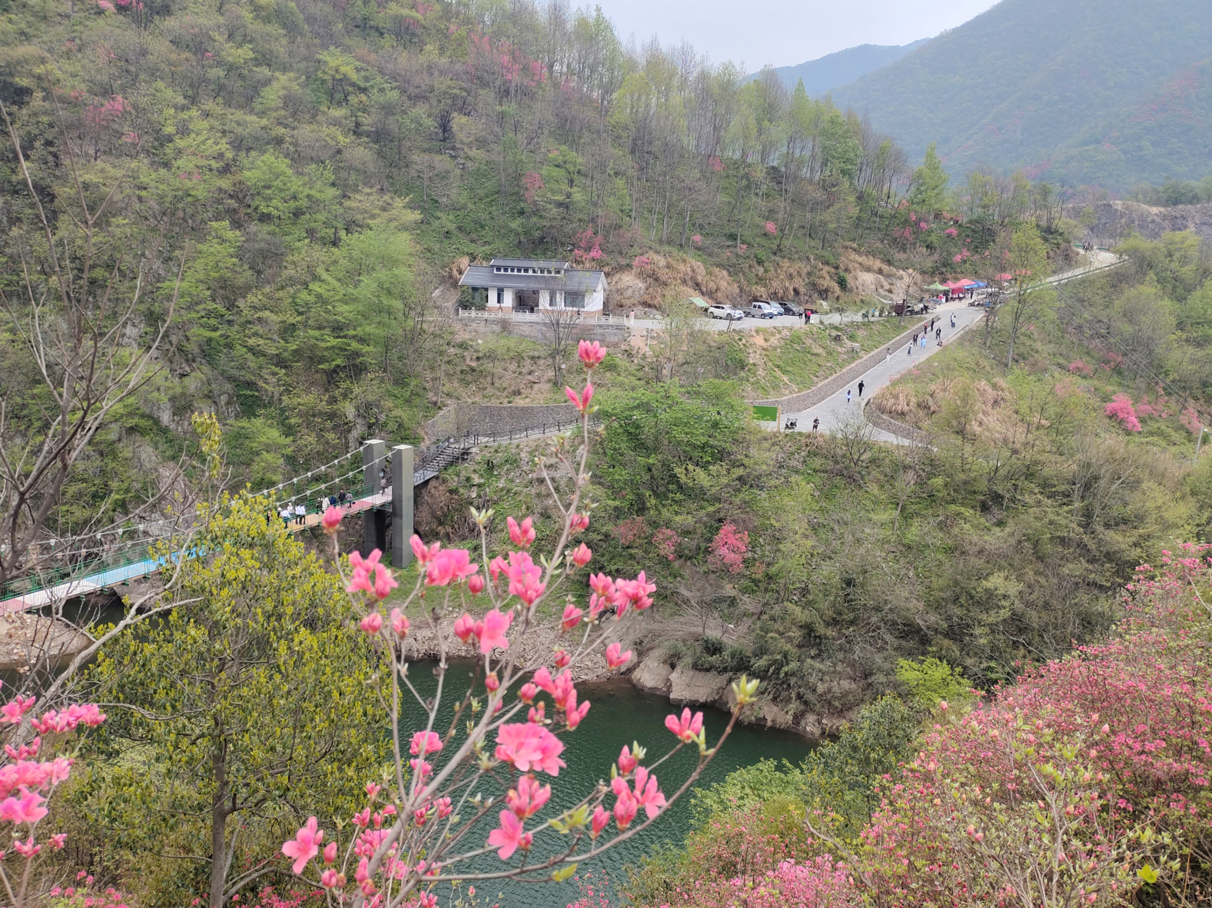 杜鹃岭石梁飞瀑,杜鹃花海+溪畔吊桥,春日徒步随手拍都是壁纸。